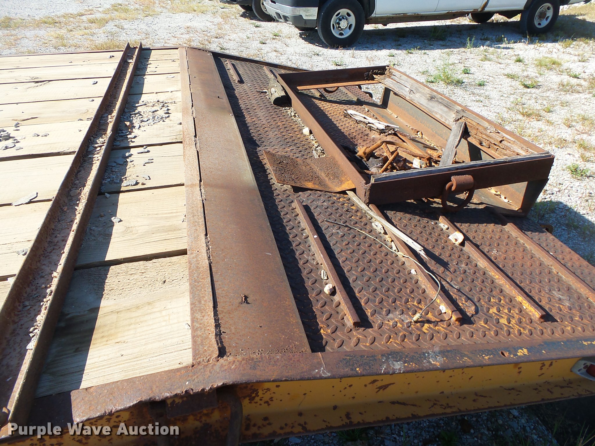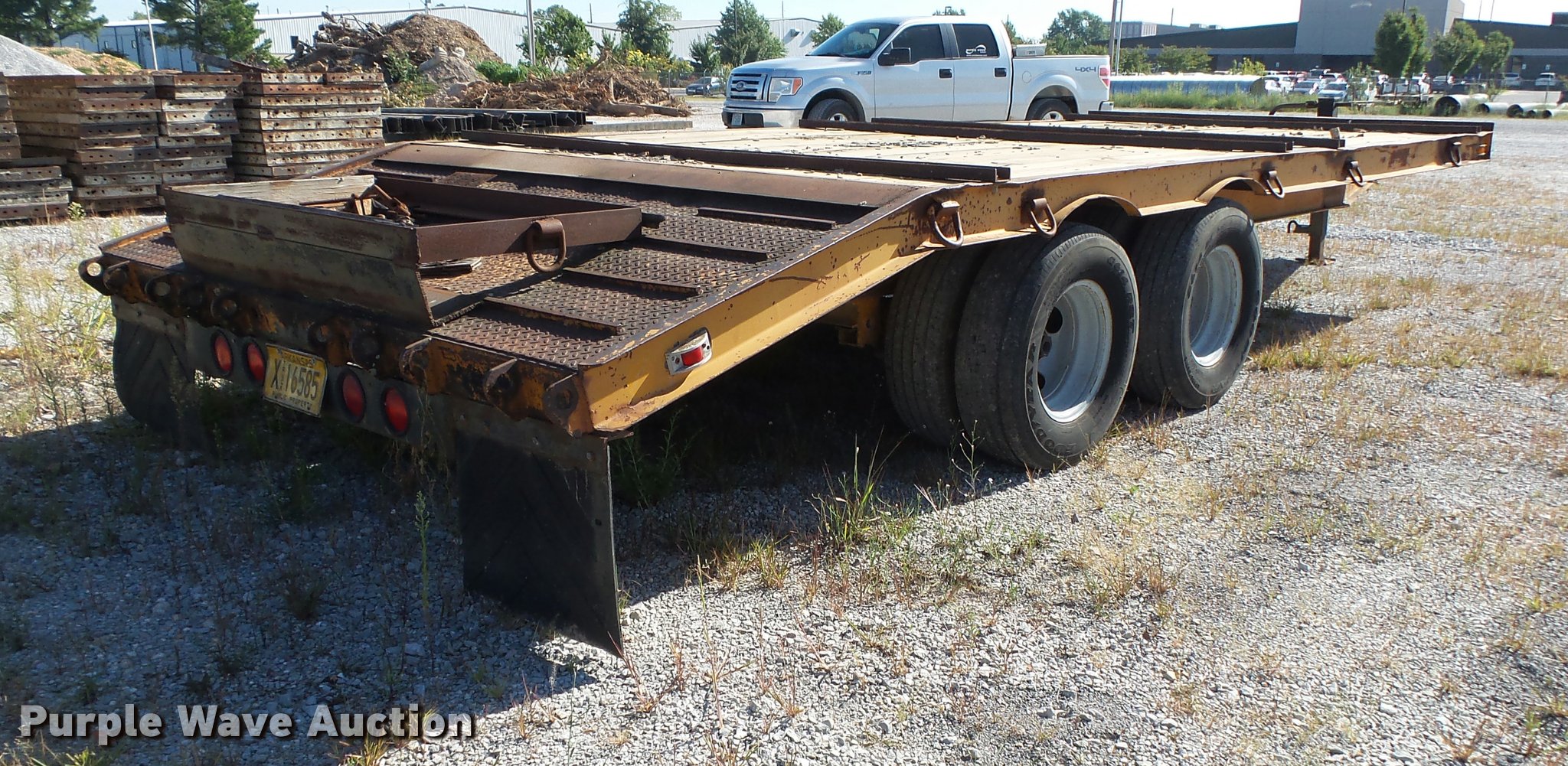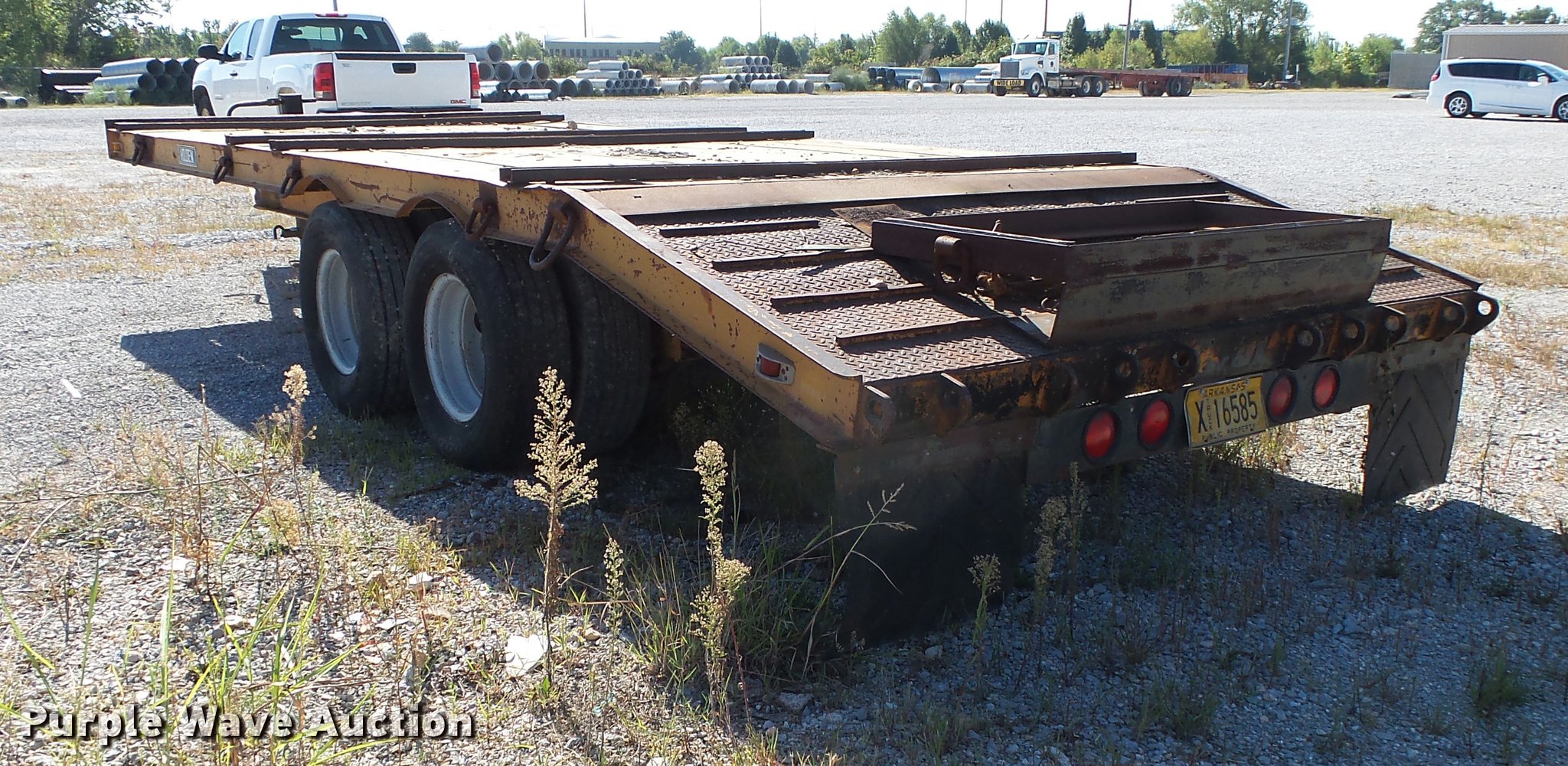 Purple Wave is selling a used Equip. Trailer in Arkansas. This item is a 1986 Holden ID02020 equipment trailer with the following: 26' overall length, 20'L x 96"W wood deck, 36" floor height, 46"L beavertail, D-ring tie downs, Single leg landing gear, Pintle hitch, Tandem axle, Spring suspension, Electric brakes, Steel wheels, LT235/85R16 tires, GVWR 20,000 lbs, Unit# BC5980