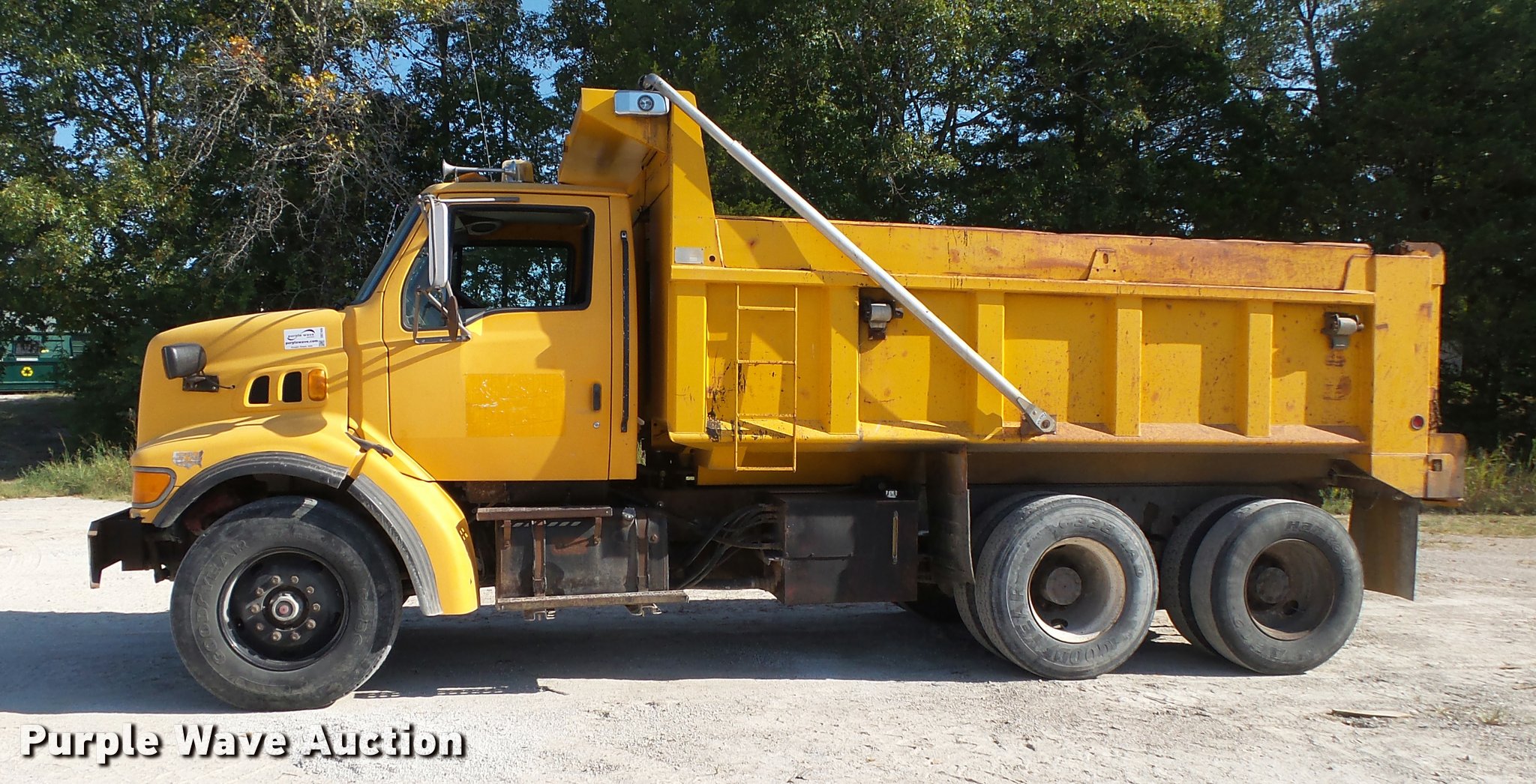 Purple Wave is selling a used Construction Dump Truck in Missouri. This item is a 1998 Ford LT9501 Louisville 101 dump truck with the following: 300,760 miles on odometer, Caterpillar 3176 10.3L L6 diesel engine, Eaton Fuller Road Ranger 13 speed manual transmission, Inter-axle differential lock, AC and heat, AM/FM/CD, Air suspension seat, Front mounted PTO, Steel dump bed, Model BMT400, 15'L x 8'W, 45" side height, Single ram hoist, Air operated end gate, Roll tarp, Single fuel tank, Double frame, 189" wheelbase, Spring over walking beam suspension, Air brakes, Engine brake, 385/65R22.5 front tires, GVWR 56,000 lbs, FAWR 16,000 lbs, IAWR 20,000 lbs, RAWR 20,000 lbs, Frame cracked
