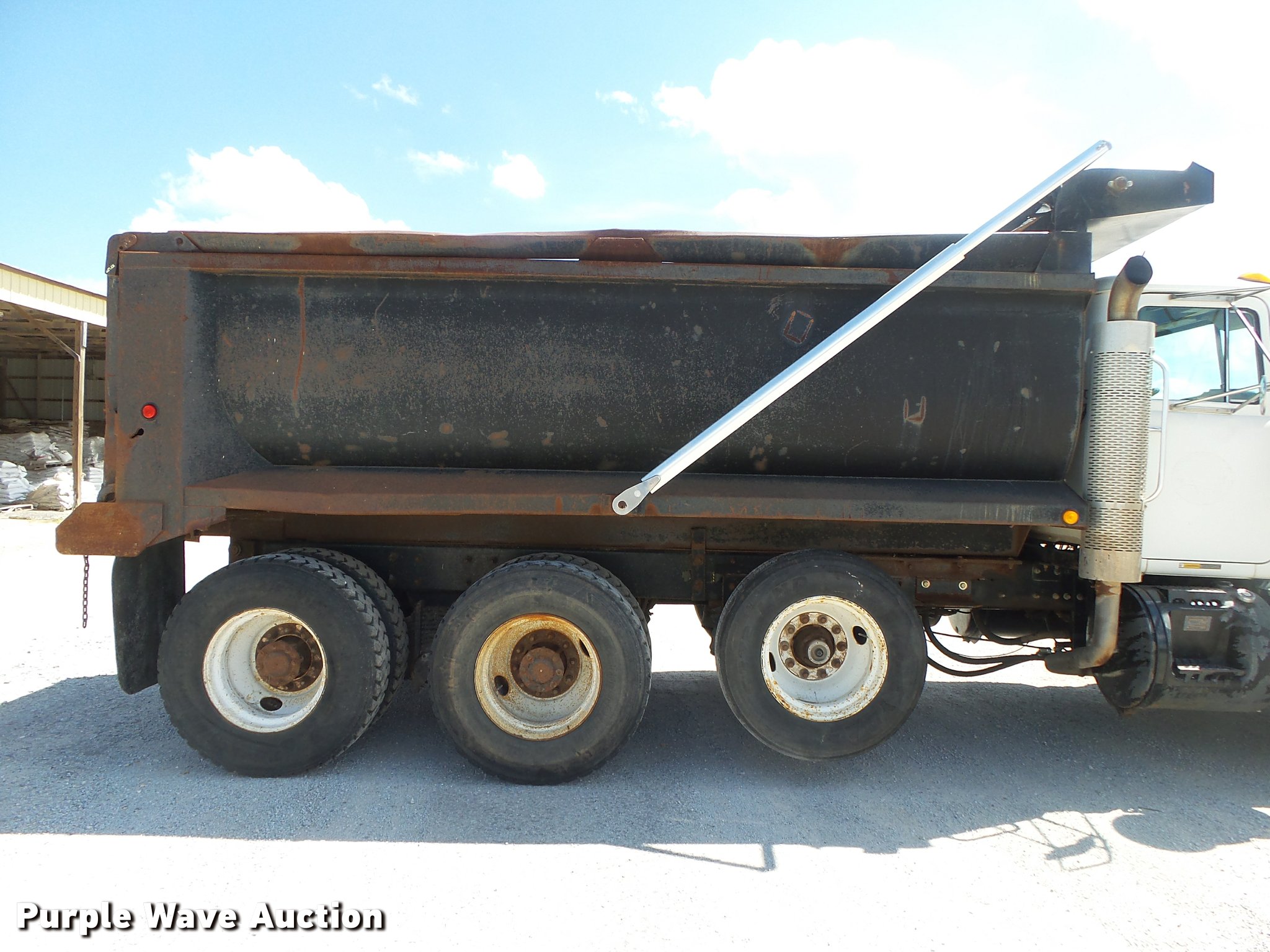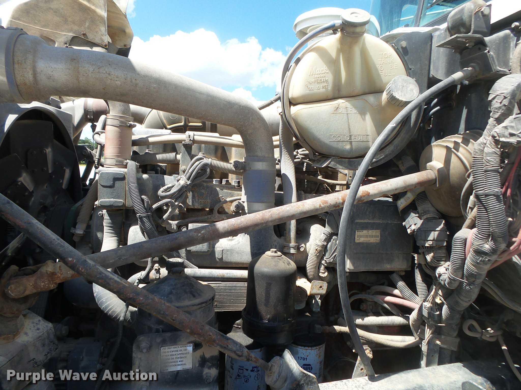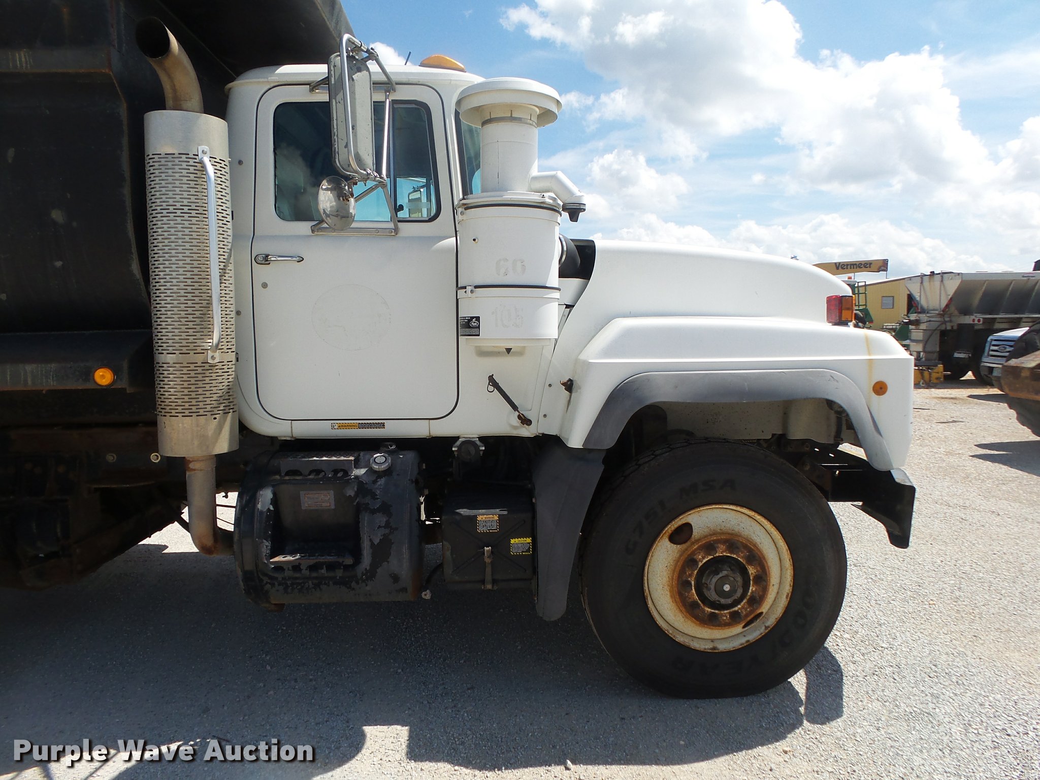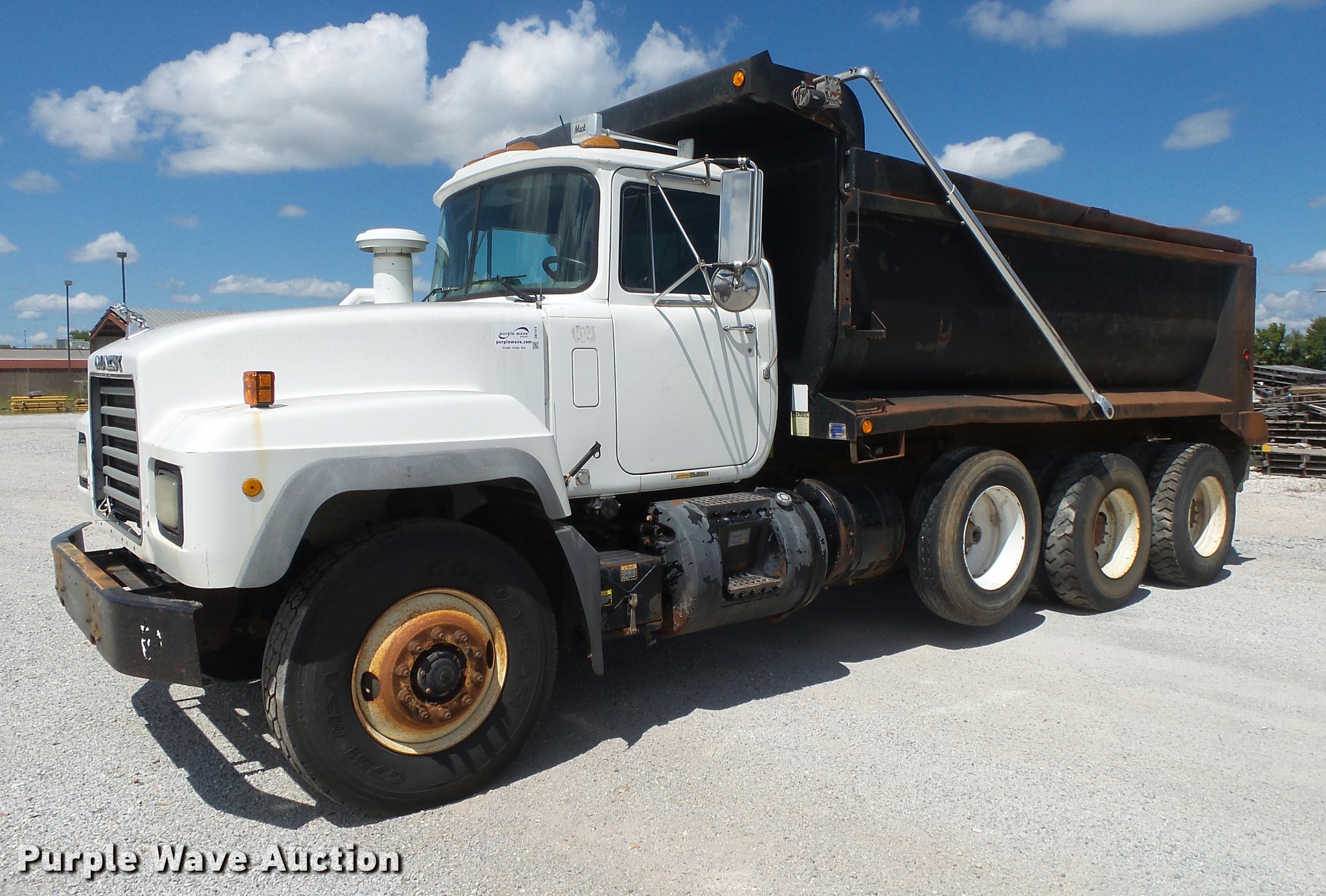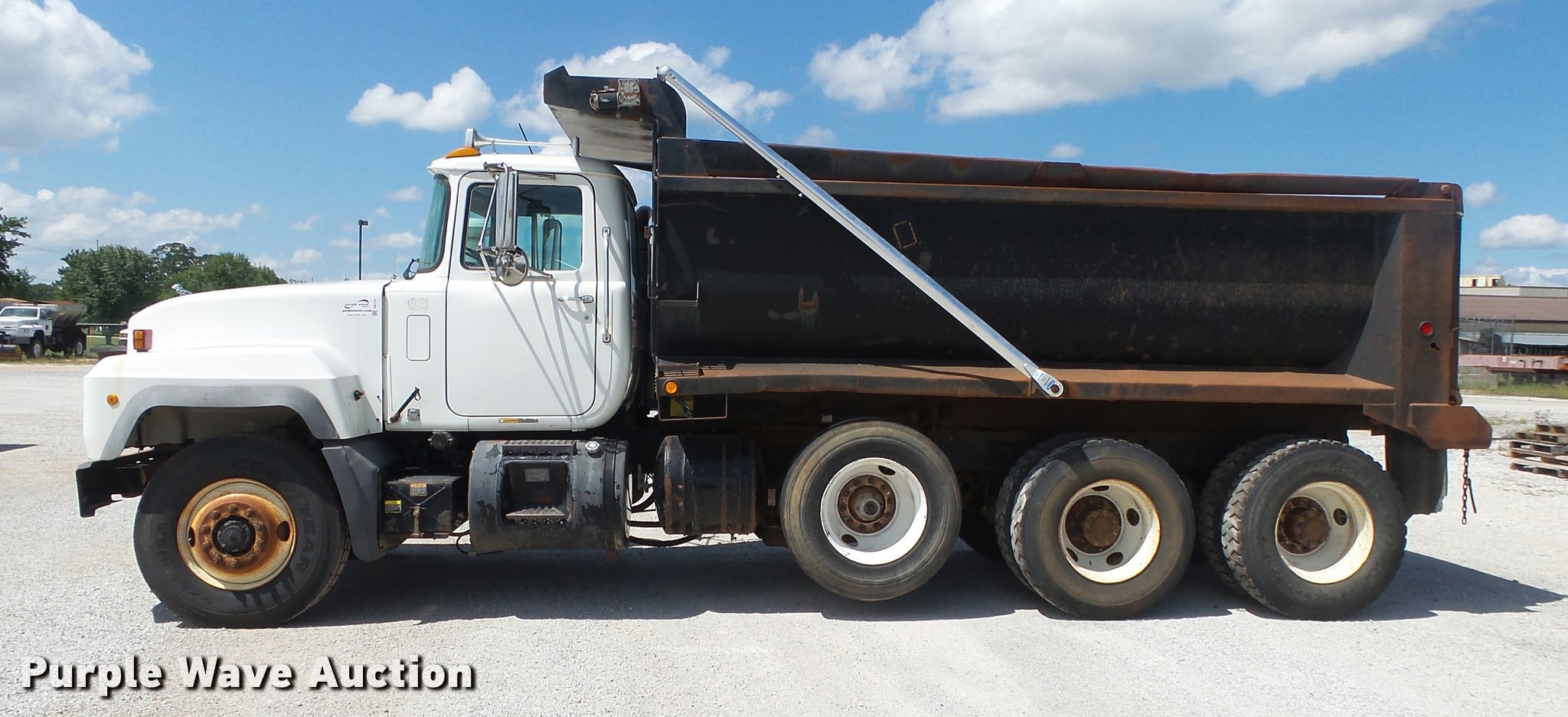 Purple Wave is selling a used Construction Dump Truck in Arkansas. This item is a 2003 Mack RD688S dump truck with the following: 189,113 miles on odometer, 11,109 hours on meter, Mack E7 12.0L L6 turbo diesel engine, Eaton Fuller eight speed manual transmission, Tandem axle, Inter-axle differential lock, AC and heat, Cruise, Air suspension seat, PTO, Ox Bodies Steel dump bed, 15'L x 96"W, 46" side height, 14 to 16 cu.yd. capacity, Single ram hoist, Air operated end gate, Tarp, Dual fuel tanks, Pintle hitch, Trailer wiring, Camelback suspension, Air brakes, Engine brake, 11R22.5 tires, 295/75R22.5 pusher axle tires, Unit# BC20801