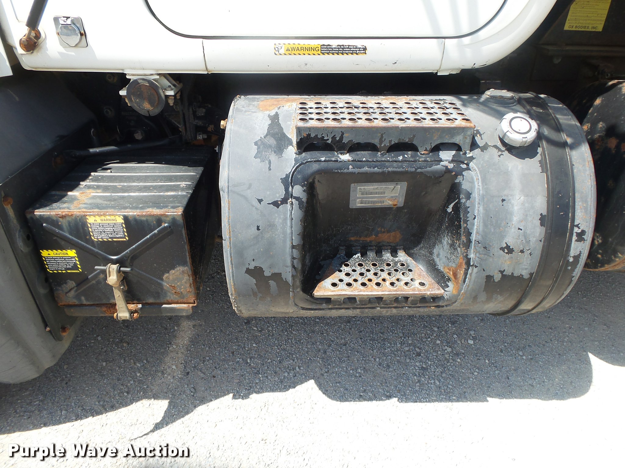 2003 Mack RD688S dump truck. 189,113 miles on odometer, 11,109 hours on meter, Mack E7 12.0L L6 turbo diesel engine, Eaton Fuller eight speed manual transmission, Tandem axle, Inter-axle differential lock, AC and heat, Cruise, Air suspension seat, PTO, Ox Bodies Steel dump bed 15'L x 96"W, 46" side height, 14 to 16 cu.yd. capacity, Single ram hoist, Air operated end gate, Tarp, Dual fuel tanks, Pintle hitch, Trailer wiring, Camelback suspension, Air brakes, Engine brake, 11R22.5 tires, 295/75R22.5 pusher axle tires, Unit# BC20801. Arkansas title. 1M2P267C13M065248. Benton County. 1208 SW 14th St. Bentonville, AR 72712