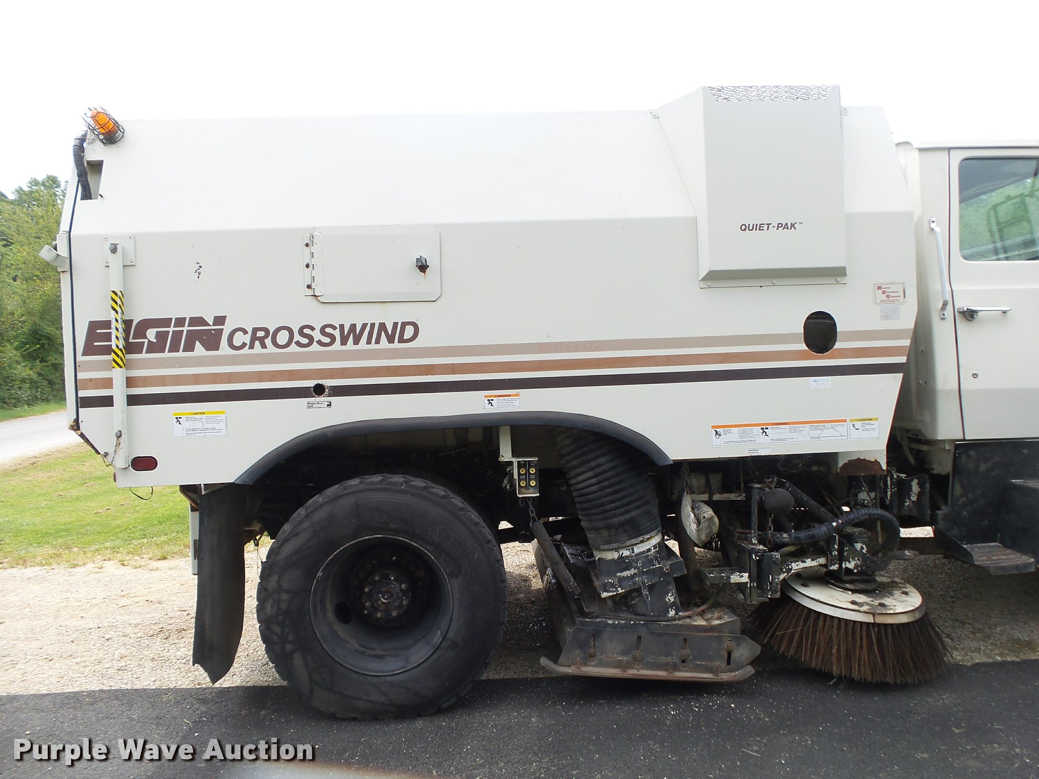 Purple Wave is selling a used Street Sweeper Truck in Missouri. This item is a 1990 Ford L7000 street sweeper truck with the following: 104,198 miles on odometer, 6.6L L6 turbo diesel engine, Automatic transmission, AC and heat, AM/FM/cassette, Suspension seat, In-cab traffic board controls, Elgin Crosswind Series G sweeper, Cummins six cylinder diesel engine, Dual operator stations, Eight cu.yd. hopper, Hydraulic door, 250 gallon water tank, Dual gutter brooms, 90"W pickup head, 144" sweep path, Ground and in-cab controls, Water system, Work lights, Spring suspension, Air brakes, 11R22.5 tires