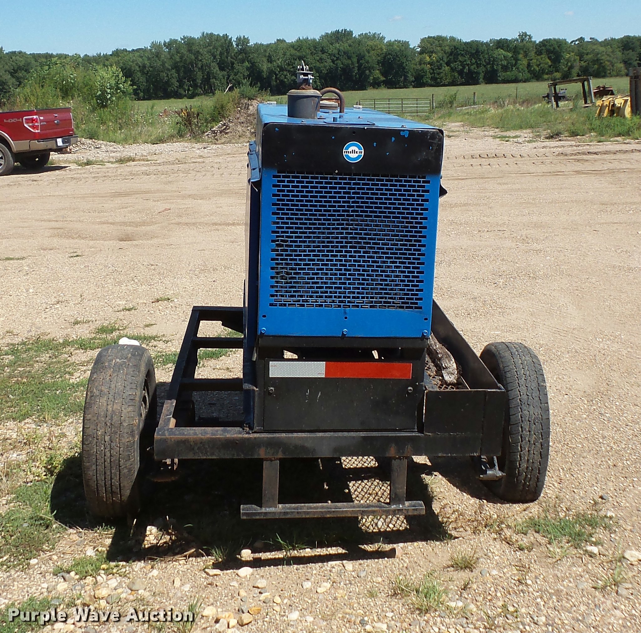 Purple Wave is selling a used Welder (Manual) in Iowa. This item is a Miller Big 50 welder/generator with the following: 5,765 hours on meter, Continental TMD270 four cylinder diesel engine, Serial 88117187, (4) 110V outlets, Lifting eye, Trailer, Jack stand, Pintle hitch, Single axle, Spring suspension, 205/70R15 tires, One tire off wheel, Serial JJ493092