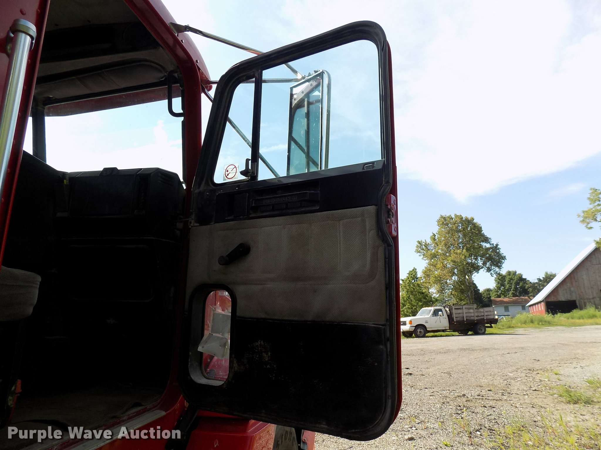 1995 Freightliner FLD semi truck. 910,666 miles on odometer, Detroit Diesel Series 60 11.1L six cylinder turbo diesel engine, 10 speed manual transmission, Heat, Block heater, PTO, Wet kit, Single exhaust stack, Sliding fifth wheel plate, Dual fuel tanks, 176" wheelbase, Air suspension, Air brakes, 295/75R22.5 tires, GVWR 52,000 lbs, FAWR 12,000 lbs, RAWR 40,000 lbs. Iowa title. 1FUYDPYB9SH645703. Wood Product of Iowa. 2812 360th St SW. Oxford, IA 52322