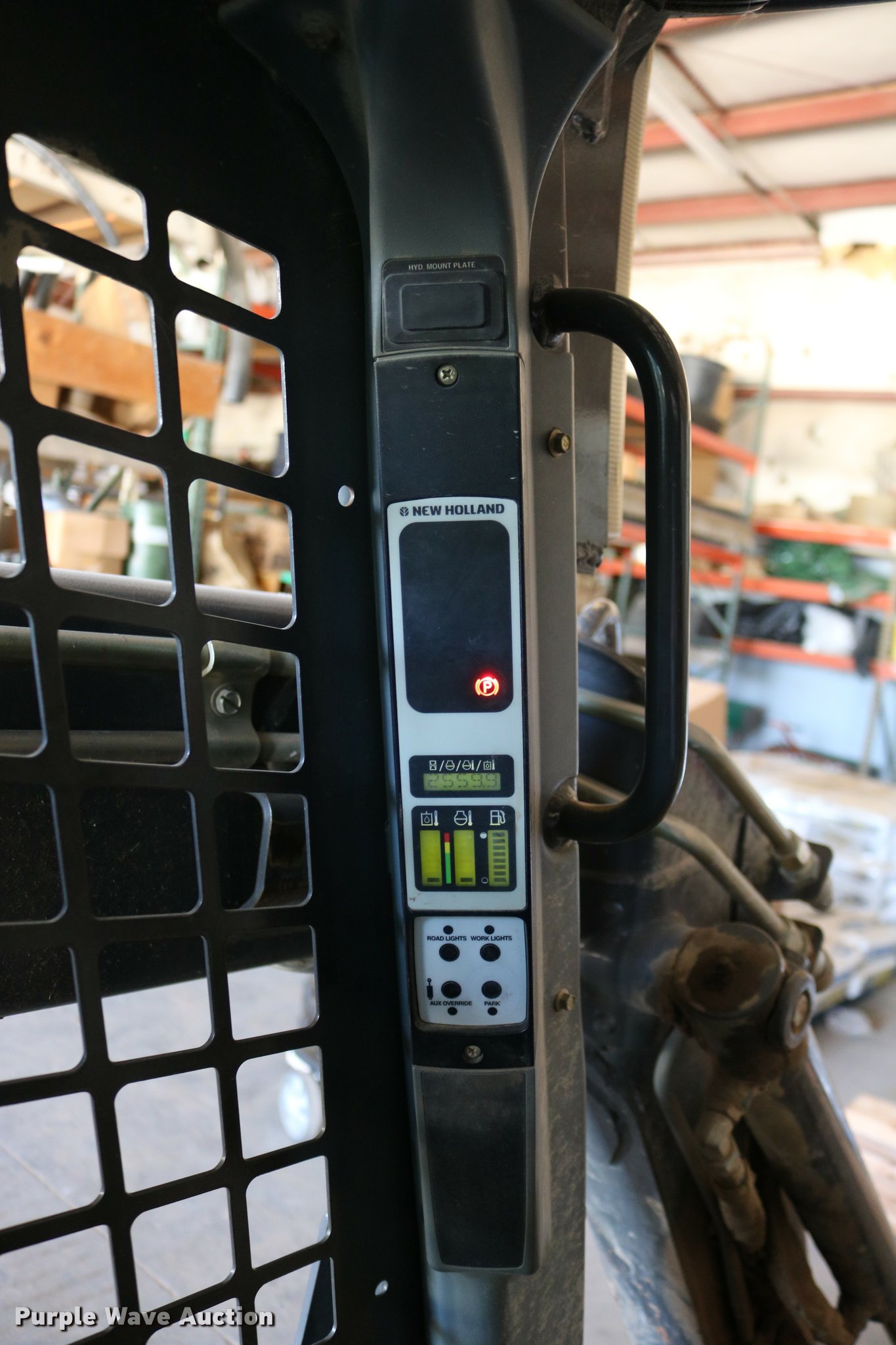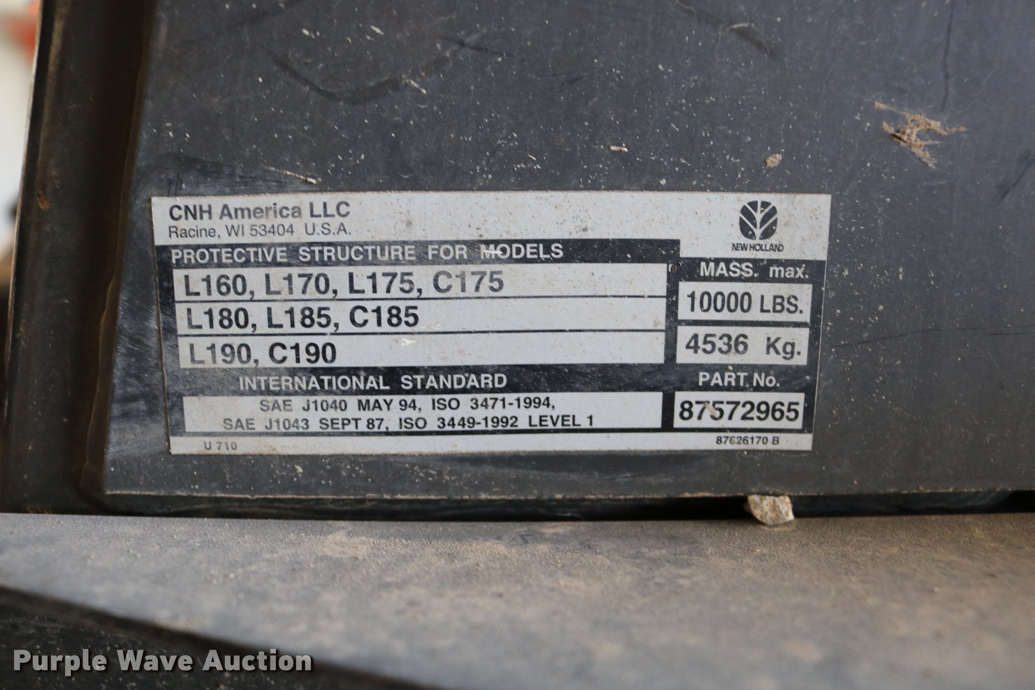 Purple Wave is selling a used Skid Steer Loader in Kansas. This item is a 2009 New Holland L175 skid steer with the following: Four cylinder diesel engine, Hydrostatic transmission, Enclosed cab, Hand and foot controls, Front and rear work lights, Backup alarm, New Holland 65.5"W bucket, Manual quick coupler, Auxiliary hydraulics, Counter weights, 10 x 16.5 tires, Non-operational unit, Engine oil pump needs replaced, Engine disassembled around oil pump, Bucket bolt-on cutting edge holes worn, Serial N8M480798