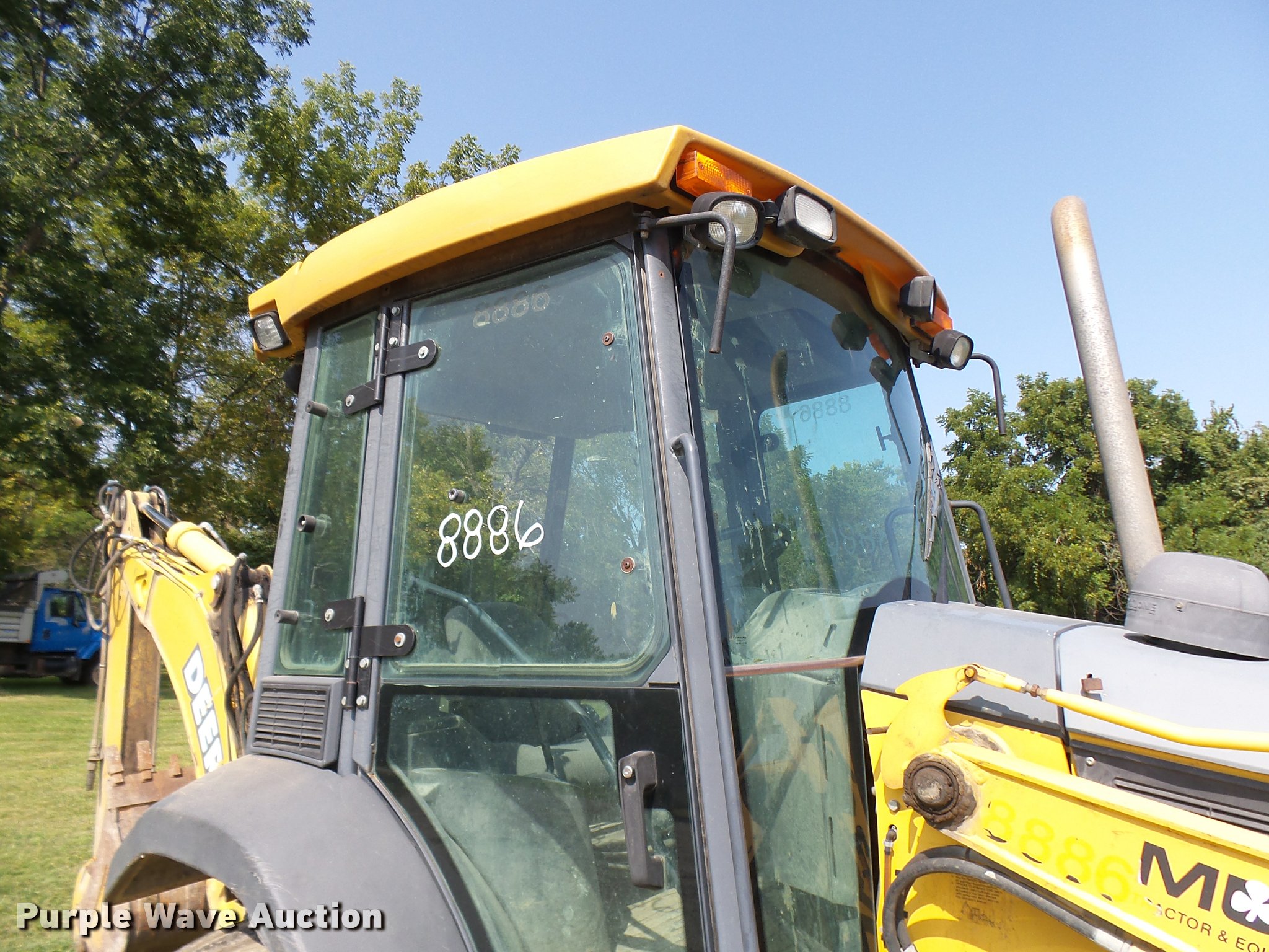 Purple Wave is selling a used Tractor Loader Backhoe in Missouri. This item is a 2005 John Deere 310G backhoe with the following: 6,922 hours on meter, John Deere 4045D four cylinder turbo diesel engine, Powershift transmission, 4F-4R gears, Differential lock, EROPS, AC and heat, Tilt steering wheel, Air suspension seat, Wobble stick backhoe controls, Foot control, Wipers, Backup alarm, Front and rear work lights, John Deere AT308552 84"W loader bucket, One cu. yd. capacity, Bolt-on cutting edge, Self-leveling bucket, E-stick, John Deere 18"W backhoe bucket, (4) teeth, Manual quick coupler, Side and rear auxiliary hydraulics, Front counter weights, 11L16 front tires, 19.5R24 rear tires, 12,800 lbs. base operating weight, Corner glass broken, Drive train issues, differential lock must be engaged to drive, Serial T0310SG942602