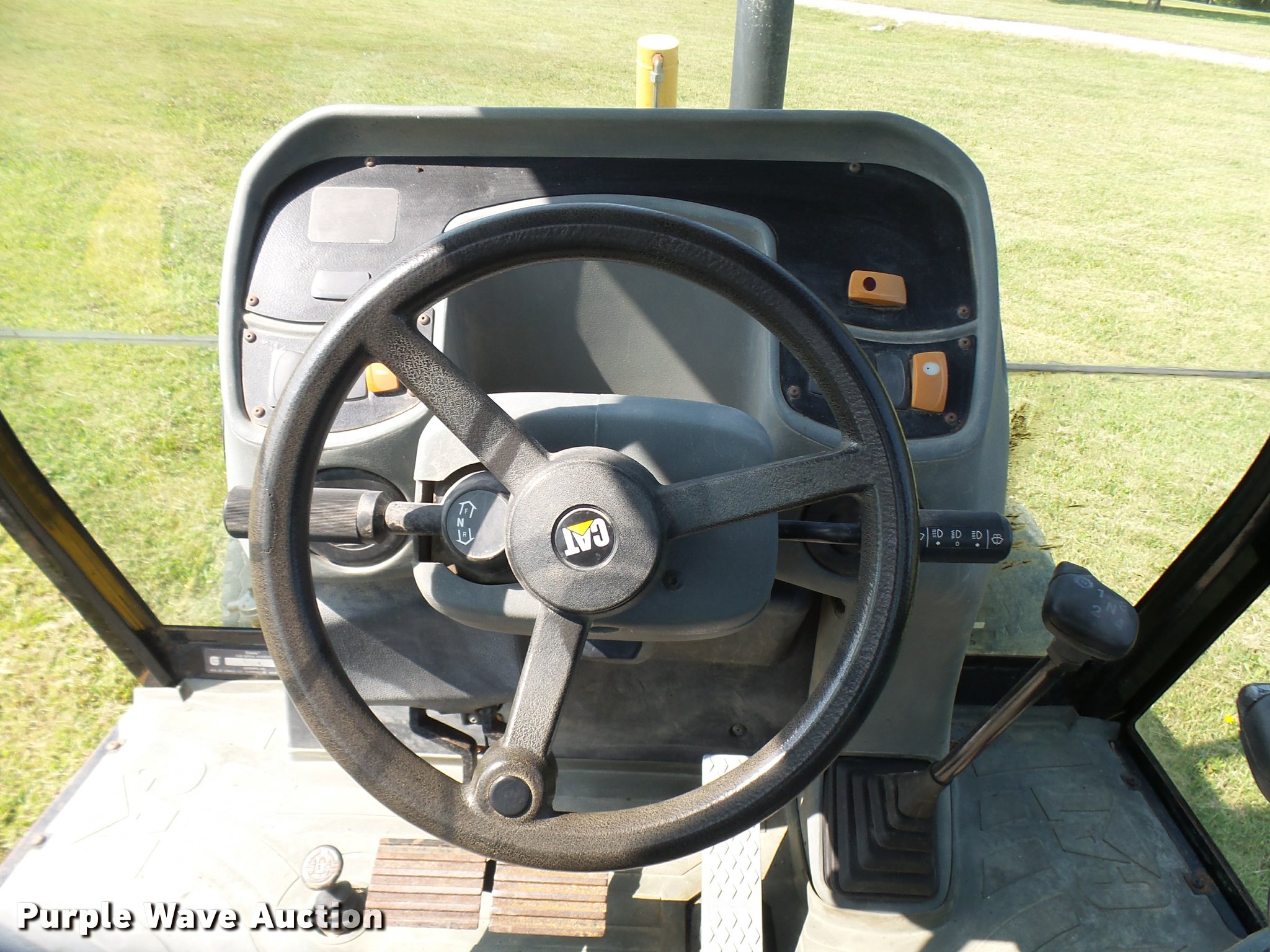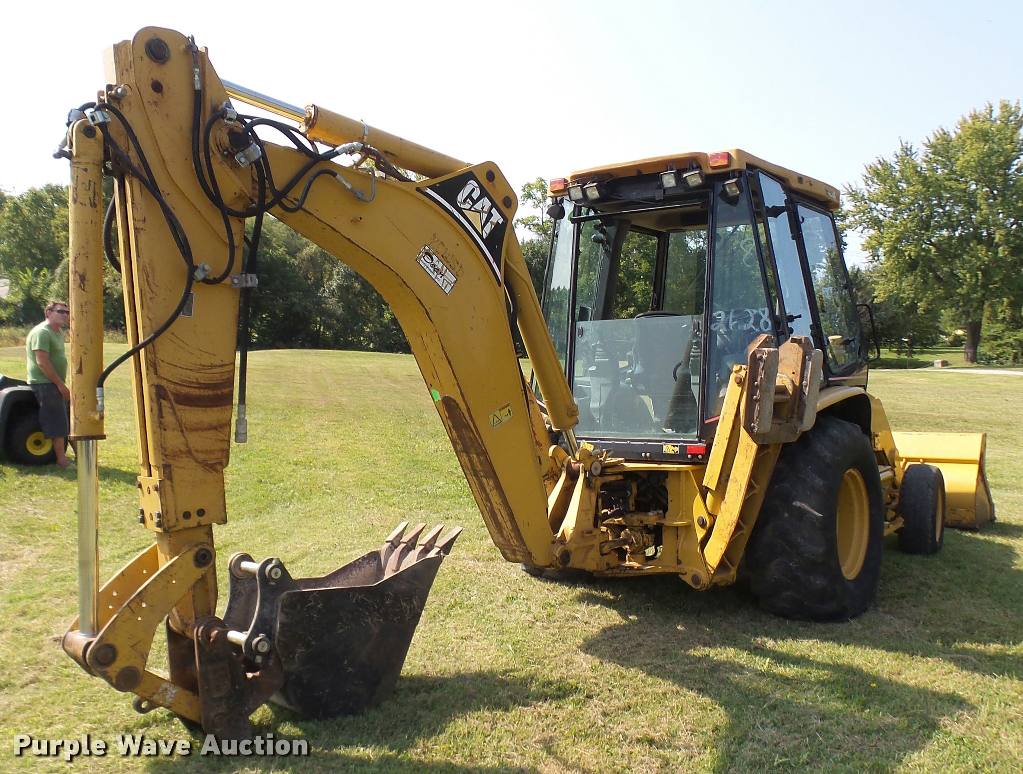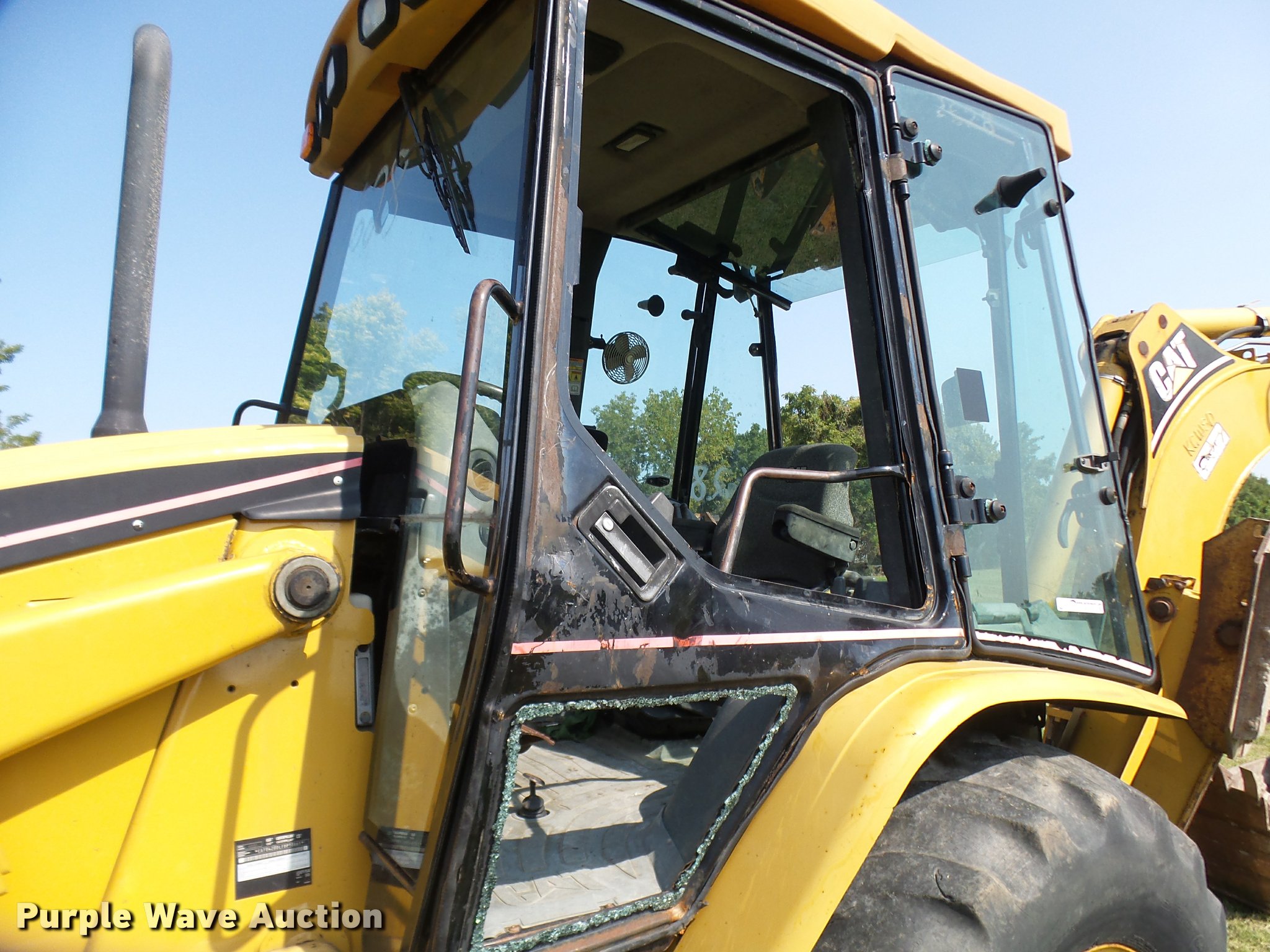 Purple Wave is selling a used Tractor Loader Backhoe in Missouri. This item is a 2004 Caterpillar 420D backhoe with the following: 5,967 hours on meter, Caterpillar 3054T four cylinder turbo diesel engine, 88 HP, Powershift transmission, 4F-4R gears, Differential lock, EROPS, AC and heat, Tilt steering wheel, Air suspension seat, Wobble stick backhoe controls, Foot control, Wipers, Backup alarm, Front and rear work lights, Caterpillar 87"W loader bucket, 1.25 cu. yd. capacity, Bolt-on cutting edge, Self-leveling bucket, Auxiliary hydraulics, E-stick, Caterpillar 16"W backhoe bucket, (4) teeth, Manual quick coupler, Front counter weights, 11L16 front tires, 19.5-24 rear tires, 15,763 lbs. base operating weight, Driver's door damaged, Glass missing, Bucket does not fit quick attach., Serial CAT0420DLFDP18661