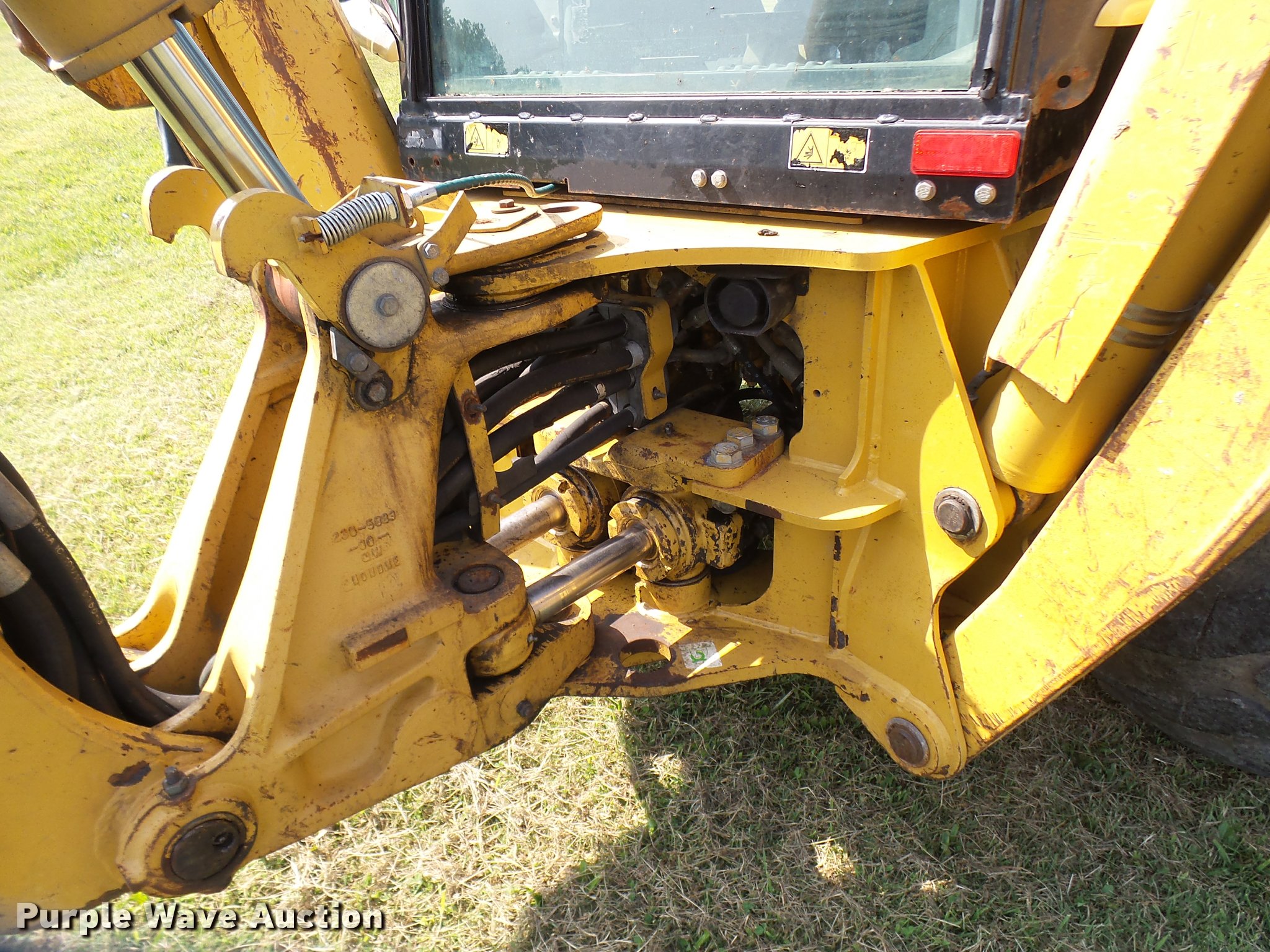 2004 Caterpillar 420D backhoe. 5,967 hours on meter, Caterpillar 3054T four cylinder turbo diesel engine 88 HP, Powershift transmission 4F-4R gears, Differential lock, EROPS, AC and heat, Tilt steering wheel, Air suspension seat, Wobble stick backhoe controls, Foot control, Wipers, Backup alarm, Front and rear work lights, Caterpillar 87"W loader bucket 1.25 cu. yd. capacity, Bolt-on cutting edge, Self-leveling bucket, Auxiliary hydraulics, E-stick, Caterpillar 16"W backhoe bucket (4) teeth, Manual quick coupler, Front counter weights, 11L16 front tires, 19.5-24 rear tires, 15,763 lbs. base operating weight, Driver's door damaged Glass missing, Bucket does not fit quick attach., Serial CAT0420DLFDP18661. 3312 N River Blvd. Sugar Creek, MO 64050