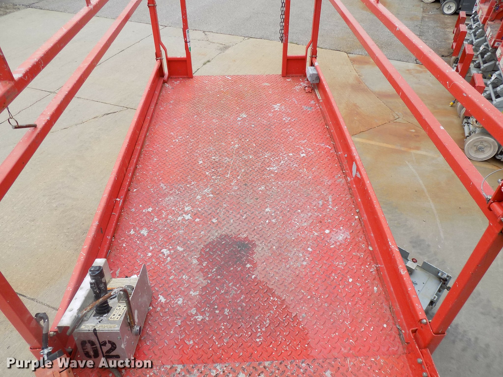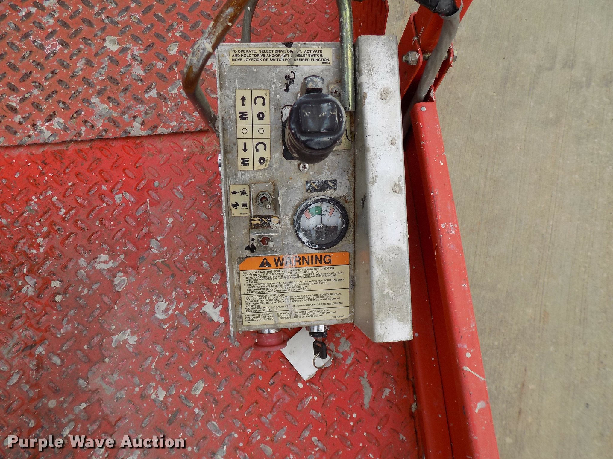 Purple Wave is selling a used Scissor or Vertical Lift in Iowa. This item is a 1998 Sky Jack 4830 scissor lift with the following: 833 hours on meter, 24V operation, 500 lbs maximum lift capacity, 36' maximum working height, 30' maximum drive height, 81"L x 48"W platform, Platform and ground controls, Platform extensions, Safety alarm, 92"L x 48"W x 95"H, 4.00-8 solid non-marking tires, Serial 86542