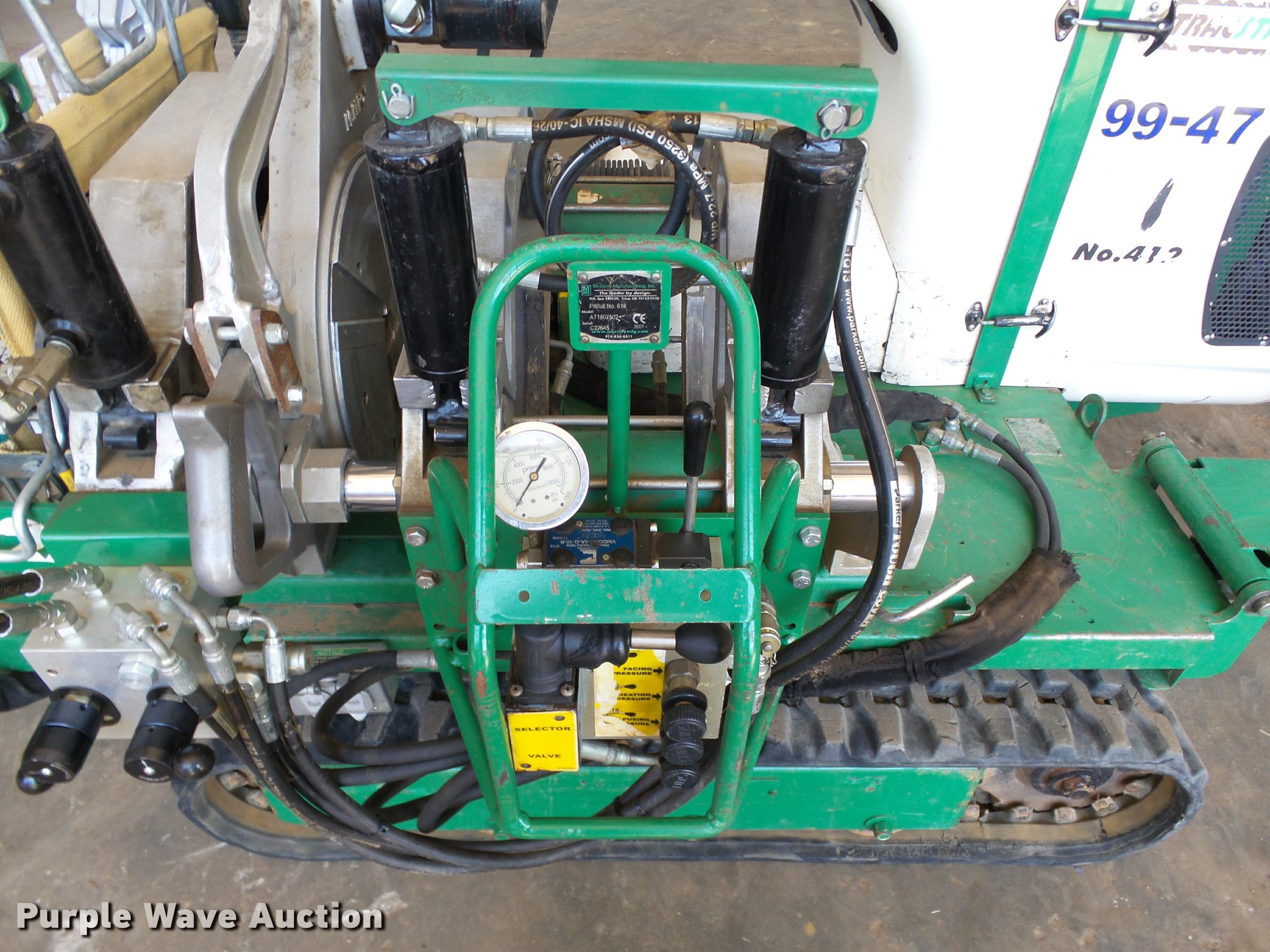 Mcelroy TracStar 412 pipe fusion machine. 249 hours on meter, Kubota D722 three cylinder diesel engine, 7"W rubber tracks, (4) sets of boots, Set of stands, Unit# 99-47. Manhattan Pipeline - Open inspection Sept. 27. 31200 I-40 Service Road. Hinton, OK 73047