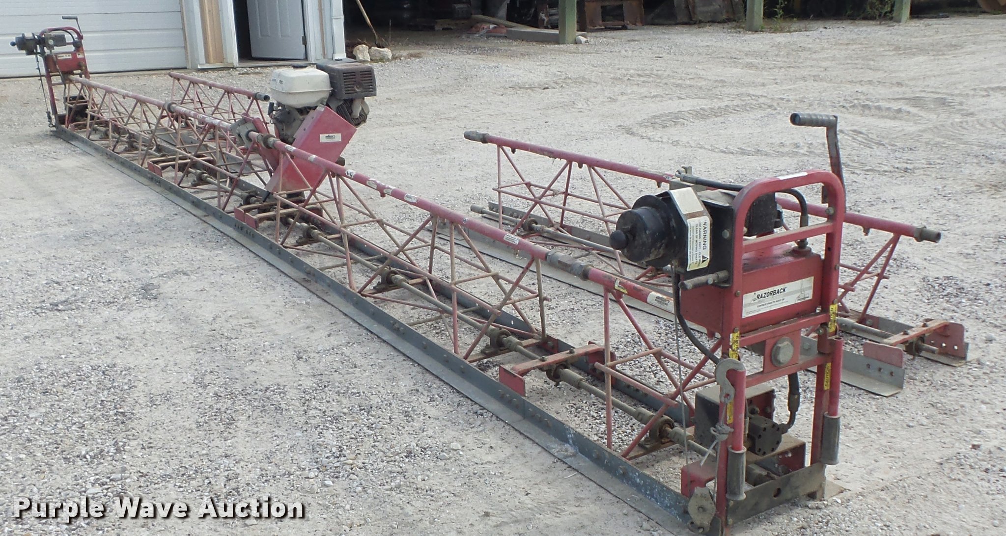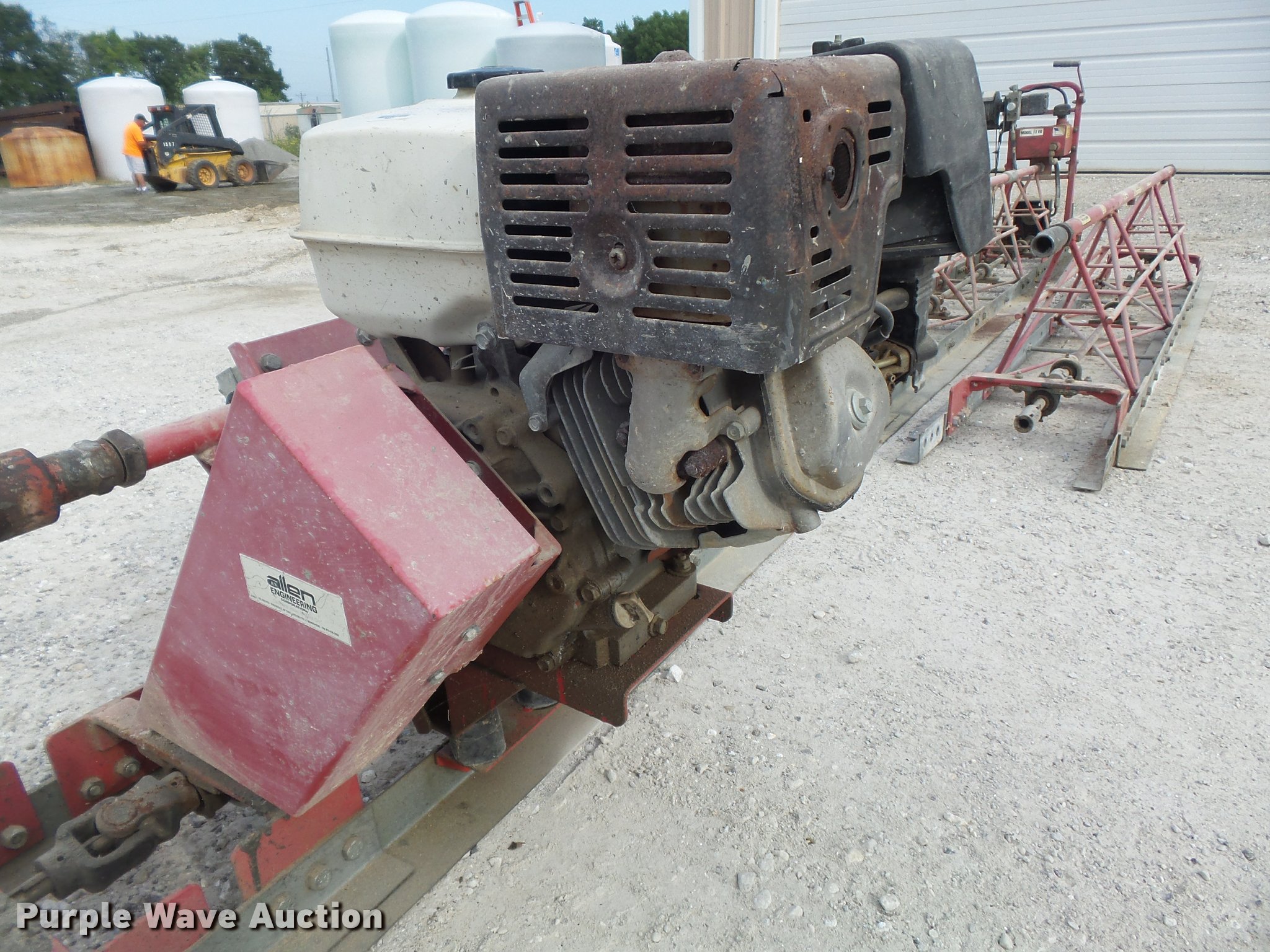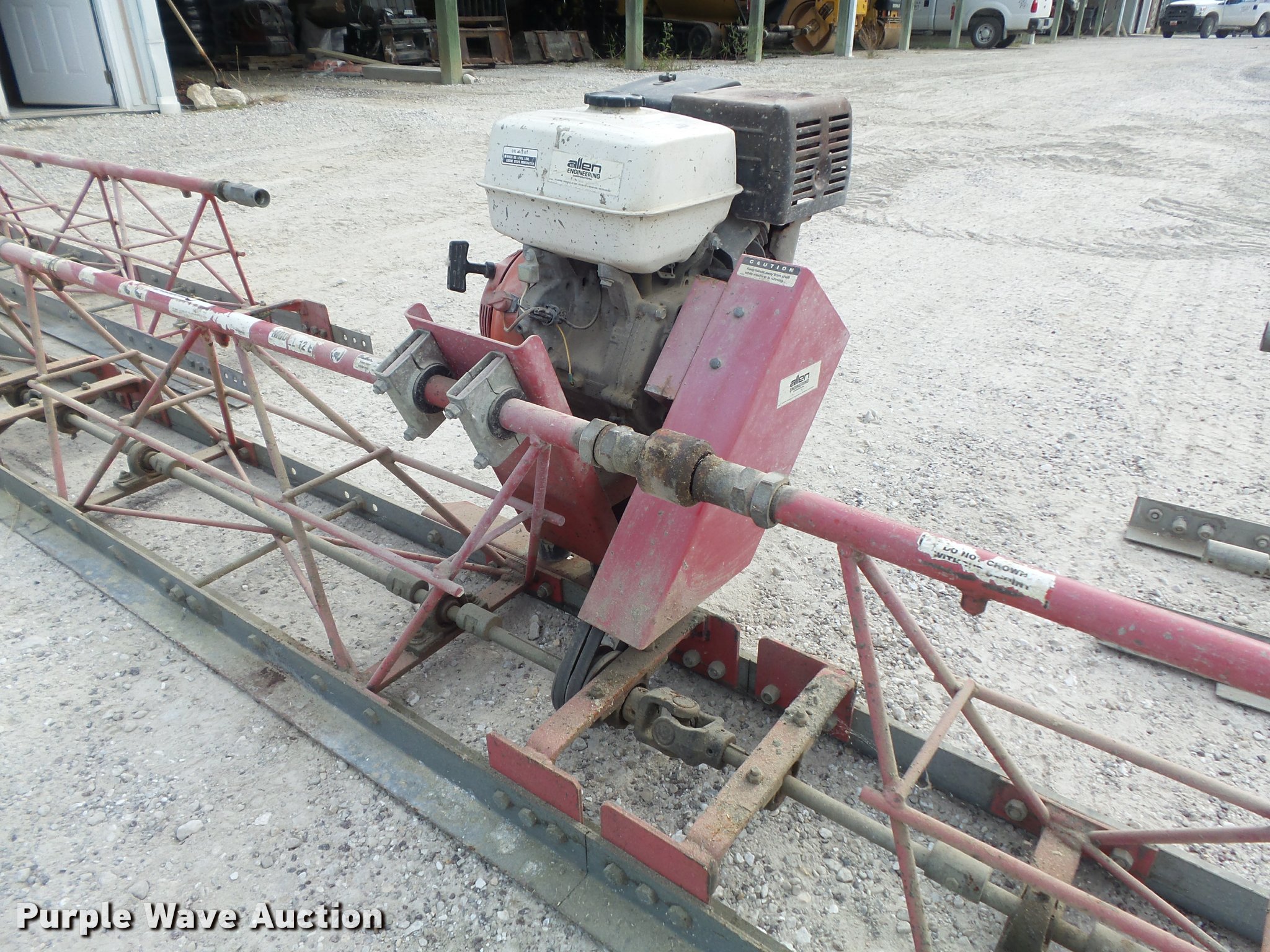 Purple Wave is selling a used Paver or Screed in Missouri. This item is a Allen Engineering Razorback 12ED power screed with the following: Honda 11 HP single cylinder gas engine, Recoil start, 25'L main truss frame assembly, (2) 90" sections, (2) 30" sections with winches, 60" section with engine, (2) 90" additional sections, (2) hydraulic winches, Variable speed control