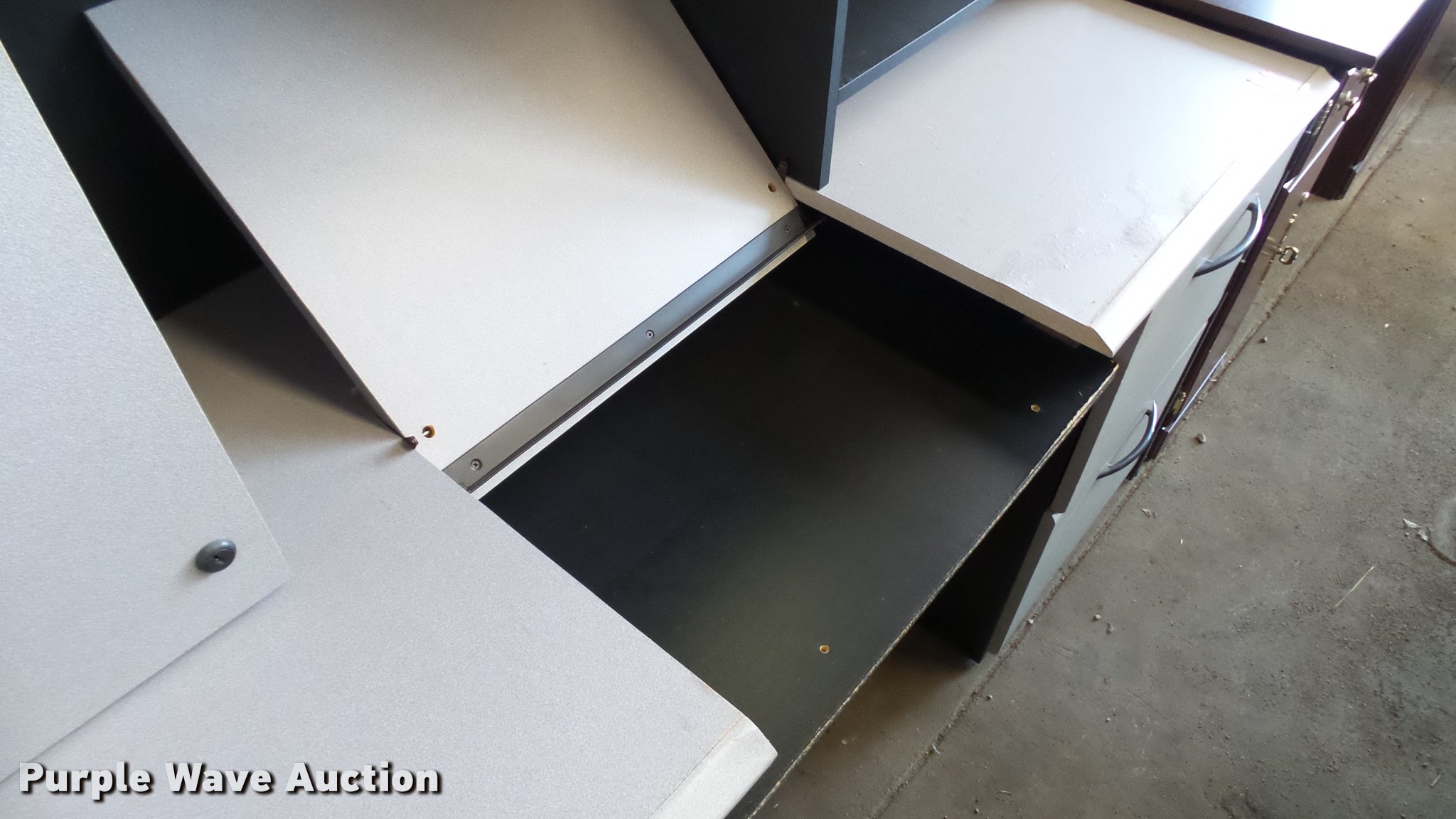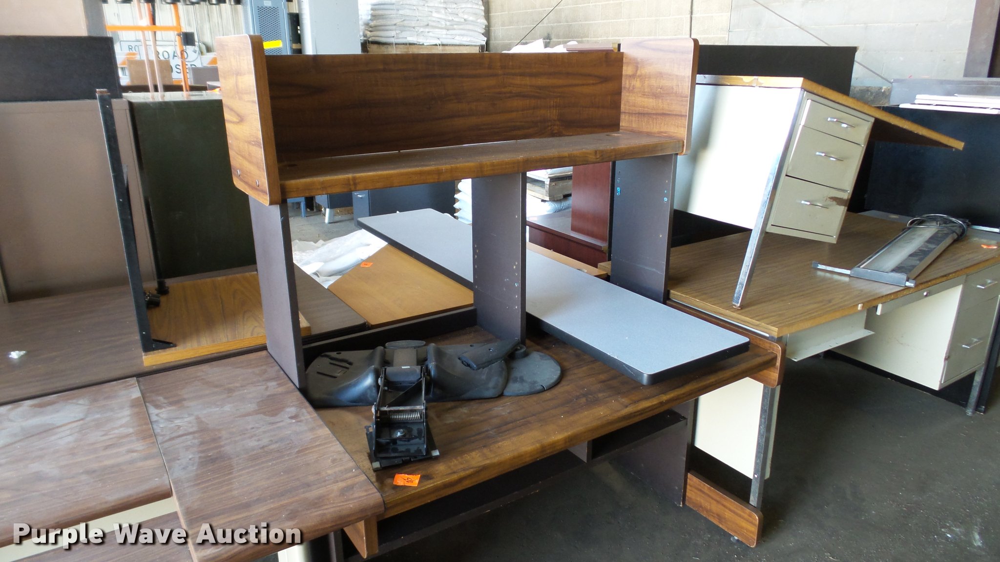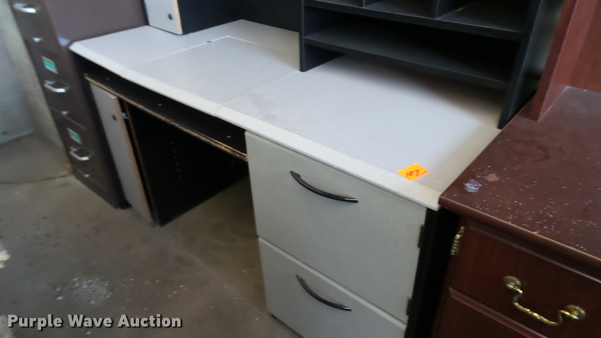 Purple Wave is selling a used Furniture in Iowa. This item is a Office furniture with the following: (9) desks, (2) four drawer metal filing cabinets, Unit# 96, 95, 94, 93, 92, 104, 105, 106, 107, 108