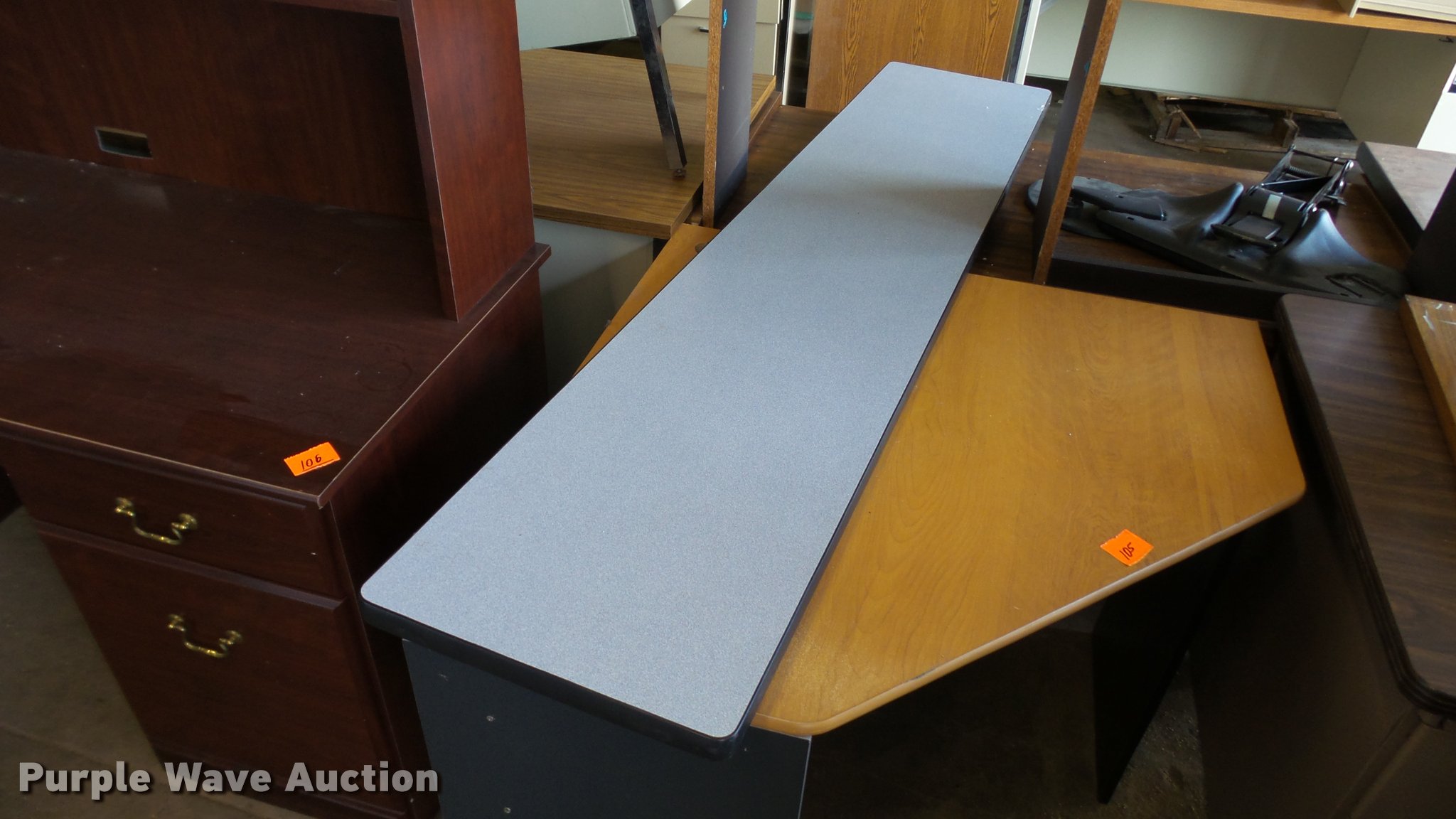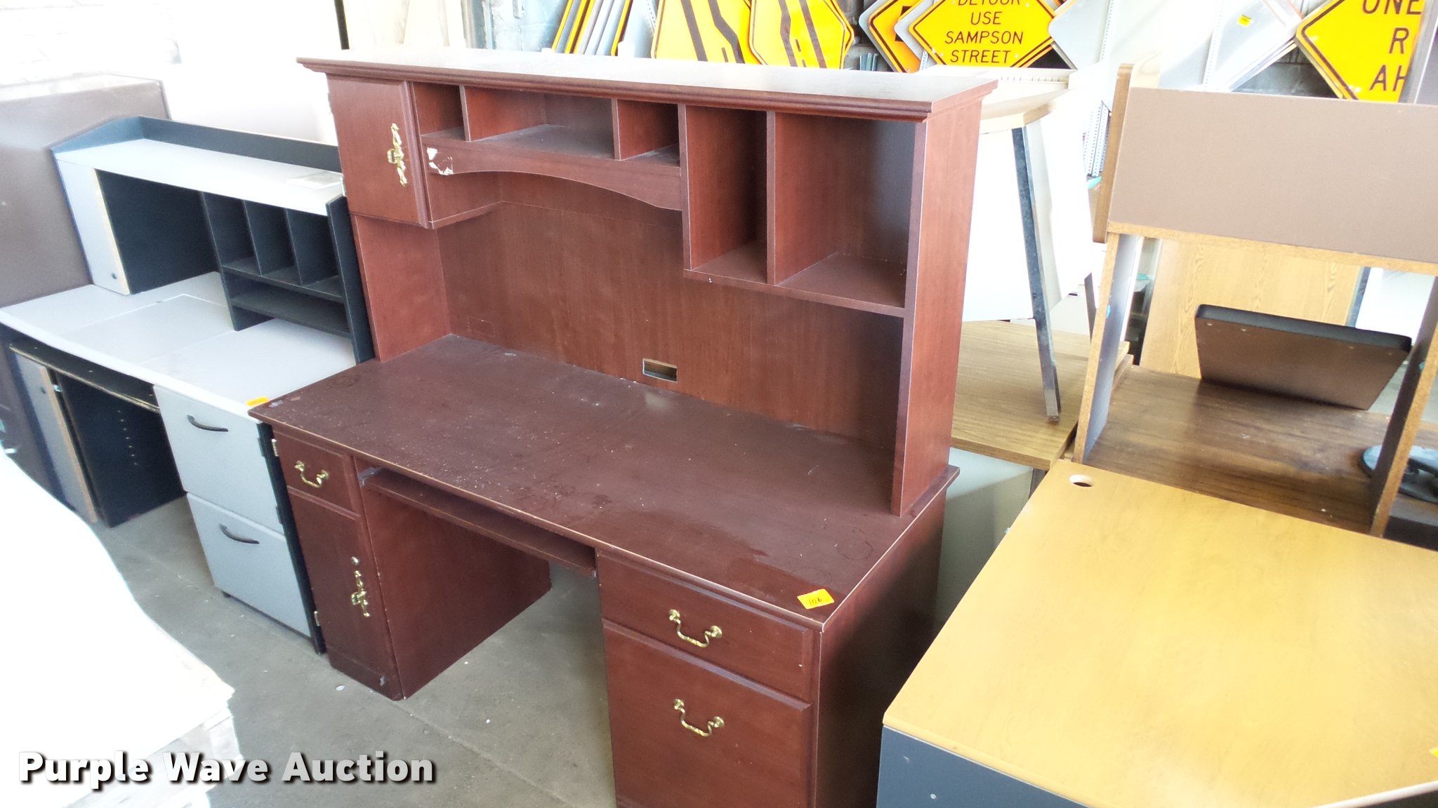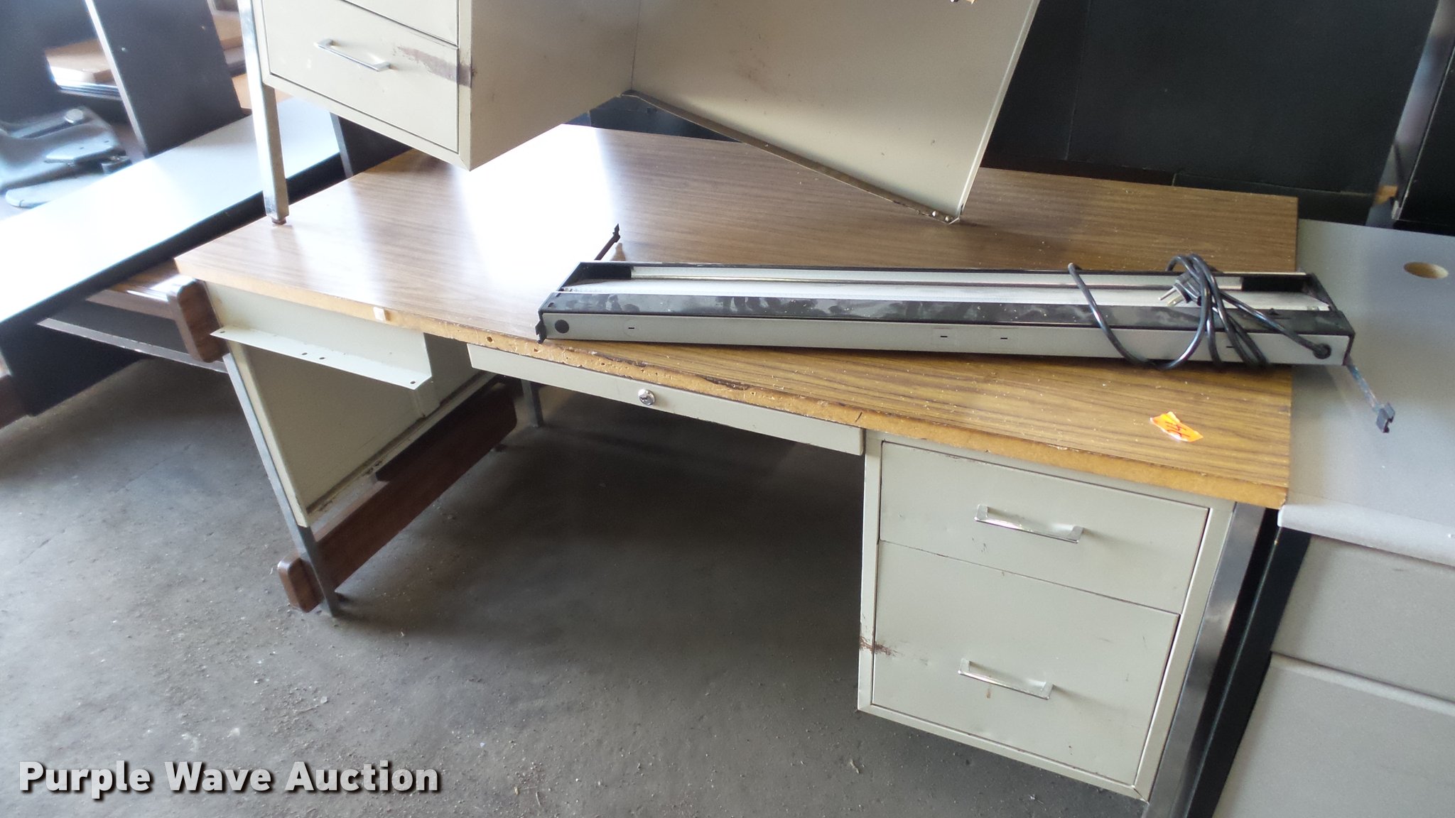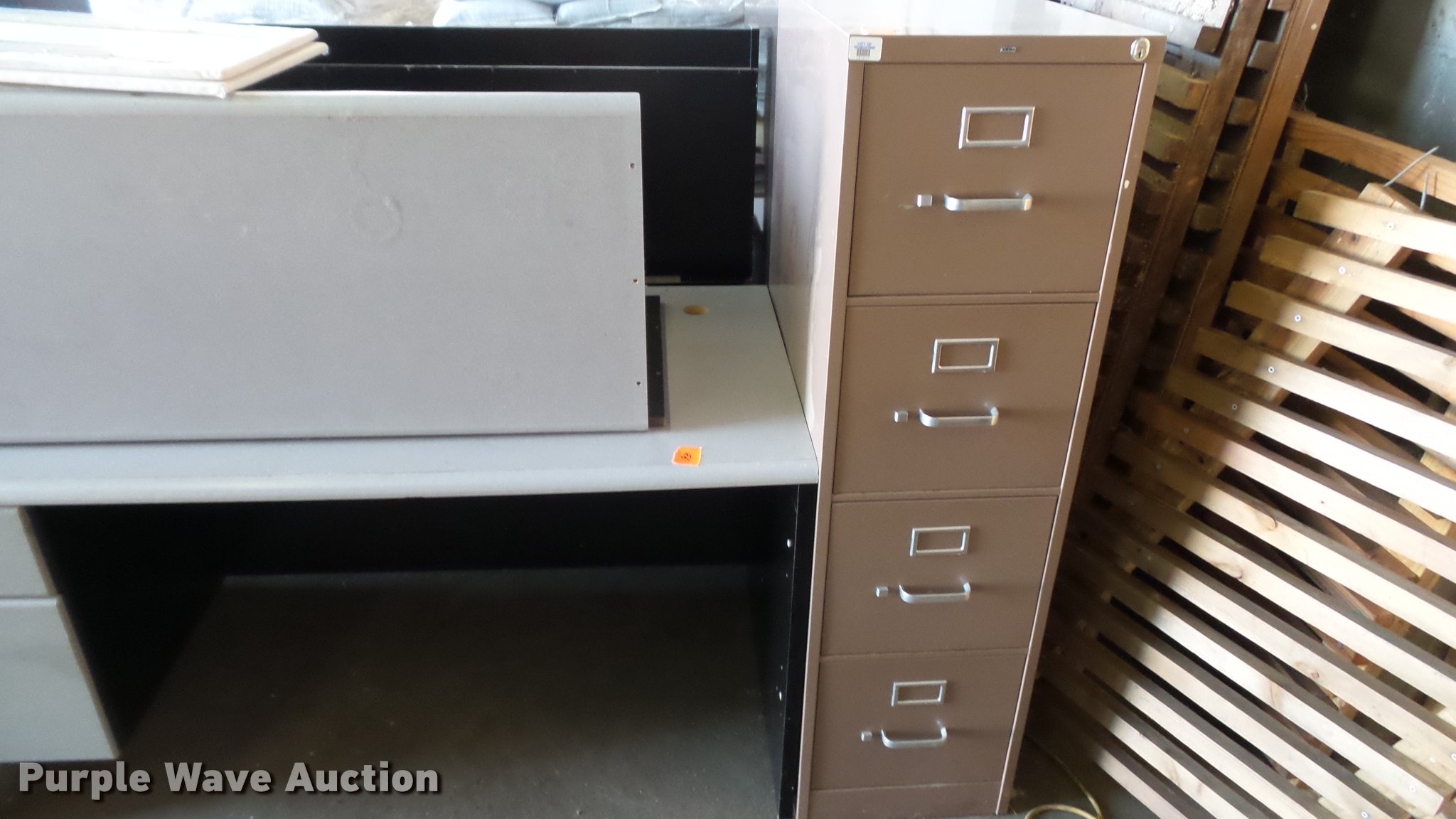 Purple Wave is selling a used Furniture in Iowa. This item is a Office furniture with the following: (9) desks, (2) four drawer metal filing cabinets, Unit# 96, 95, 94, 93, 92, 104, 105, 106, 107, 108
