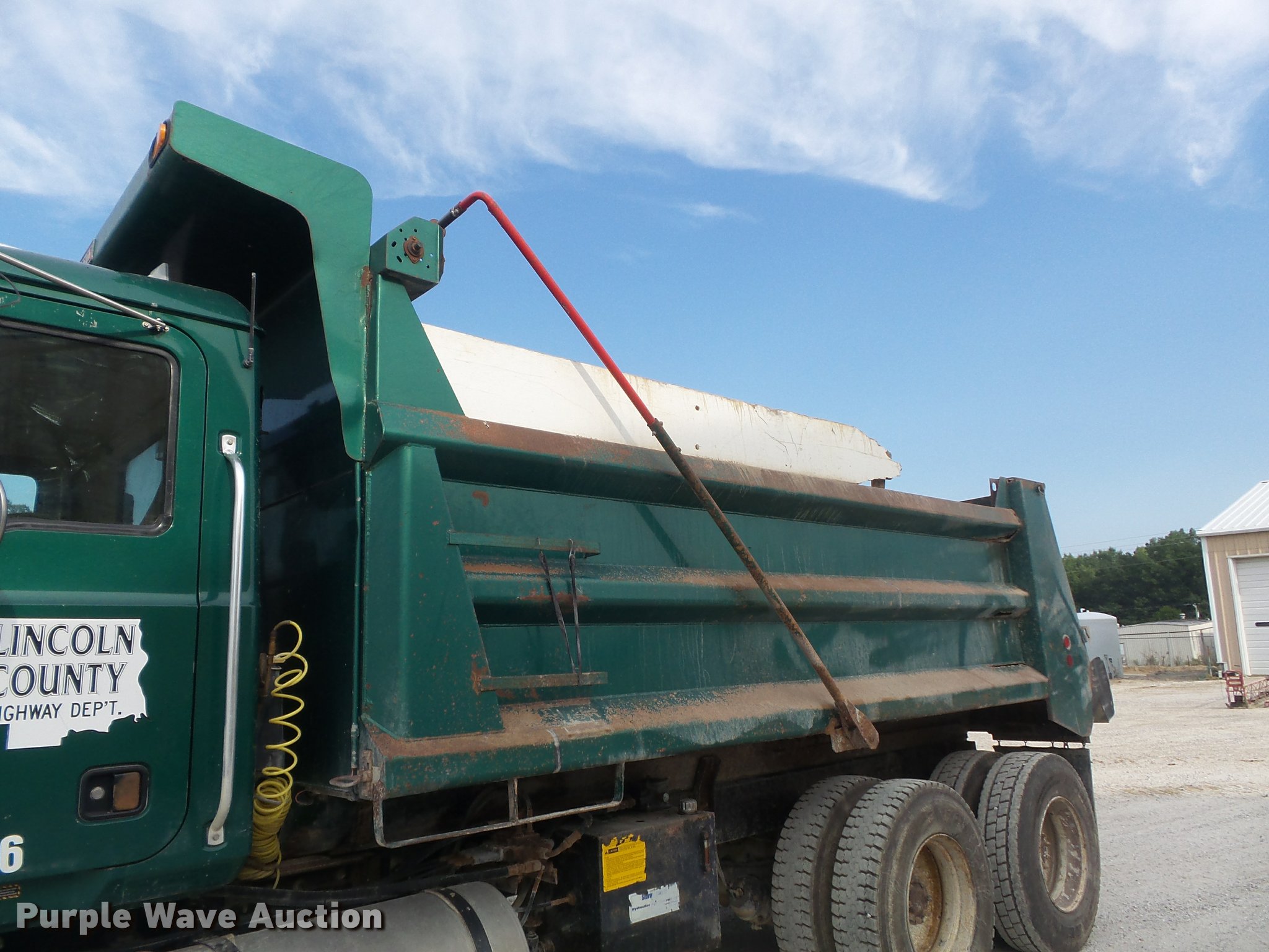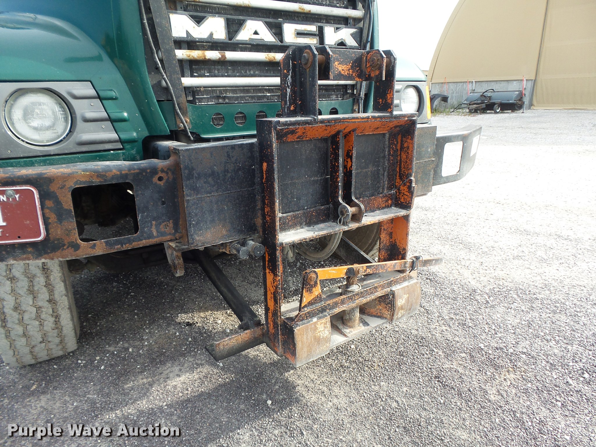 2004 Mack CV713 dump truck. 458,607 miles on odometer, 20,705 hours on meter, Mack AMI 12.0L L6 turbo diesel engine 370 HP, Serial 3S017611GBA18978YP1, Mack Maxitorque ES eight speed manual transmission, Tandem axle, Inter-axle differential lock, AC and heat, Tilt, Telescoping steering wheel, Cruise, AM/FM/CD, Heated mirrors, Air suspension seat, Snow plow and spreader controls, Exterior visor, Front mounted PTO, Heil steel dump bed 16'L x 95"W, 42" side height, 11" side board height, Electric rollover tarp, Bed vibrator, Air operated end gate, Snow plow mount, Rear hydraulic hookups for salt spreader, Dual fuel tanks, Camelback suspension, Air brakes, 220" wheelbase, 315/80R22.5 front tires, 11R22.5 rear tires, Two-way radio not included, ABS light on. Missouri title. Title distribution may be delayed up to 14 days from verification of funds. 1M2AG11C64M011609. Lincoln County. 219 Hwy H. Troy, MO 63379