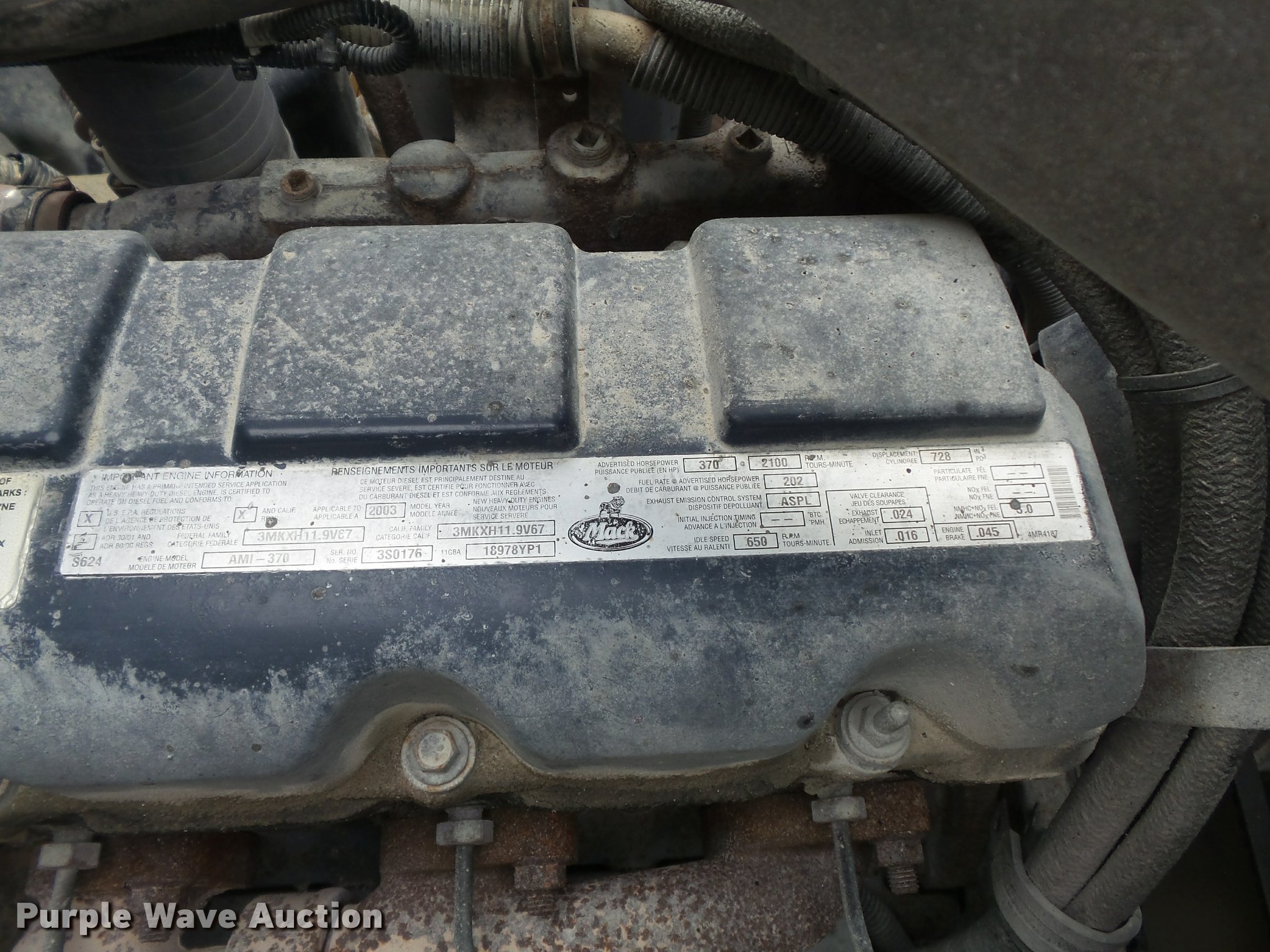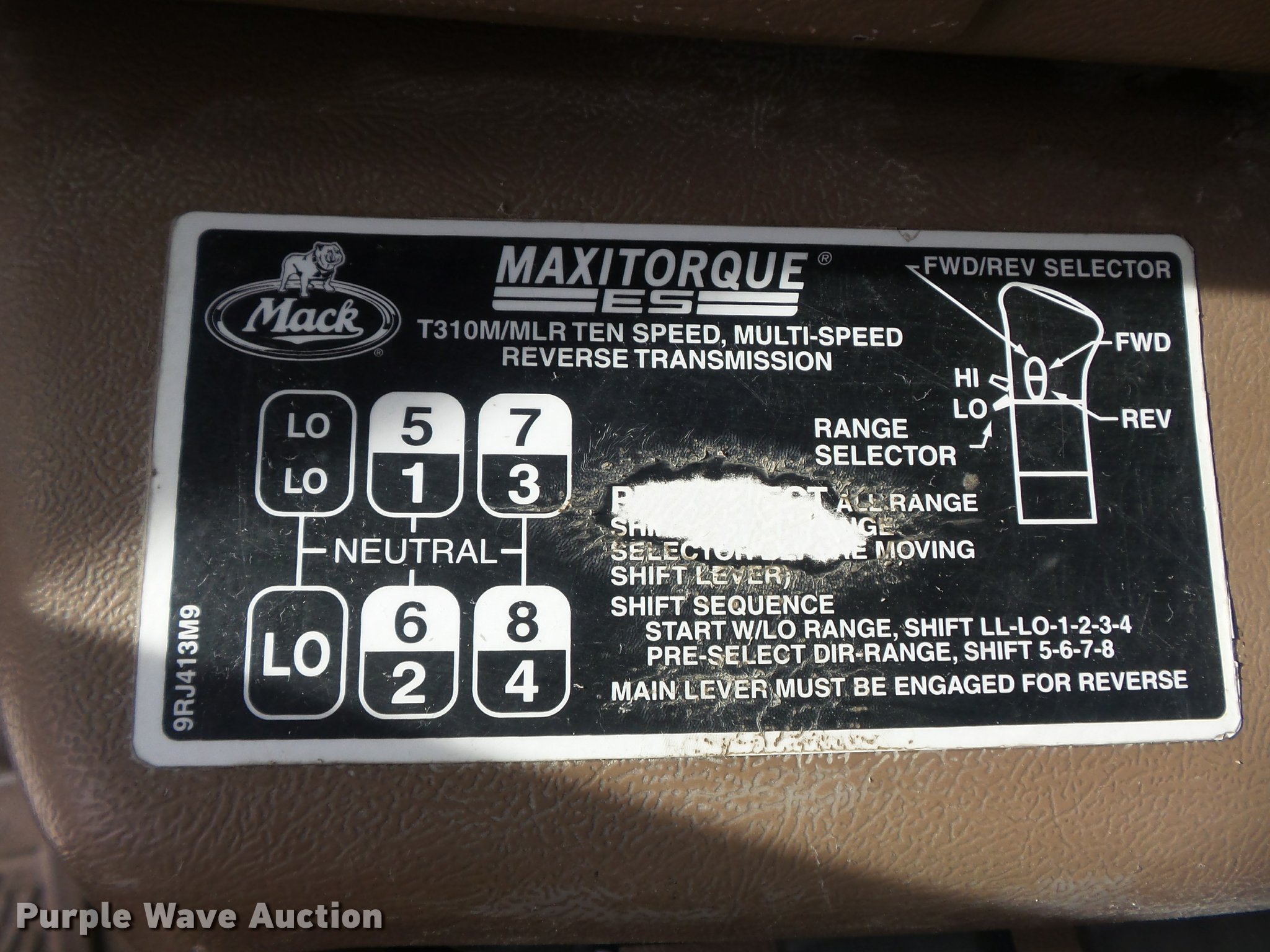 Purple Wave is selling a used Construction Dump Truck in Missouri. This item is a 2004 Mack CV713 dump truck with the following: 458,607 miles on odometer, 20,705 hours on meter, Mack AMI 12.0L L6 turbo diesel engine, 370 HP, Serial 3S017611GBA18978YP1, Mack Maxitorque ES eight speed manual transmission, Tandem axle, Inter-axle differential lock, AC and heat, Tilt, Telescoping steering wheel, Cruise, AM/FM/CD, Heated mirrors, Air suspension seat, Snow plow and spreader controls, Exterior visor, Front mounted PTO, Heil steel dump bed, 16'L x 95"W, 42" side height, 11" side board height, Electric rollover tarp, Bed vibrator, Air operated end gate, Snow plow mount, Rear hydraulic hookups for salt spreader, Dual fuel tanks, Camelback suspension, Air brakes, 220" wheelbase, 315/80R22.5 front tires, 11R22.5 rear tires, Two-way radio not included, ABS light on