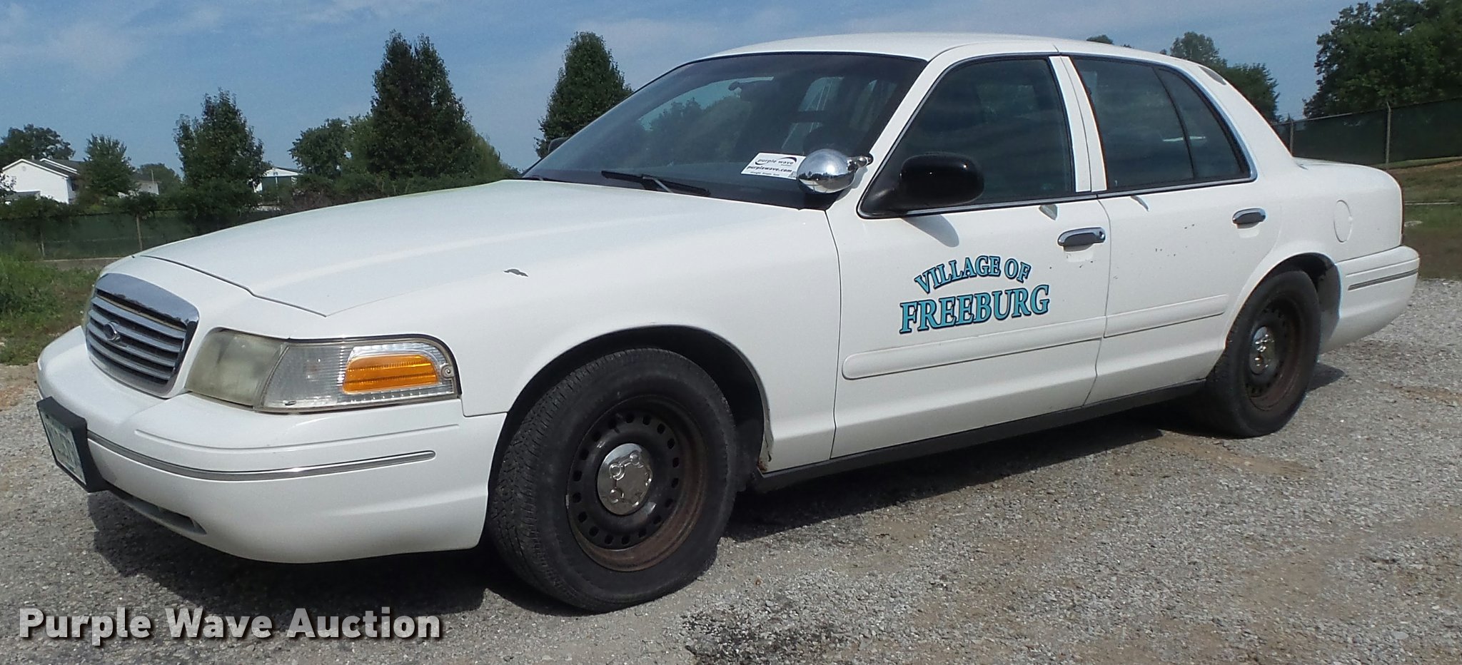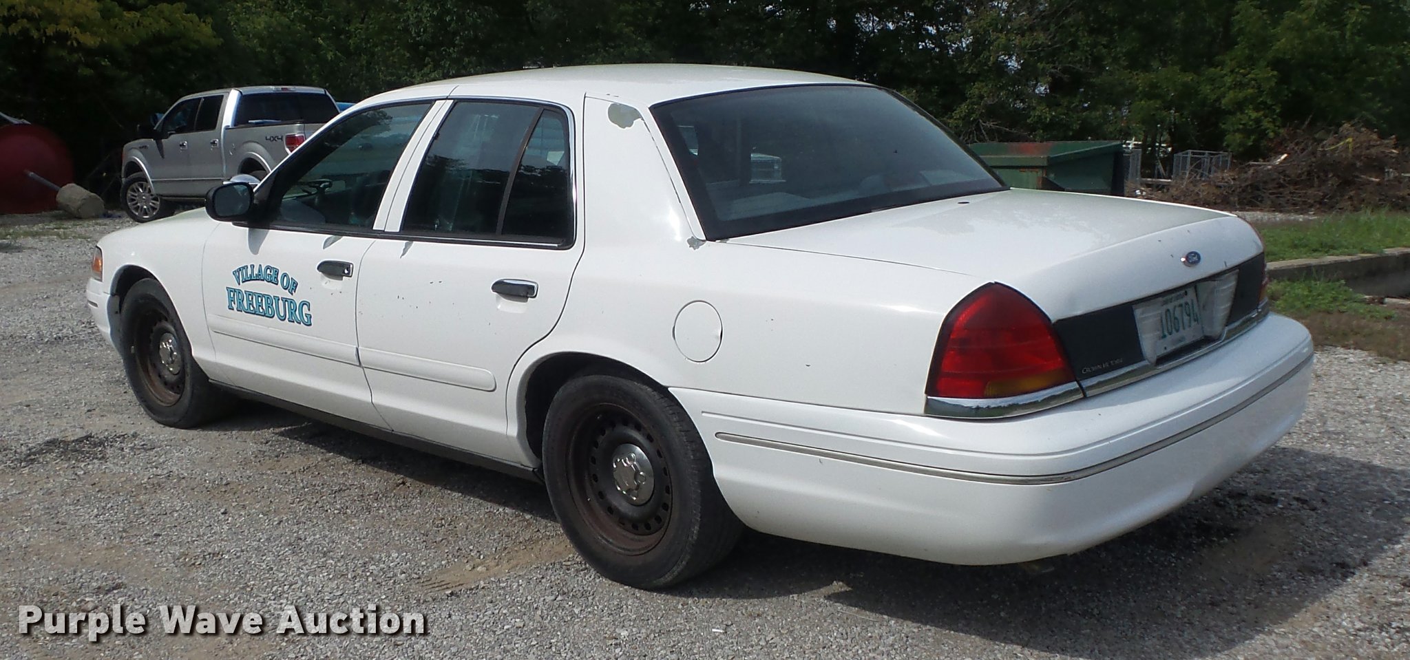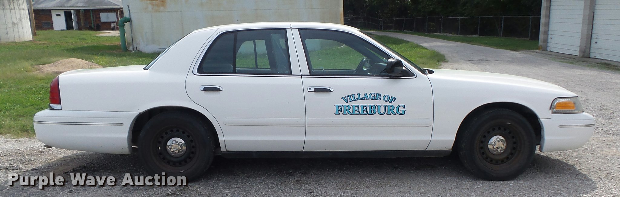 1998 Ford Crown Victoria Police Interceptor. 165,854 miles on odometer, 4.6L V8 SOHC 16V gas engine, Automatic transmission, AC and heat, Tilt, Cruise, Power windows, locks, and mirrors, Cloth interior, P225/60R16 tires, Check engine light on, Air bag light on, Decals will be removed prior to auction. Illinois title. Title distribution may be delayed up to 14 days from verification of funds. 2FAFP71W1WX122366. Village of Freeburg. 14 Southgate Center. Freeburg, IL 62243