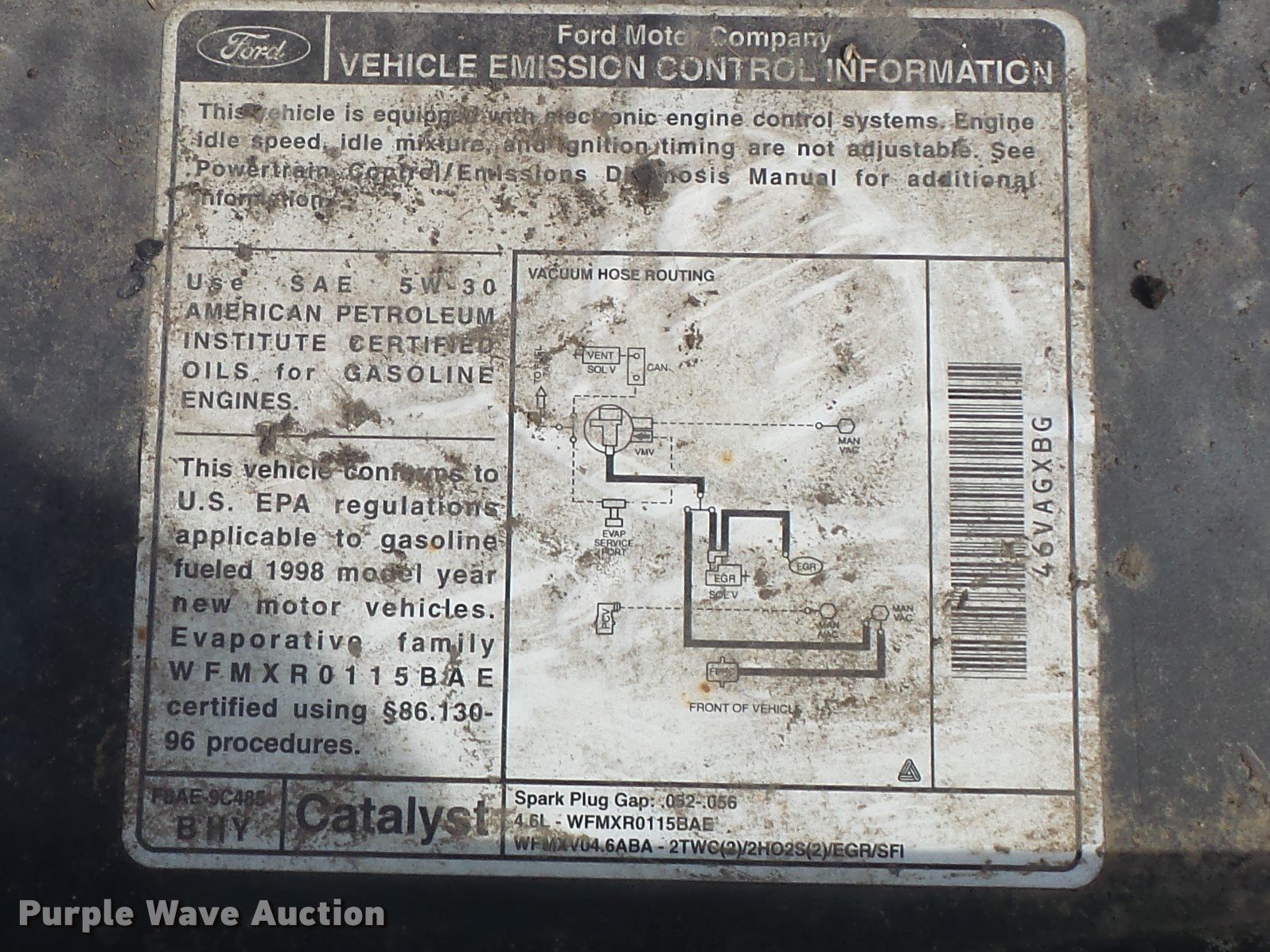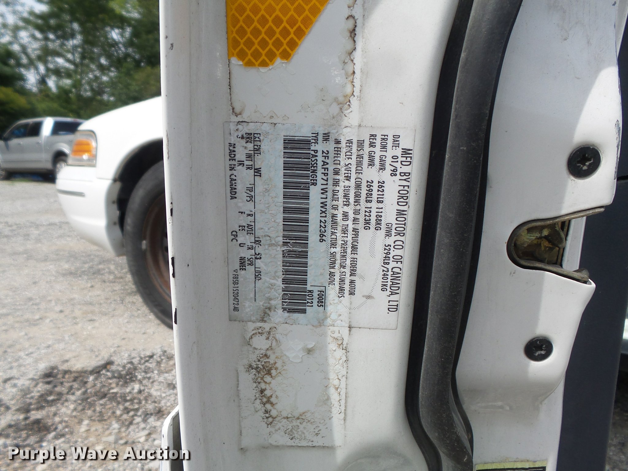 Purple Wave is selling a used Passenger Vehicle in Illinois. This item is a 1998 Ford Crown Victoria Police Interceptor with the following: 165,854 miles on odometer, 4.6L V8 SOHC 16V gas engine, Automatic transmission, AC and heat, Tilt, Cruise, Power windows, locks, and mirrors, Cloth interior, P225/60R16 tires, Check engine light on, Air bag light on, Decals will be removed prior to auction