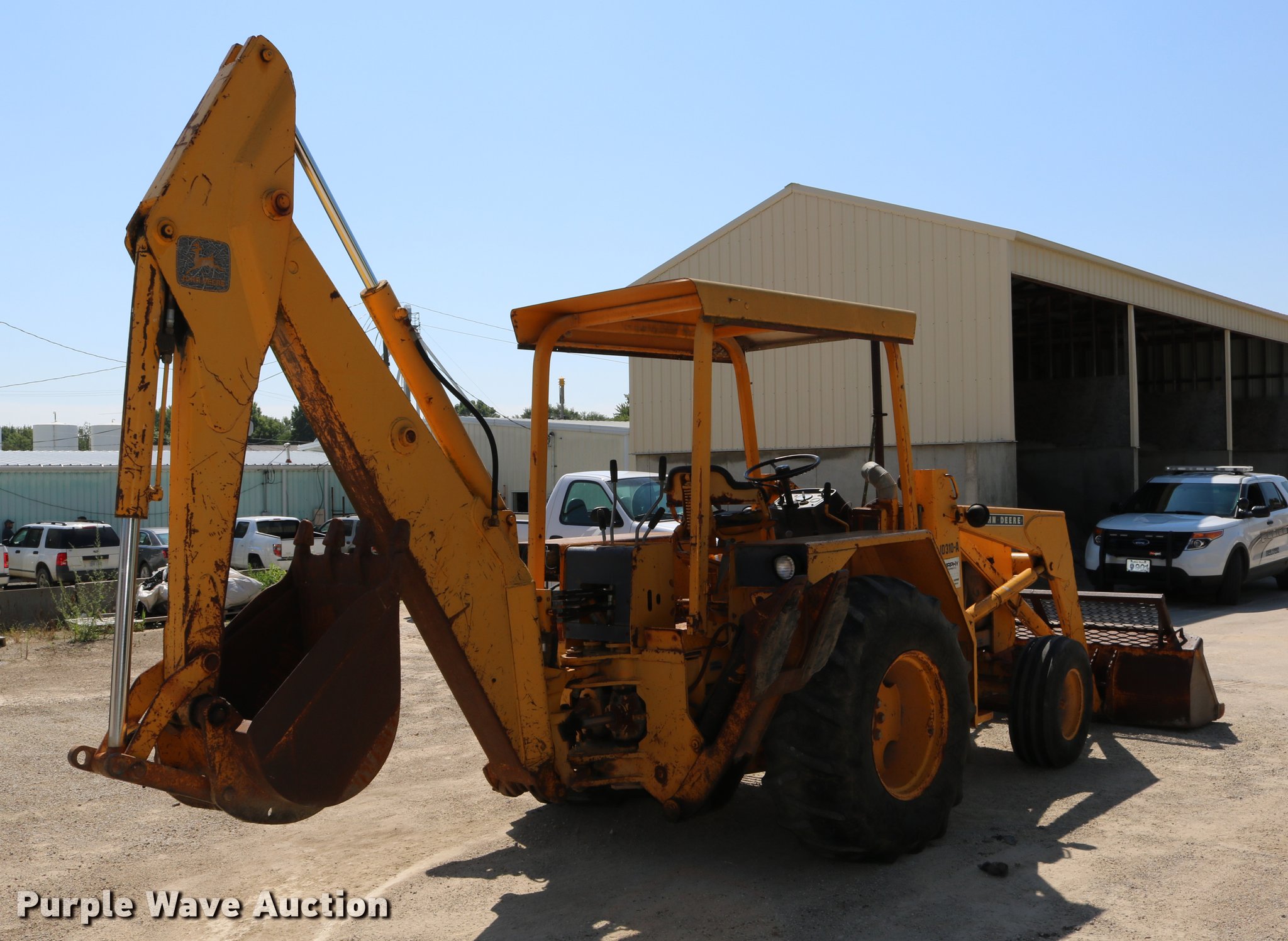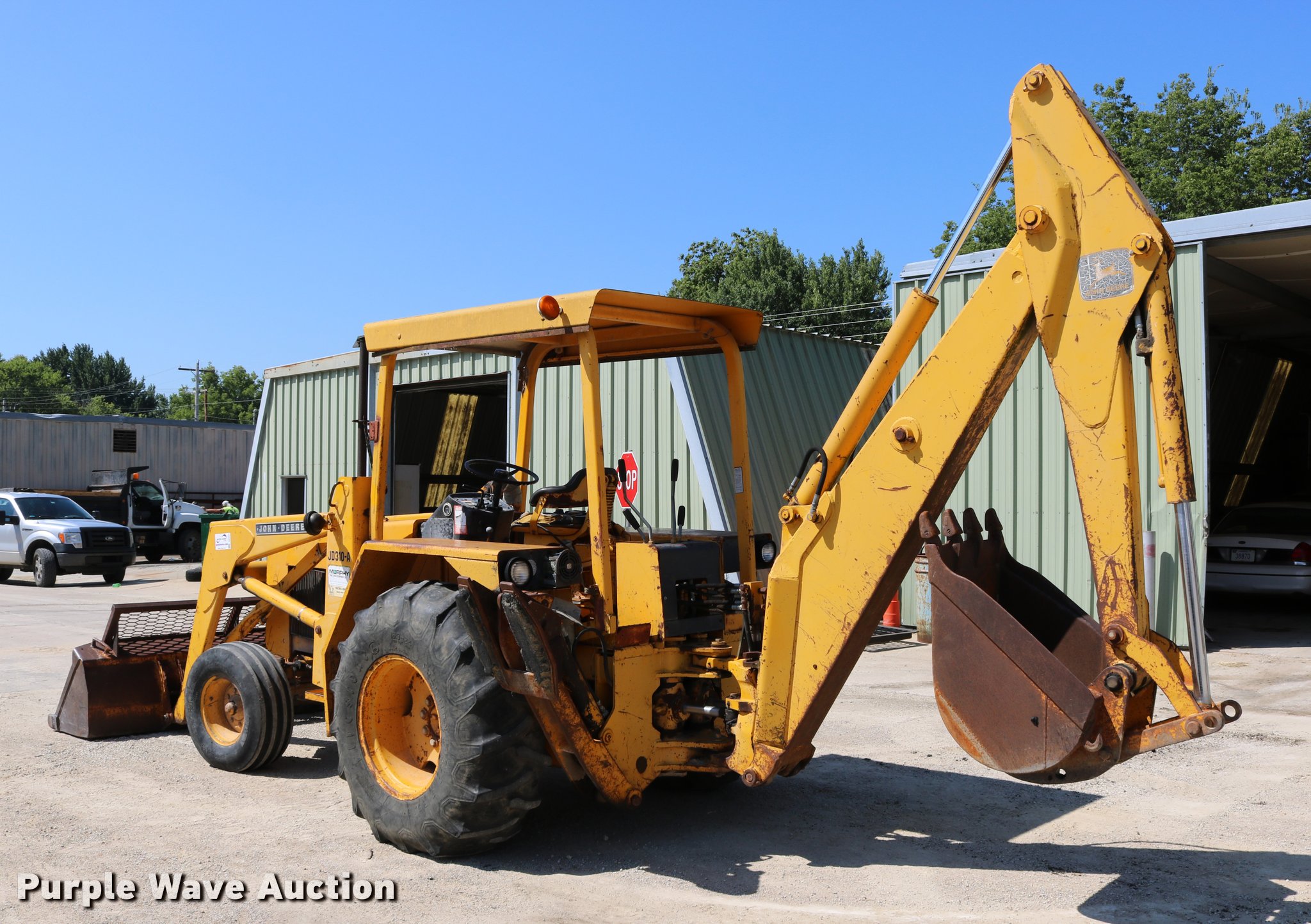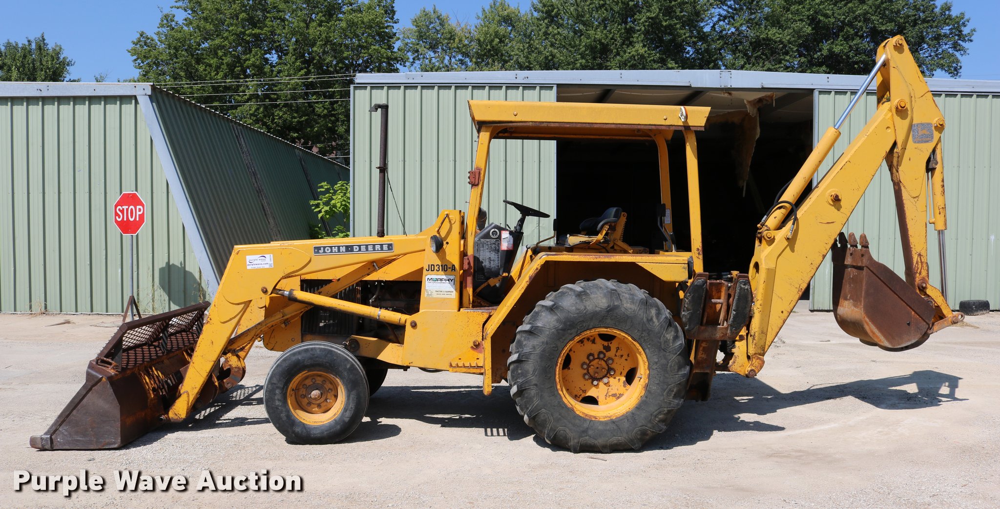 Purple Wave is selling a used Tractor Loader Backhoe in Kansas. This item is a 1978 John Deere 310AD backhoe with the following: 8,356 hours on meter, Four cylinder diesel engine, Serial CD4239D696835, Shuttle shift transmission, 8F-2R gears, OROPS, Shop built plexiglass windows, Wobble stick backhoe controls, Front work lights, 89"W loader bucket, Model AT33141, Weld-on cutting edge, One cu. yd. capacity, John Deere 9405-040670T backhoe bucket, 24"W, (4) teeth, 11L-15 front tires, 16.9-22 rear tires, Tie rods loose in steering, Non-operational work lights, Loader bucket floor wore through by cutting edge, Serial 288267T