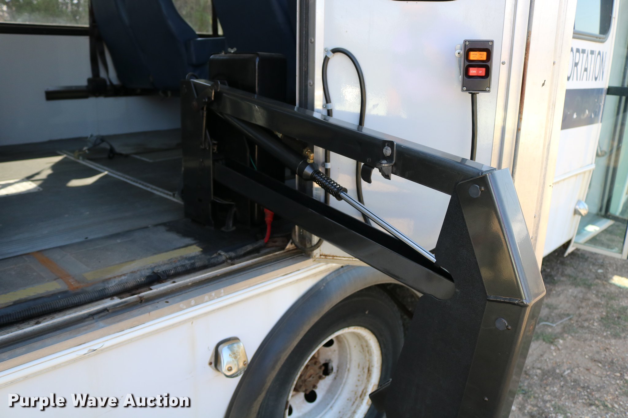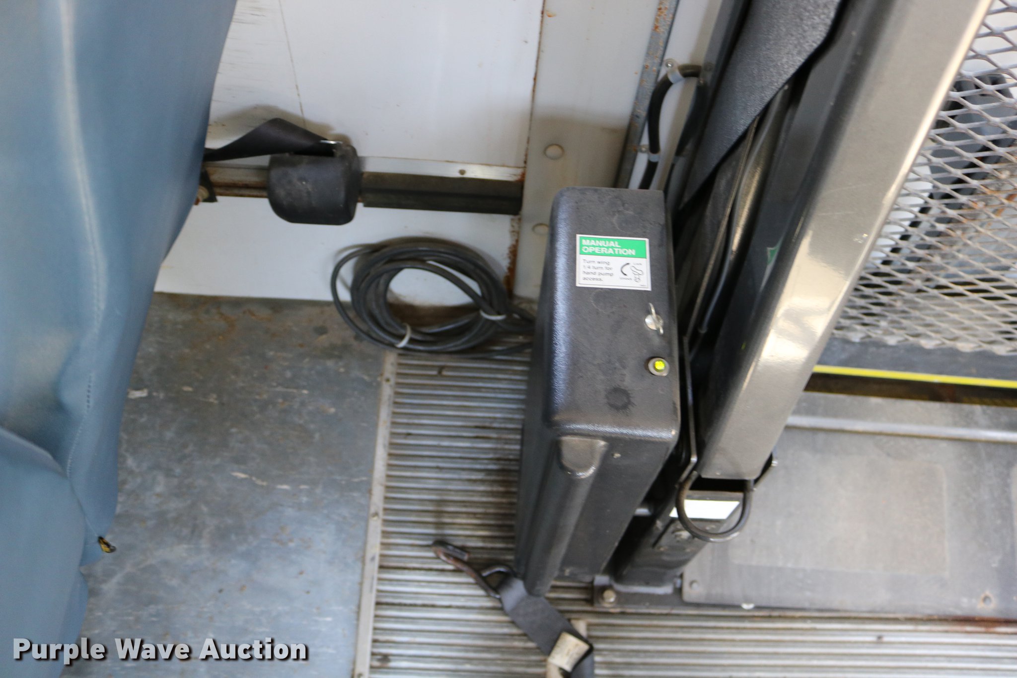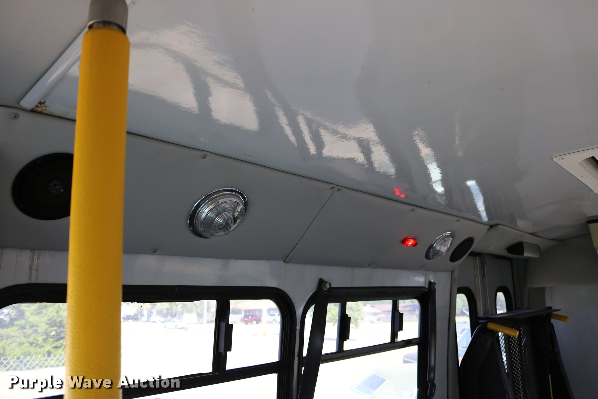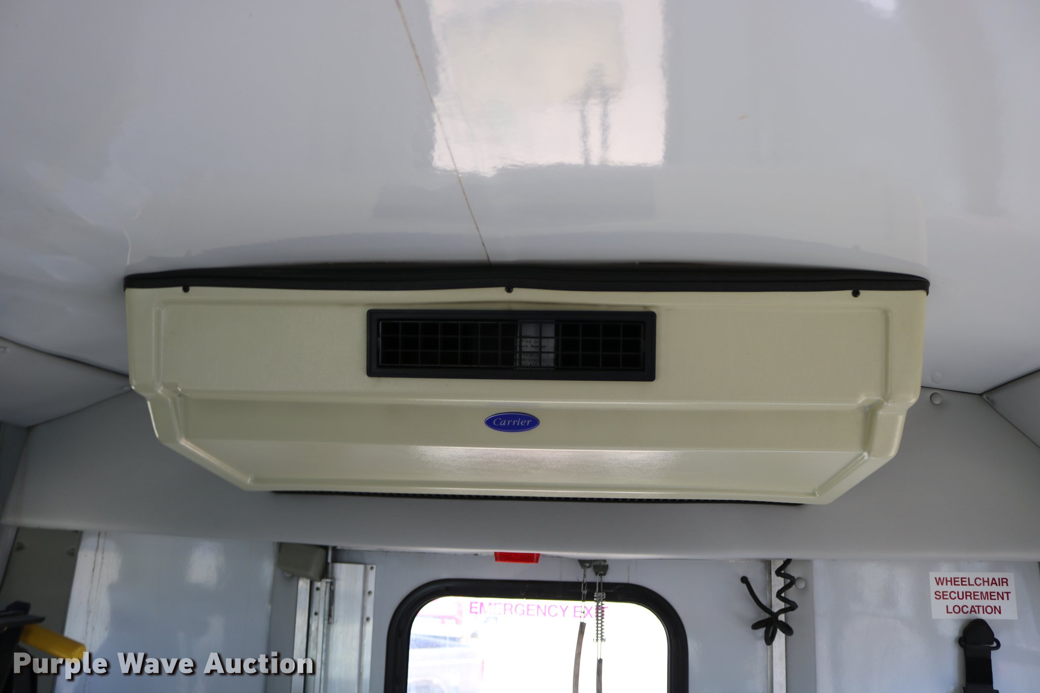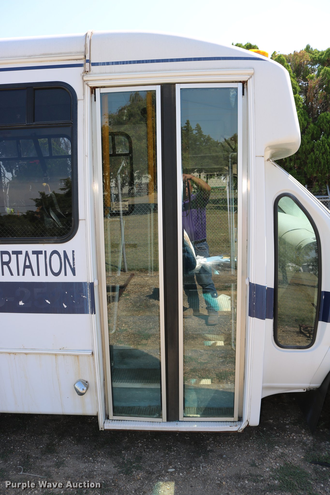 Purple Wave is selling a used Bus in Kansas. This item is a 2003 Ford E350 Super Duty shuttle bus with the following: 139,462 miles on odometer, 6.8L V10 SOHC 20V gas engine, Automatic transmission, Single axle, AC and heat, Cruise, AM/FM/cassette, Power drivers seat, Electric passenger door, 10 passenger capacity, Braun L917FIB wheelchair lift, Ceiling, rear, and side emergency exits, Carrier EM-02 roof AC unit, Backup alarm, 158" wheelbase, 225/75R16 tires, GVWR 11,500 lbs