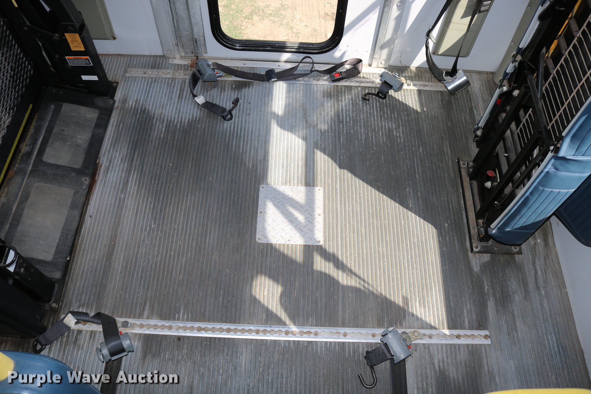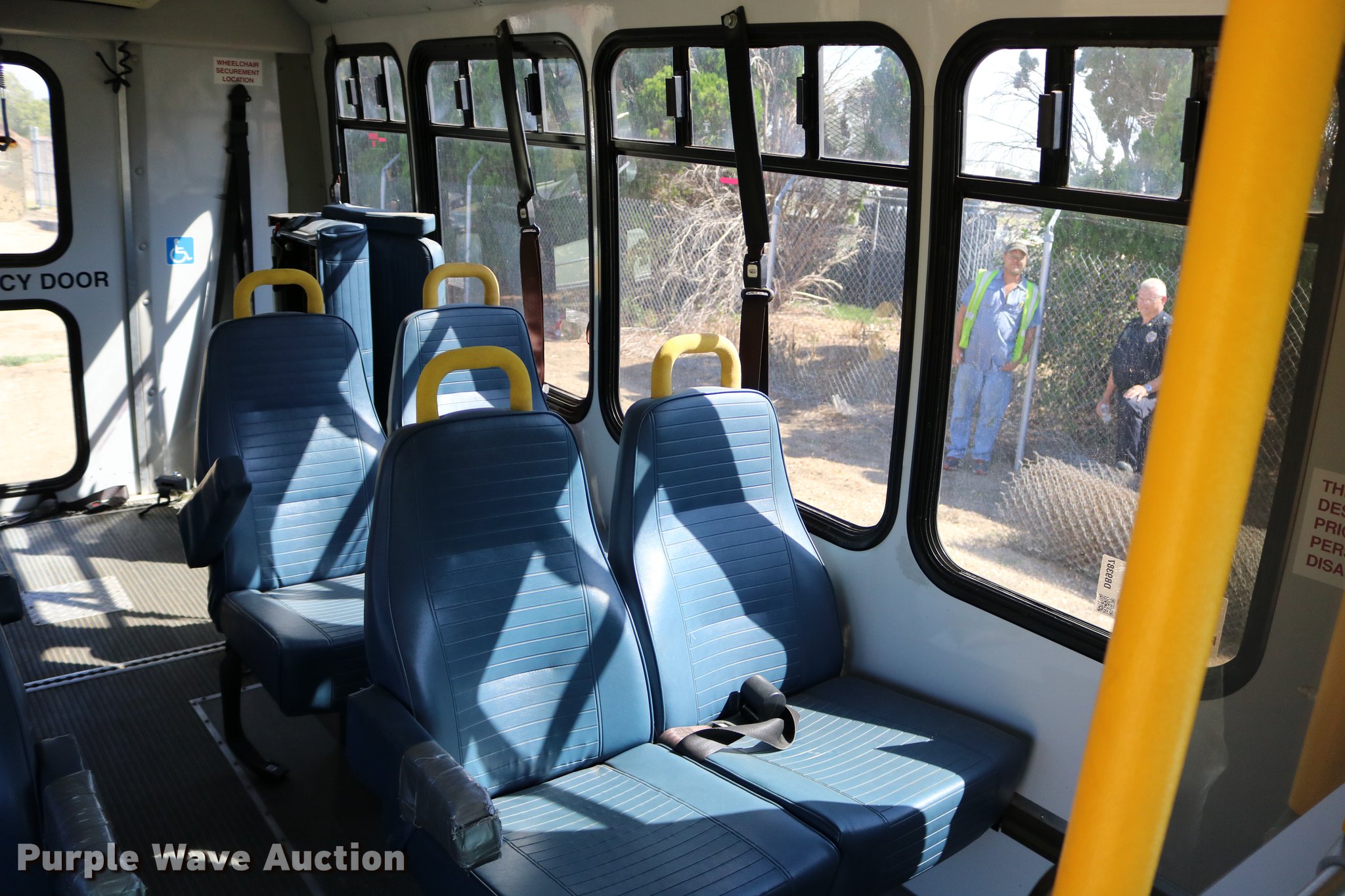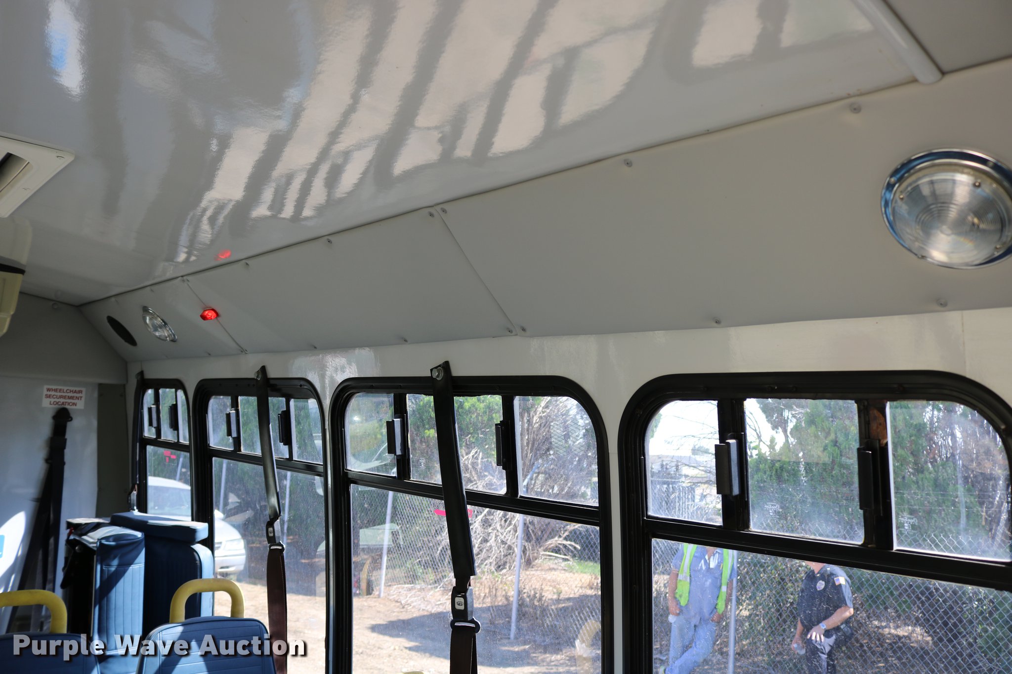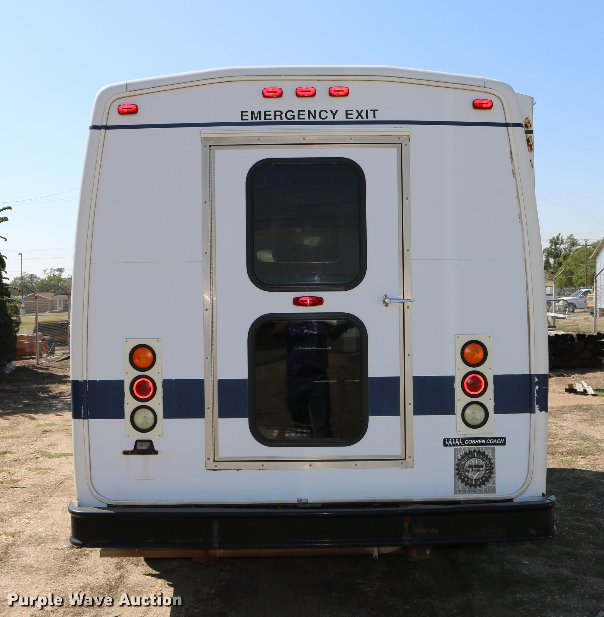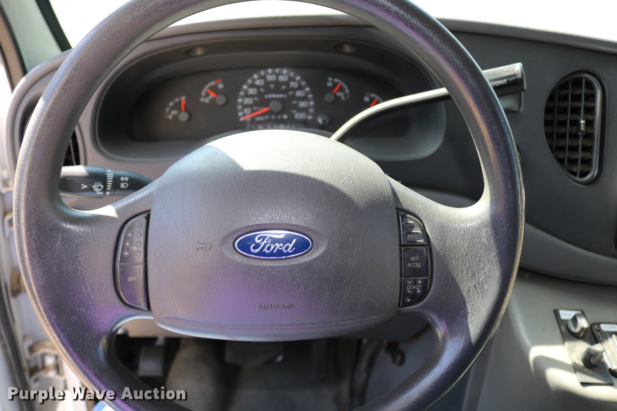 Purple Wave is selling a used Bus in Kansas. This item is a 2003 Ford E350 Super Duty shuttle bus with the following: 139,462 miles on odometer, 6.8L V10 SOHC 20V gas engine, Automatic transmission, Single axle, AC and heat, Cruise, AM/FM/cassette, Power drivers seat, Electric passenger door, 10 passenger capacity, Braun L917FIB wheelchair lift, Ceiling, rear, and side emergency exits, Carrier EM-02 roof AC unit, Backup alarm, 158" wheelbase, 225/75R16 tires, GVWR 11,500 lbs