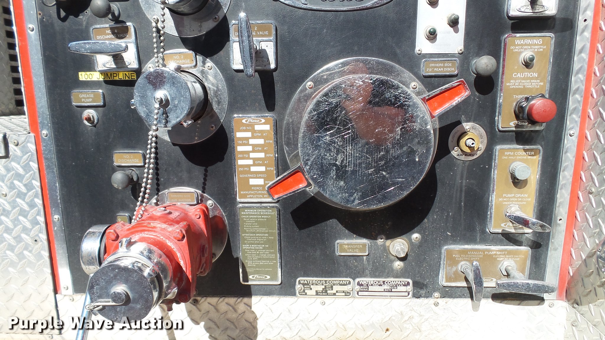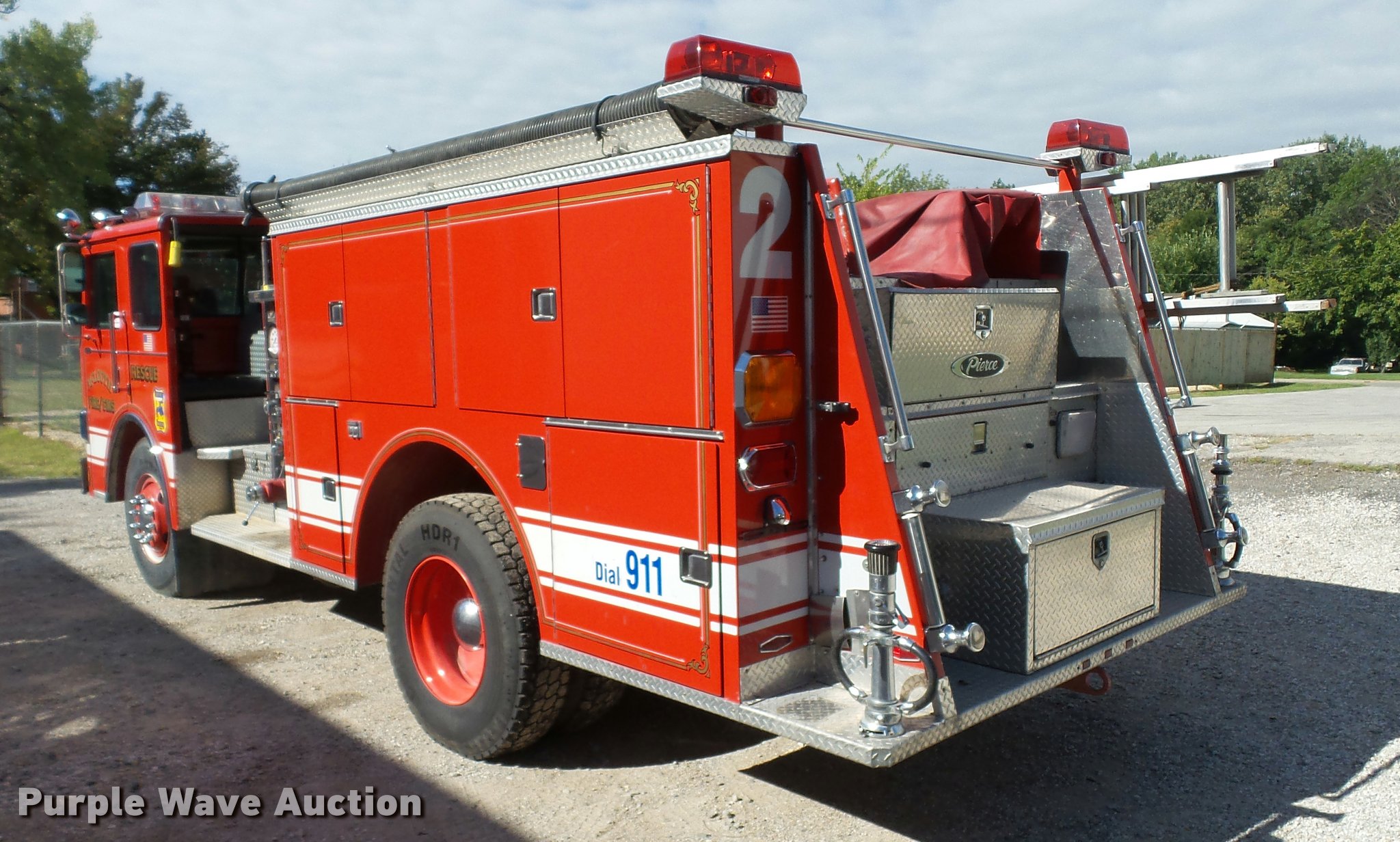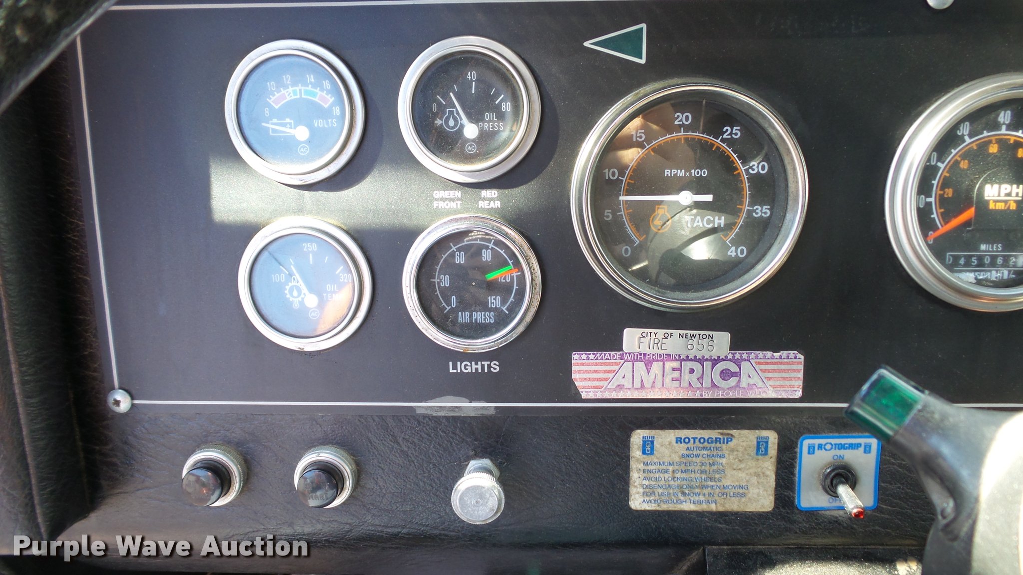 Purple Wave is selling a used Fire Truck or Emergency Vehicle in Kansas. This item is a 1984 Pierce Dash fire truck with the following: 45,062 miles on odometer, Six cylinder turbo diesel engine, Automatic transmission, Single axle, Heat, Docking station, Suspension seat, Air horn, Backup alarm, Gemini dash camera system, Public Safety Equip. Code 3 emergency light bar, Fire Com communication headsets, Emergency lights and sirens, Waterous CMUYBX pump, 1,500 gpm, 600 max psi, Serial 4427W, Outlet box, Work lights, Air brakes, 11.00R20 front tires, 11R22.5 rear tires, GVWR 37,180 lbs, Unit was purchased by a grant. Unit may not be sold to any Fire Service due to grant stipulations.