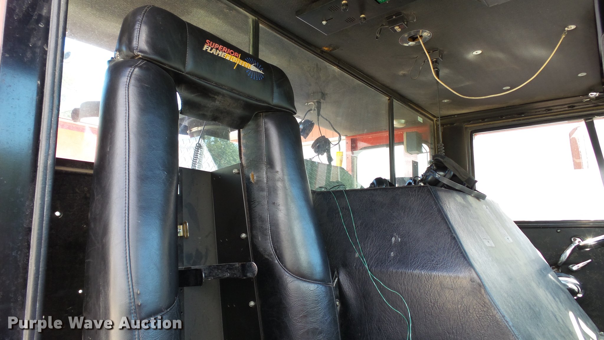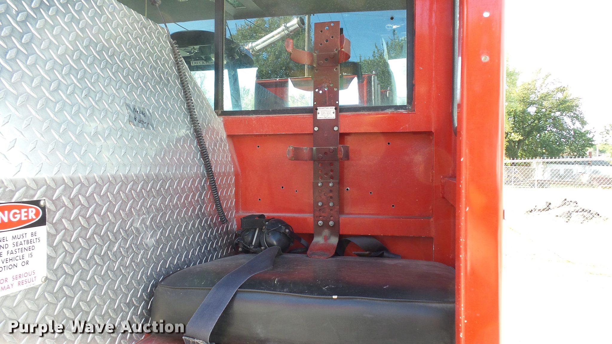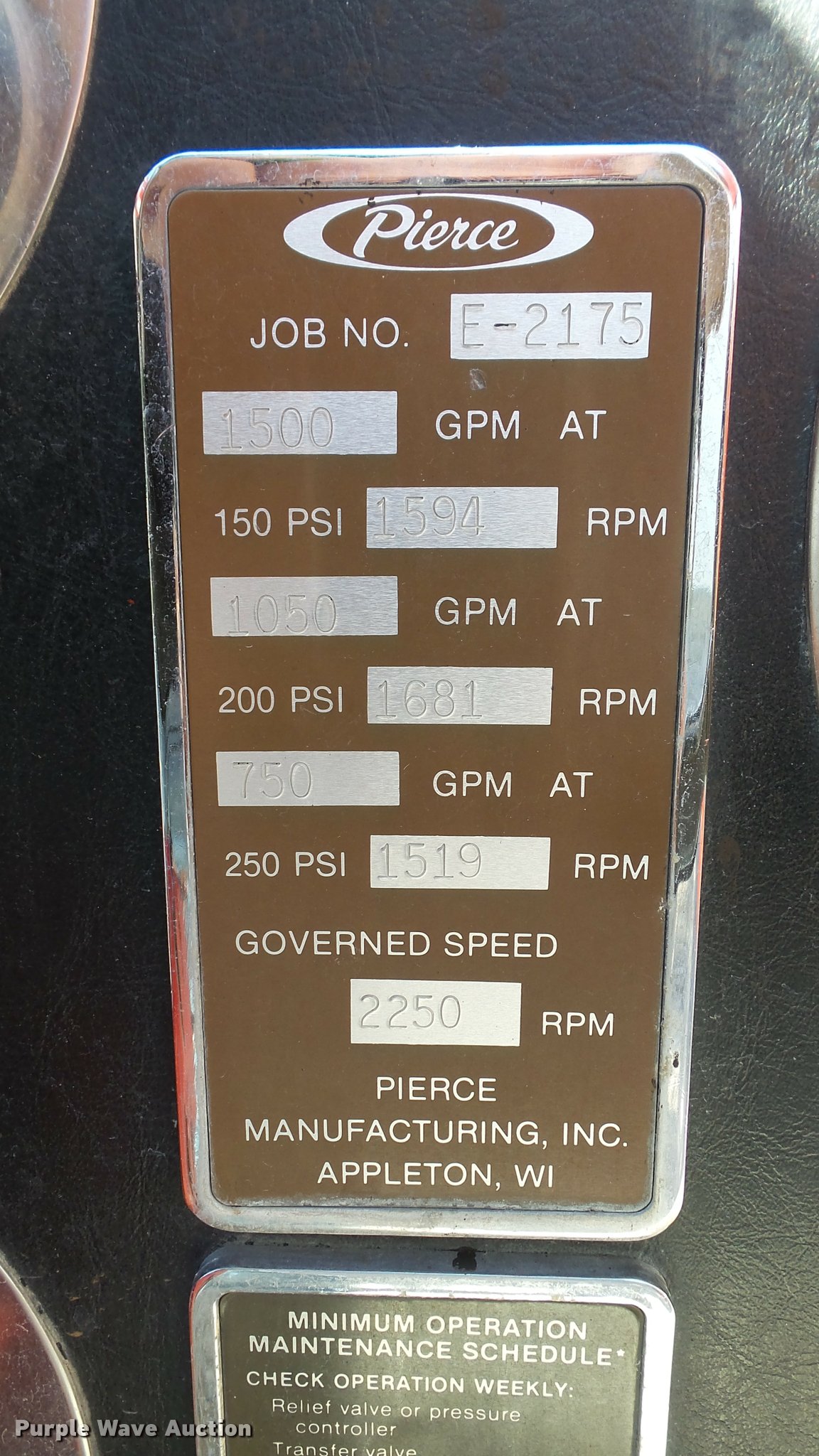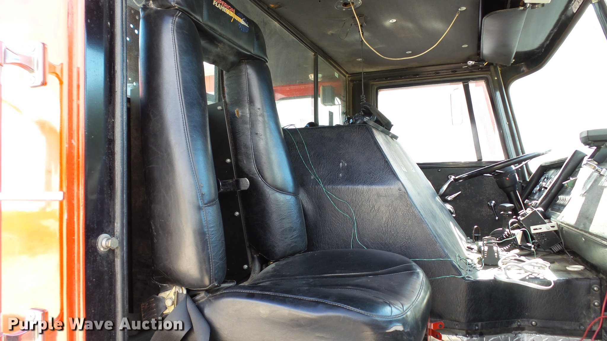 Purple Wave is selling a used Fire Truck or Emergency Vehicle in Kansas. This item is a 1984 Pierce Dash fire truck with the following: 45,062 miles on odometer, Six cylinder turbo diesel engine, Automatic transmission, Single axle, Heat, Docking station, Suspension seat, Air horn, Backup alarm, Gemini dash camera system, Public Safety Equip. Code 3 emergency light bar, Fire Com communication headsets, Emergency lights and sirens, Waterous CMUYBX pump, 1,500 gpm, 600 max psi, Serial 4427W, Outlet box, Work lights, Air brakes, 11.00R20 front tires, 11R22.5 rear tires, GVWR 37,180 lbs, Unit was purchased by a grant. Unit may not be sold to any Fire Service due to grant stipulations.