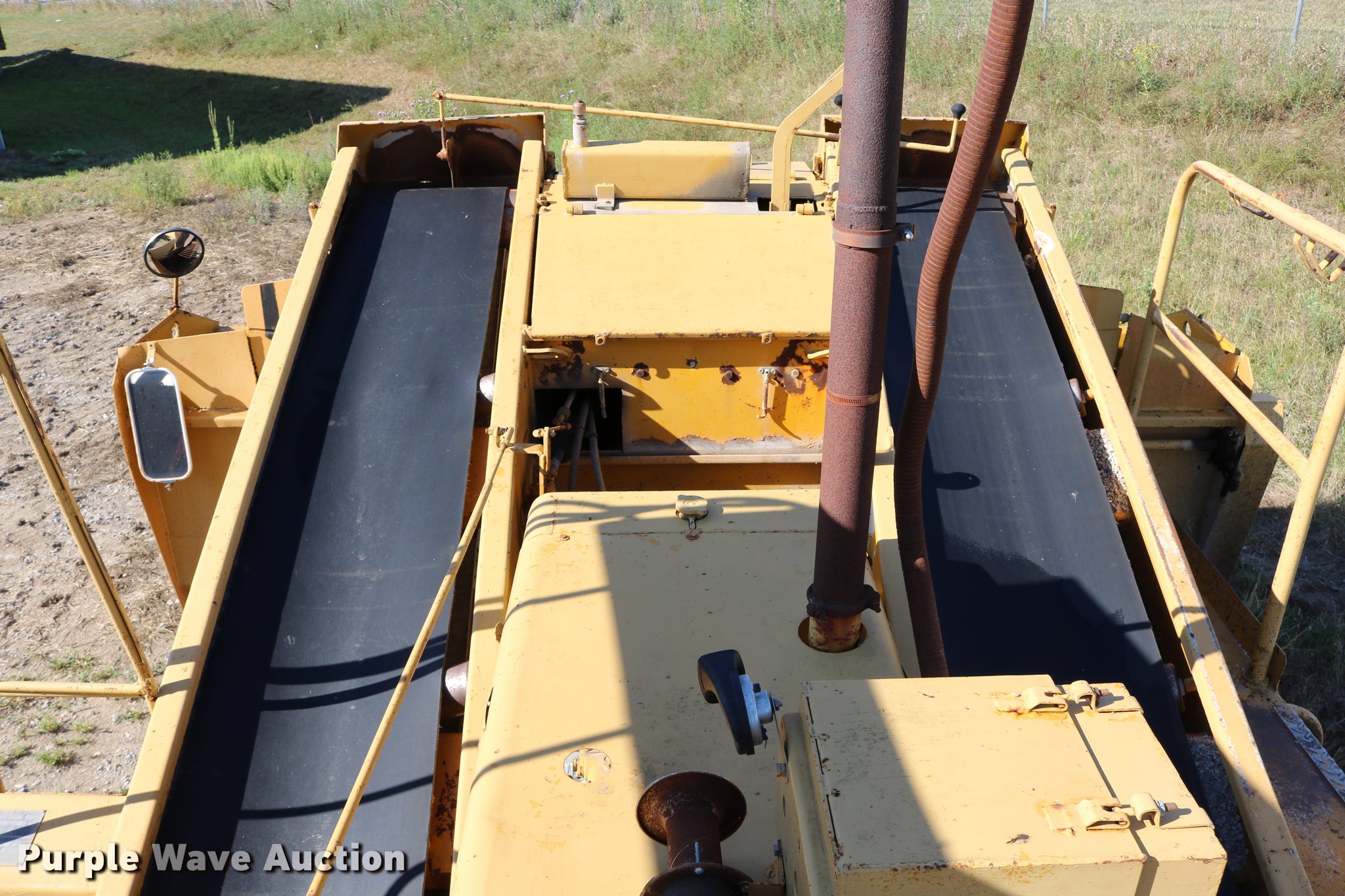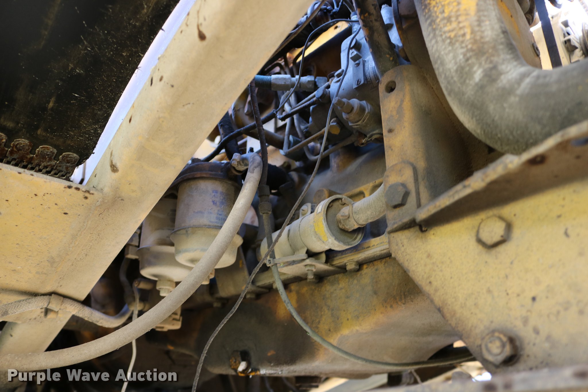 1973 Etnyre P chip spreader. 2,534 hours on meter, Six cylinder turbo diesel engine, Shuttle shift transmission 5F-5R gears, 111"W rear hopper, 13'W front spreader hopper, (2) belt conveyors, 10.00-20 tires, Clutch issues on feeder for chips, Non-operational unit, Serial K3781, Unit# RB3073. Marysville Shop. 1191 12th Rd. Marysville, KS 66508