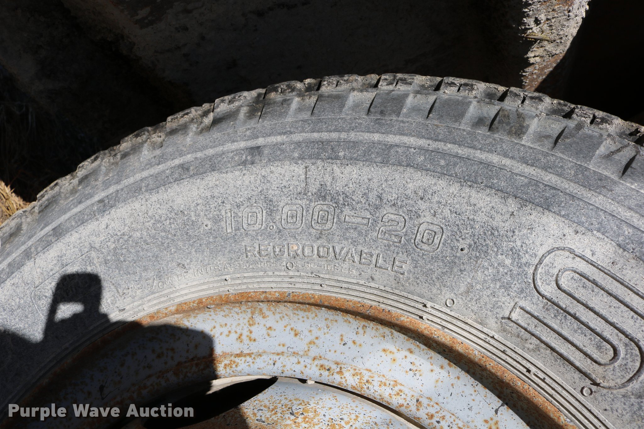Purple Wave is selling a used Chip Spreader in Kansas. This item is a 1973 Etnyre P chip spreader with the following: 2,534 hours on meter, Six cylinder turbo diesel engine, Shuttle shift transmission, 5F-5R gears, 111"W rear hopper, 13'W front spreader hopper, (2) belt conveyors, 10.00-20 tires, Clutch issues on feeder for chips, Non-operational unit, Serial K3781, Unit# RB3073