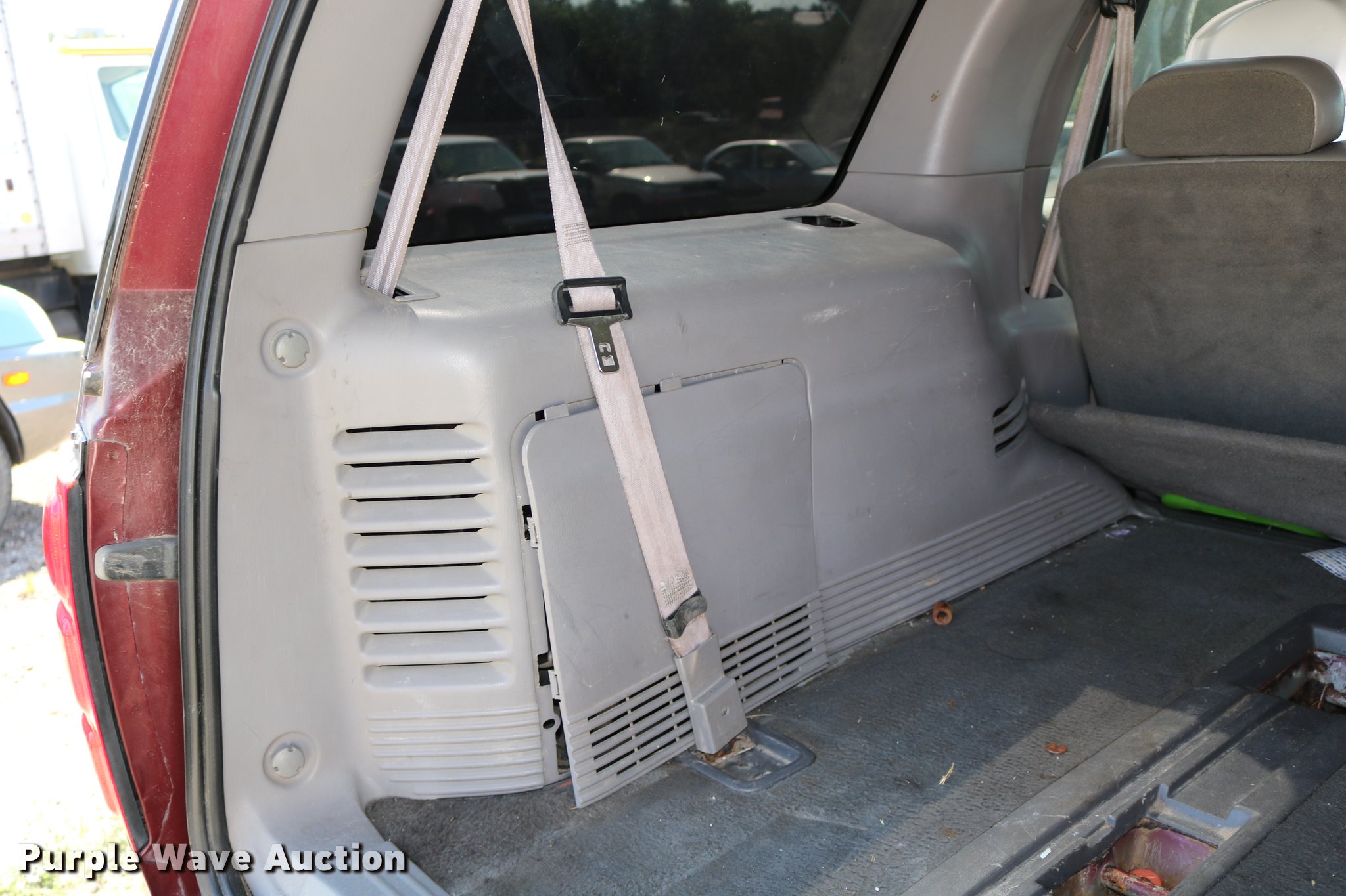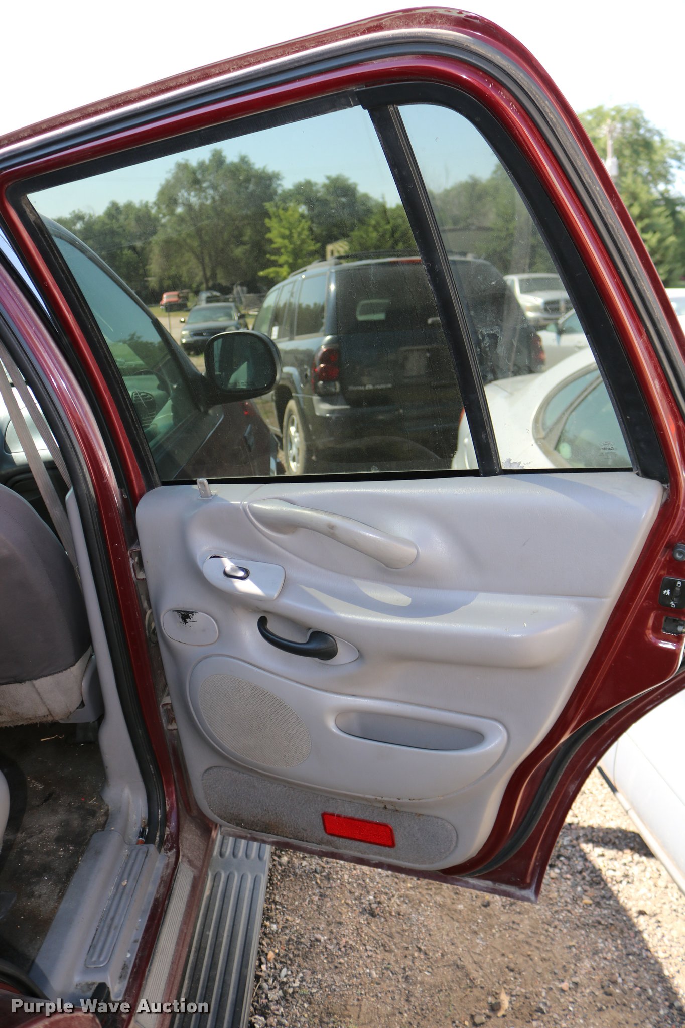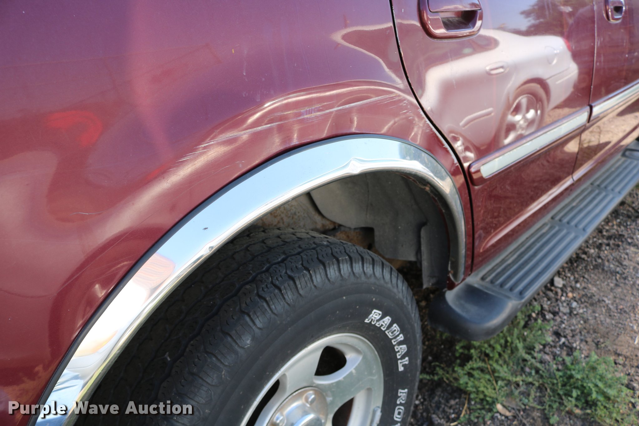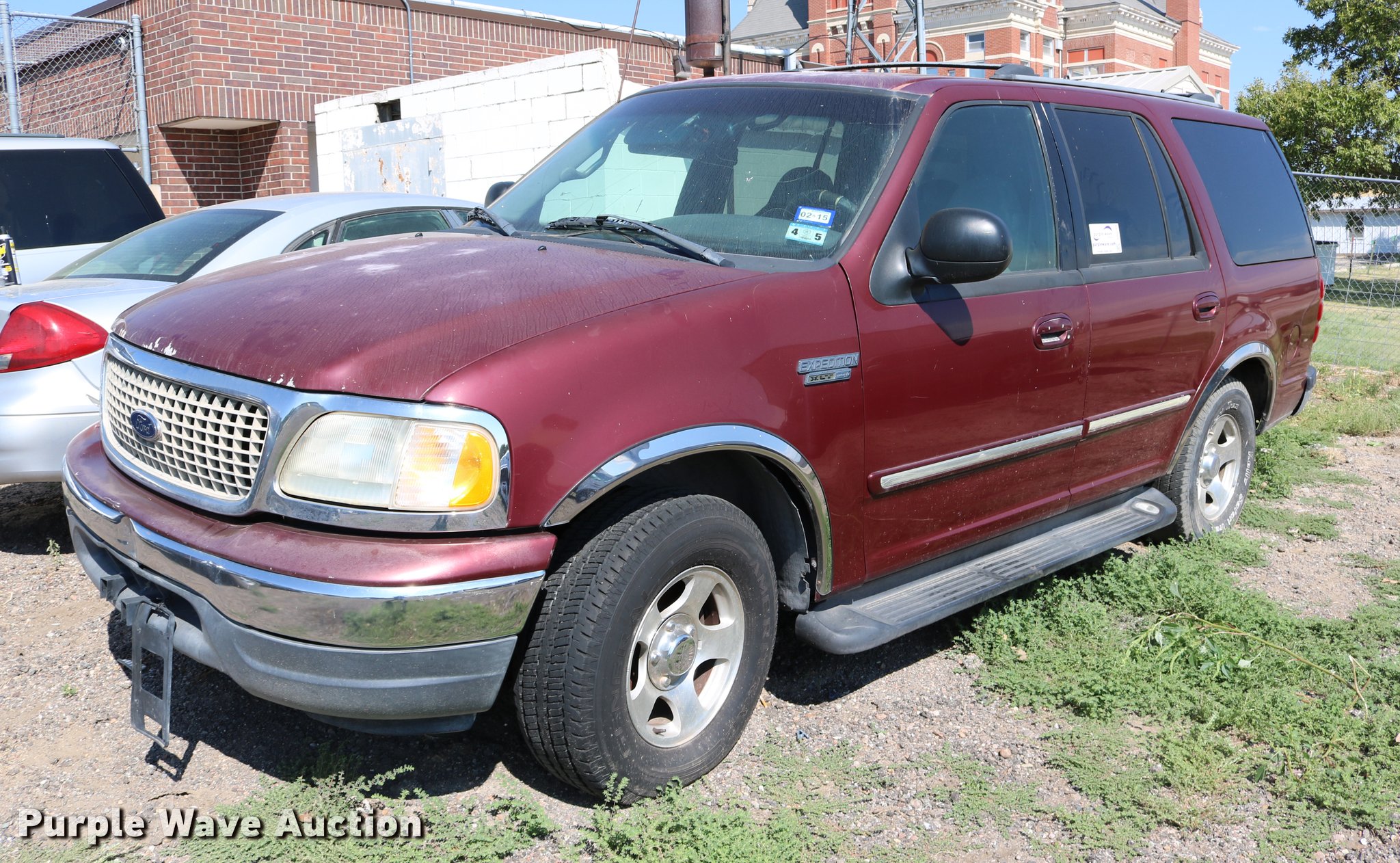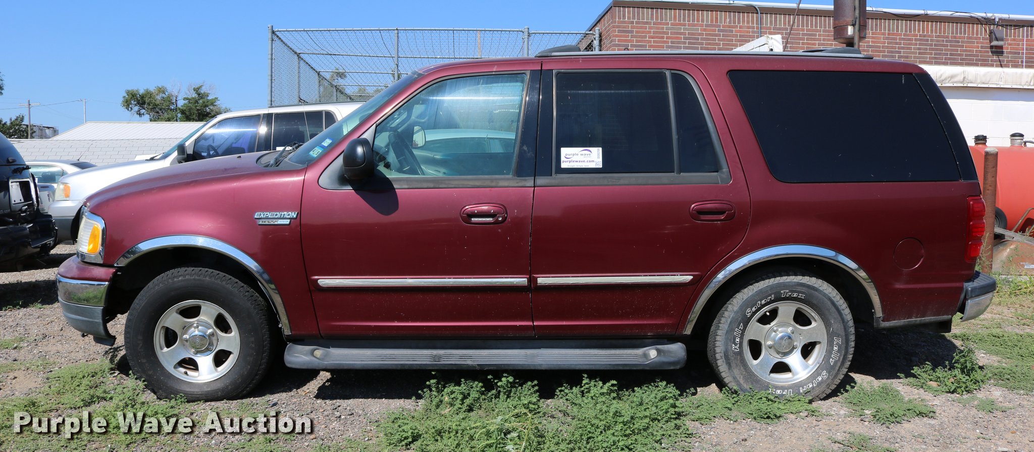 Purple Wave is selling a used Passenger Vehicle in Kansas. This item is a 2001 Ford Expedition SUV with the following: Unknown miles on odometer, 5.4L V8 SOHC 16V gas engine, Automatic transmission, AC and heat, Tilt, Cruise, AM/FM/cassette, Power windows, locks, mirrors, and seat, Vinyl interior, Running boards, 255/70R16 tires, No keys, Engine hood will not stay up, Cracked windshield, Trim damaged, Headlight damage, Front bumper damage, No rear wiper, Unknown operating condition