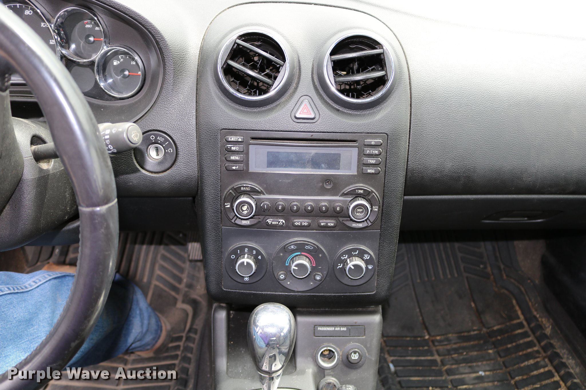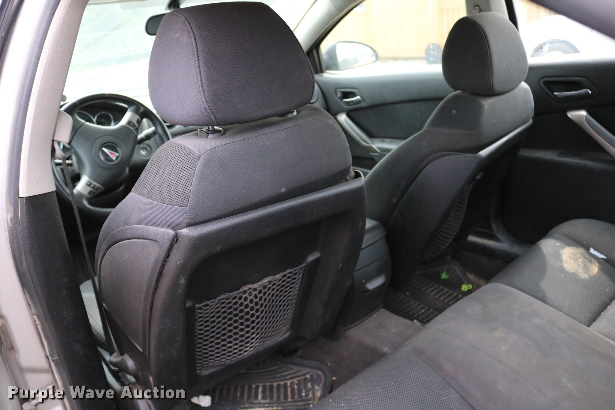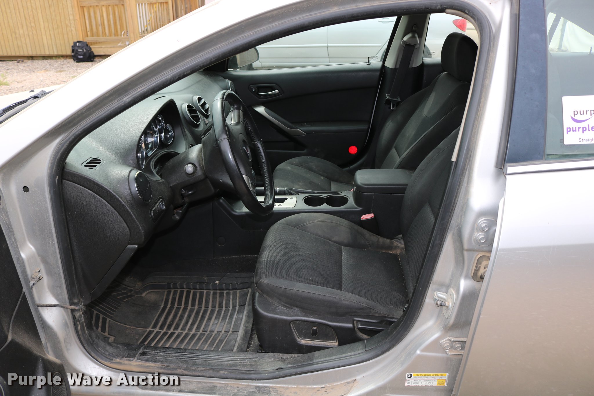 Purple Wave is selling a used Passenger Vehicle in Kansas. This item is a 2008 Pontiac G6 with the following: Unknown miles on odometer, 3.5L V6 OHV 12V gas engine, Automatic transmission, AC and heat, Tilt, Cruise, AM/FM/CD, Power windows, locks, and mirrors, Cloth interior, 225/50R17 tires, No keys, Cracked windshield, Unknown operating condition