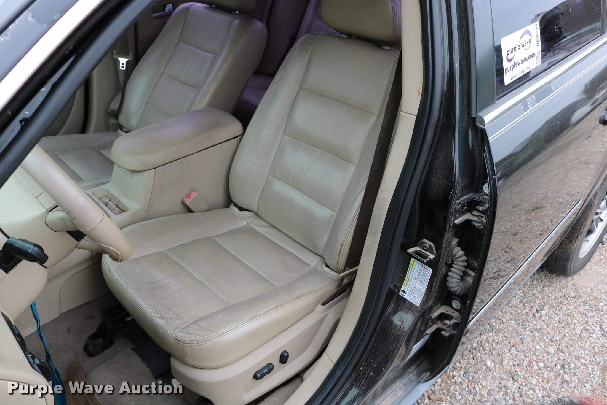 Purple Wave is selling a used Passenger Vehicle in Kansas. This item is a 2005 Ford Five Hundred with the following: 180,618 miles on odometer, 3.0L V6 DOHC 24V gas engine, Automatic transmission, AC and heat, Tilt, Cruise, AM/FM, Power windows, locks, mirrors, and seats, Vinyl interior, Power sunroof, 215/60R17 tires, AC needs repaired, Brake noise, Rear bumper cracked, Cracked windshield, Hood will not shut, Unknown operating condition