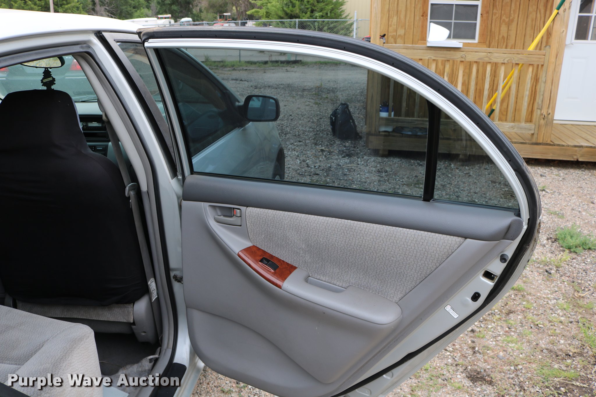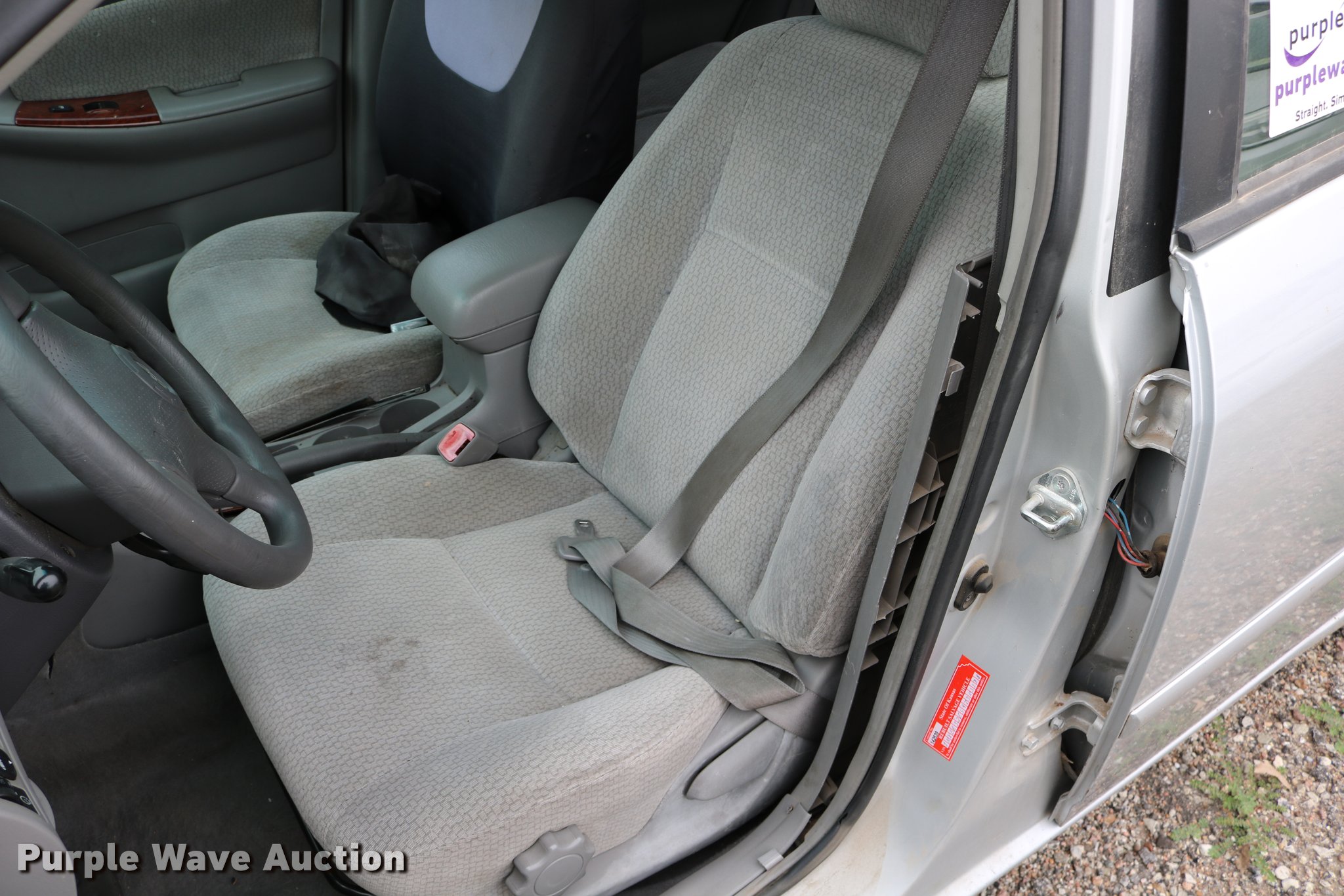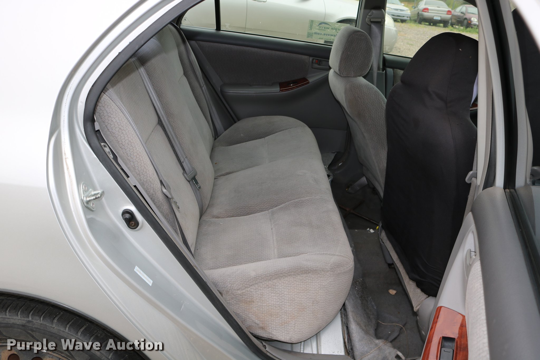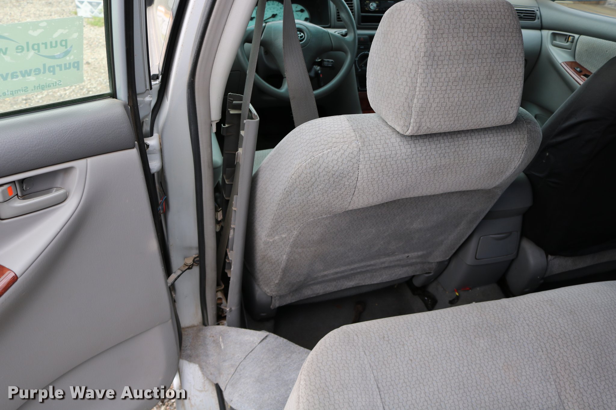 Purple Wave is selling a used Passenger Vehicle in Kansas. This item is a 2004 Toyota Corolla with the following: 191,541 miles on odometer, 1.8L L4 DOHC 16V gas engine, Automatic transmission, AC and heat, Tilt, Cruise, AM/FM/CD, Power windows, locks, and mirrors, Cloth interior, 195/65R15 tires, Weak battery, Trim loose, Rear seat loose, Flat tire, Unknown operating condition
