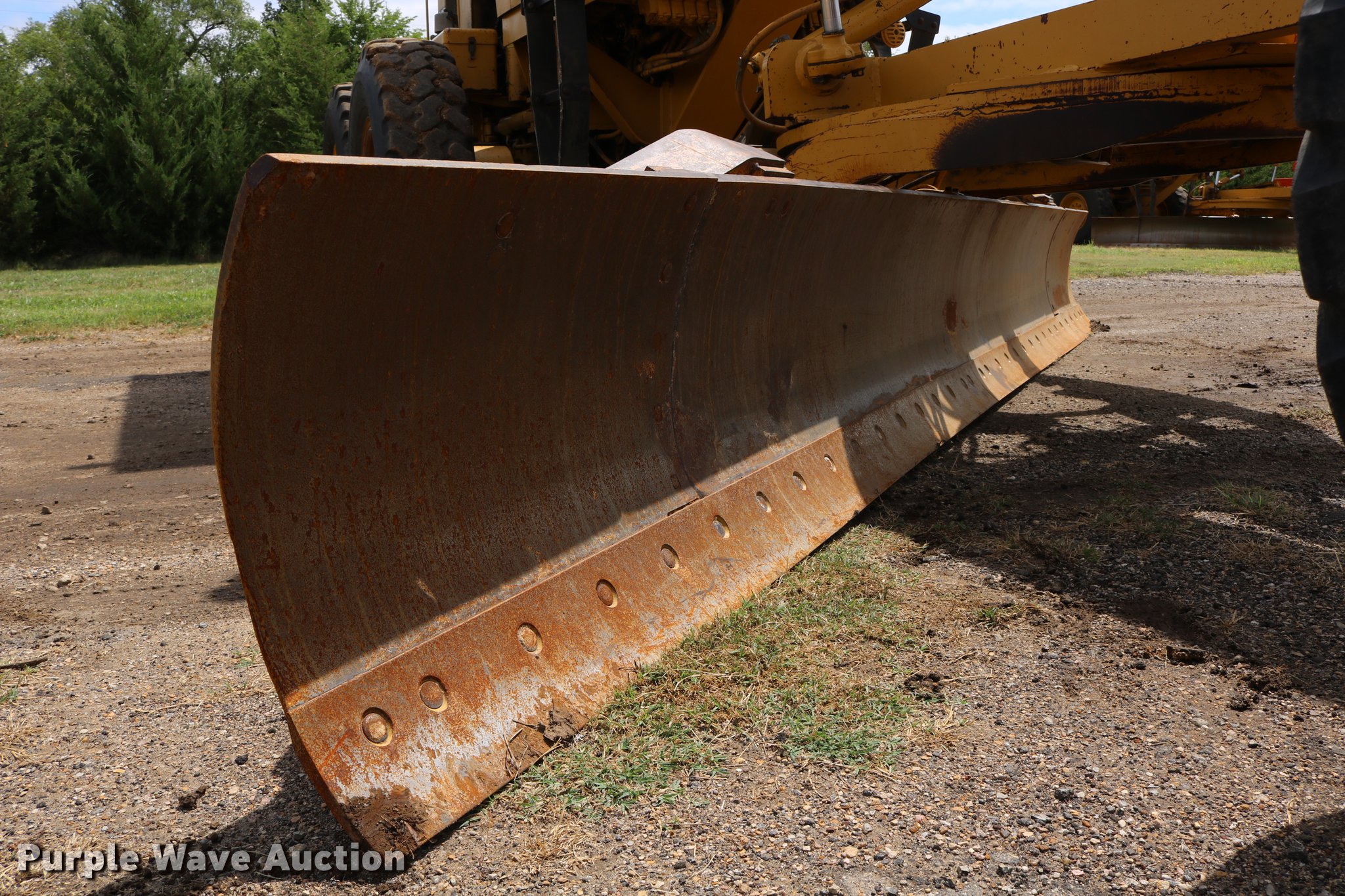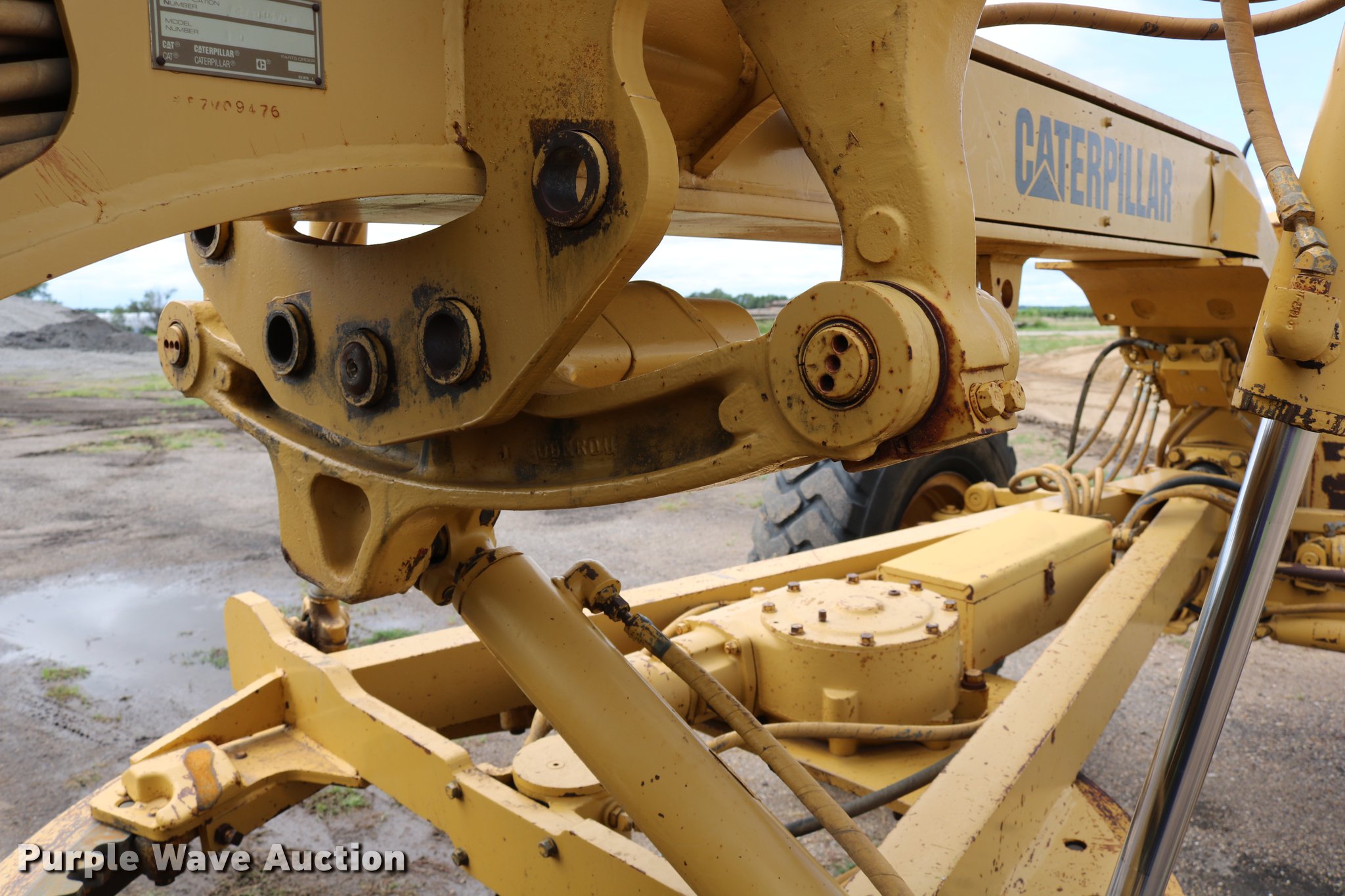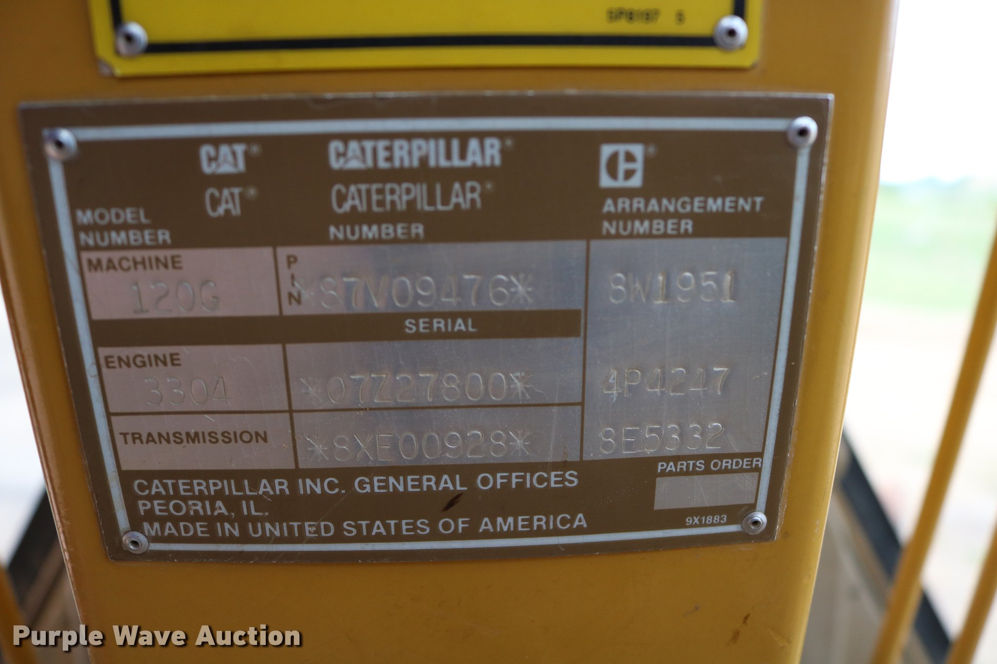 Purple Wave is selling a used Motor Grader in Kansas. This item is a 1991 Caterpillar 120G motor grader with the following: 18,839 hours on meter, Caterpillar 3304 four cylinder turbo diesel engine, Serial 07Z27800, Powershift transmission, 6F-6R gears, Differential lock, EROPS, AC and heat, Suspension seat, Front and rear work lights, Nine hydraulic control valves, 16'W moldboard, Left and right blade extensions, Tip control, Side shift, Balderson front mounted lift group, 14.00R24 tires, Parts, service, and maintenance manuals, Serial 87V09476, Unit# 303
