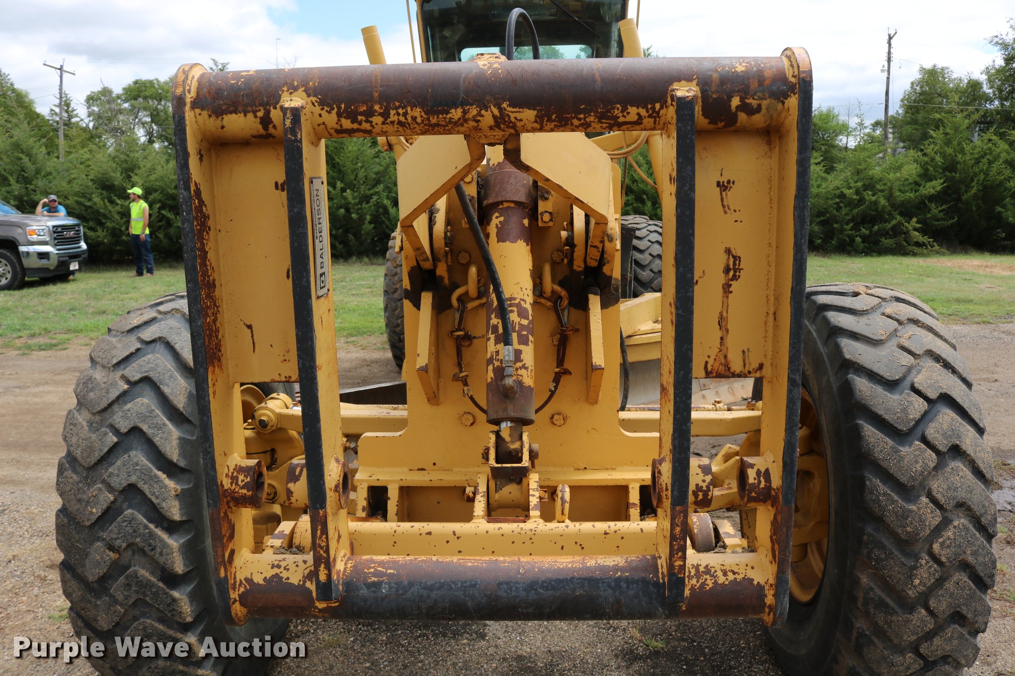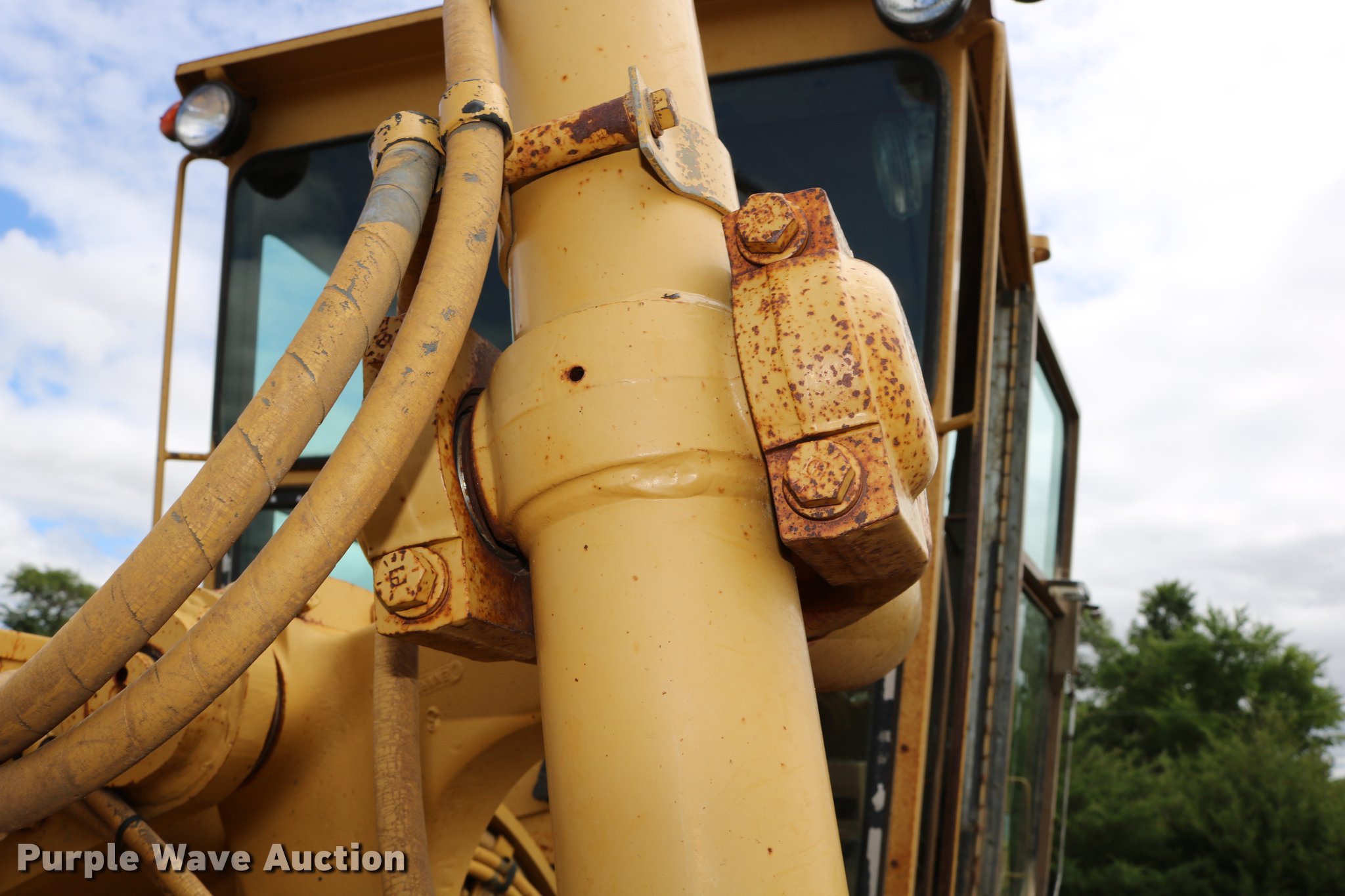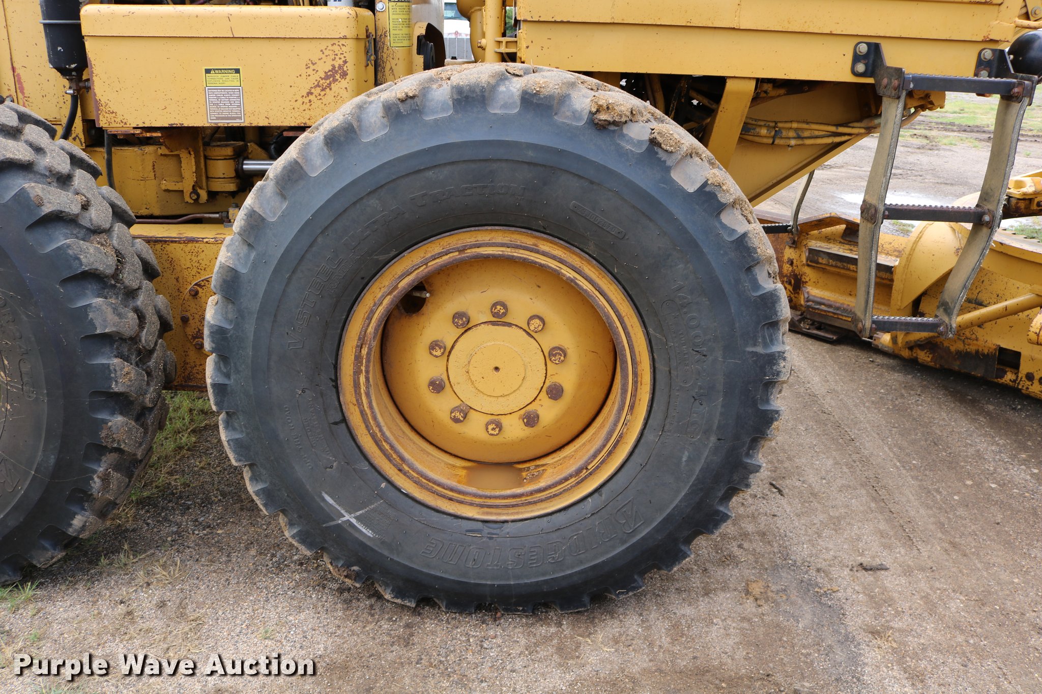 Purple Wave is selling a used Motor Grader in Kansas. This item is a 1991 Caterpillar 120G motor grader with the following: 18,839 hours on meter, Caterpillar 3304 four cylinder turbo diesel engine, Serial 07Z27800, Powershift transmission, 6F-6R gears, Differential lock, EROPS, AC and heat, Suspension seat, Front and rear work lights, Nine hydraulic control valves, 16'W moldboard, Left and right blade extensions, Tip control, Side shift, Balderson front mounted lift group, 14.00R24 tires, Parts, service, and maintenance manuals, Serial 87V09476, Unit# 303
