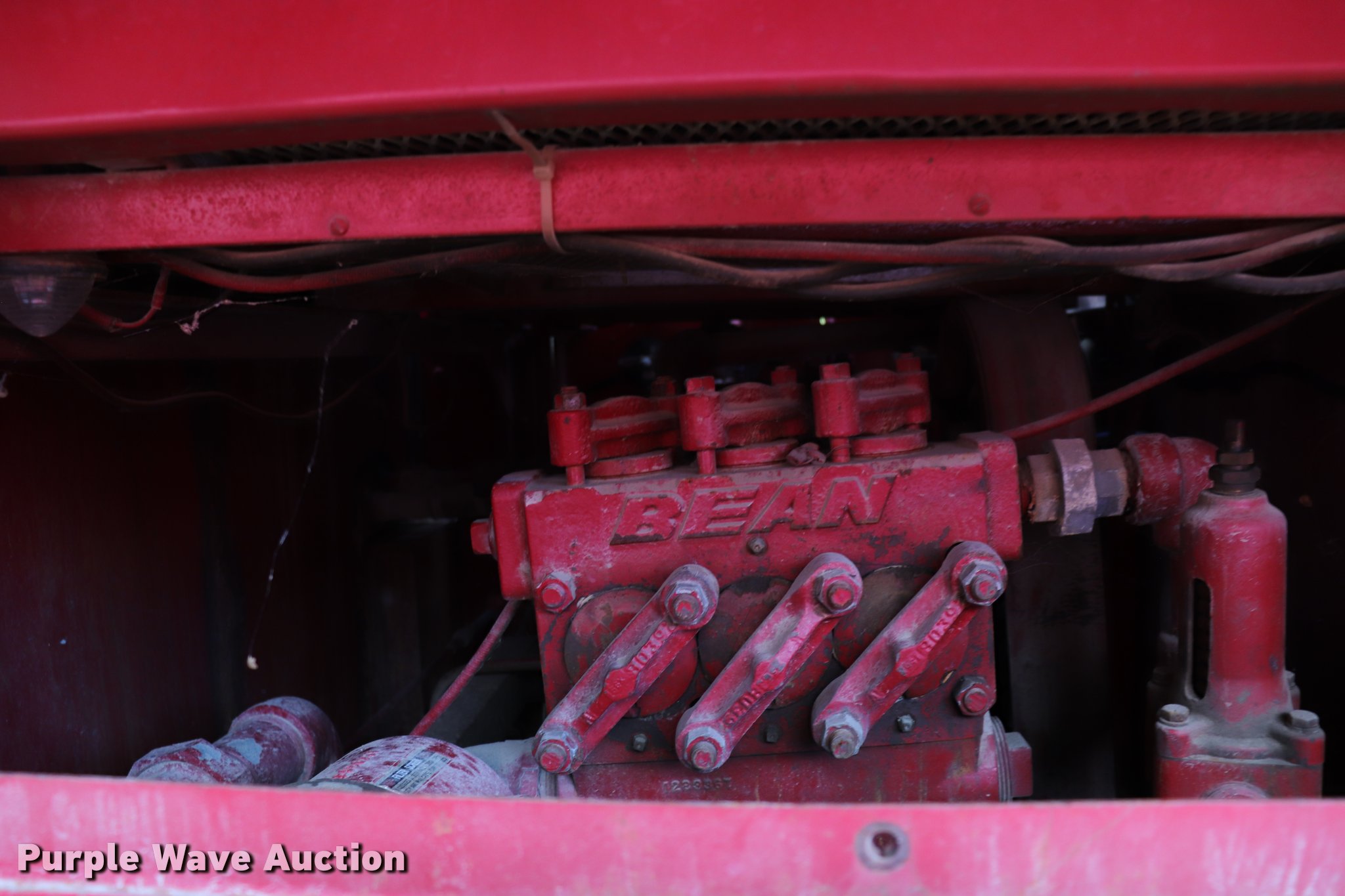 1974 Chevrolet C65 fire truck. 23,322 miles on odometer, 366 C.I.D. eight cylinder gas engine, Five speed manual transmission, Single axle, AC and heat, Suspension seat, Rear work lights, (3) spotlights, Light bars, PTO, Bean platform Model 9083, Serial 75A9H75C3610, 750 gpm pump, 750 gallon tank, Left, right, and rear storage compartments, 9.00-20 front tires, GVWR 25,500 lbs, 10.00-20 rear tires, Unknown operating condition, Unit 64. Kansas title. Title distribution may be delayed up to 14 days from verification of funds. CCE664V154814. Rural Fire District No. 3. 1812 158th St. Fort Scott, KS 66701