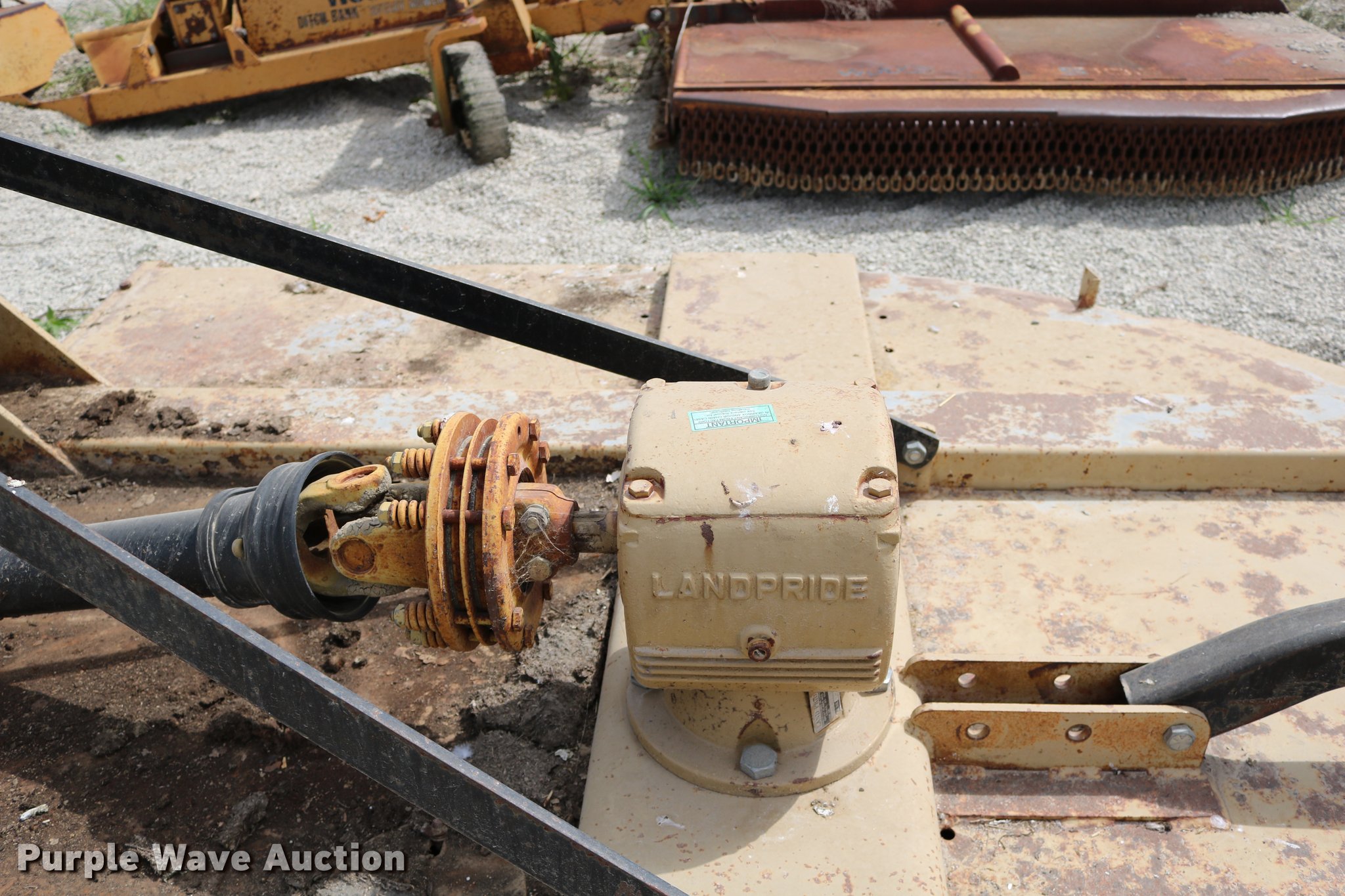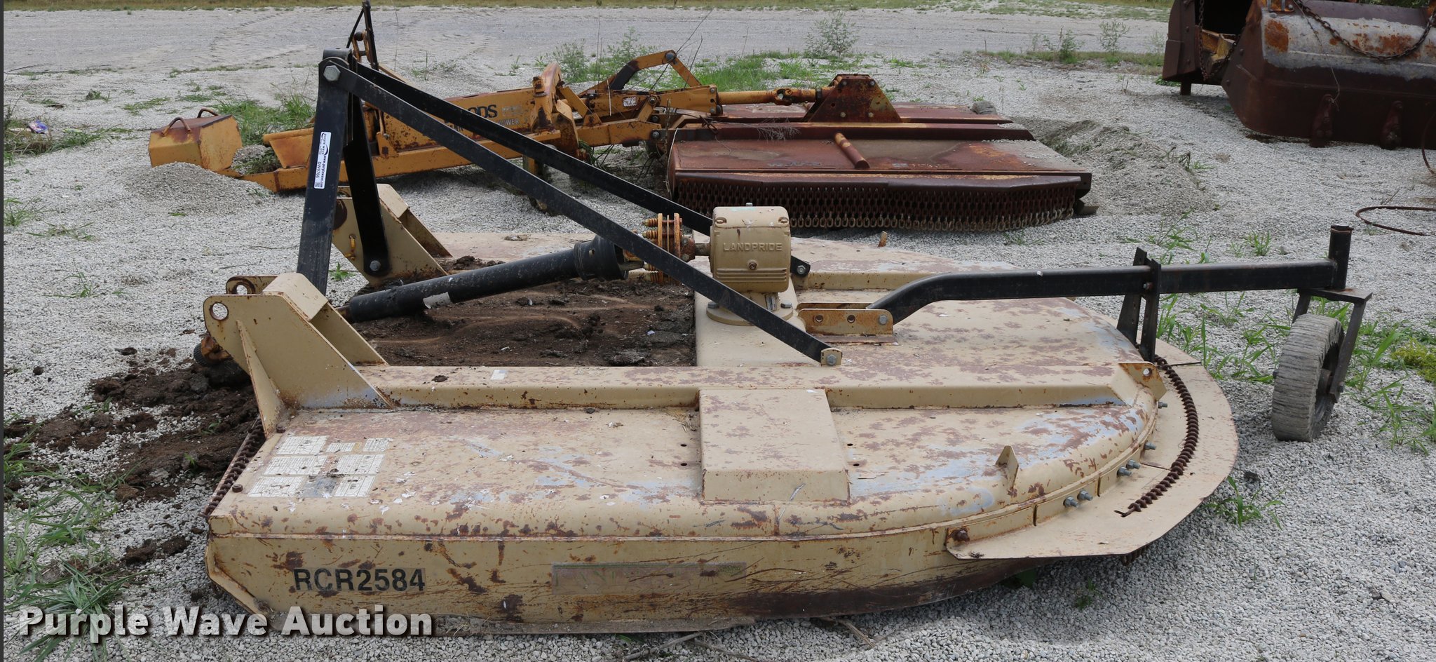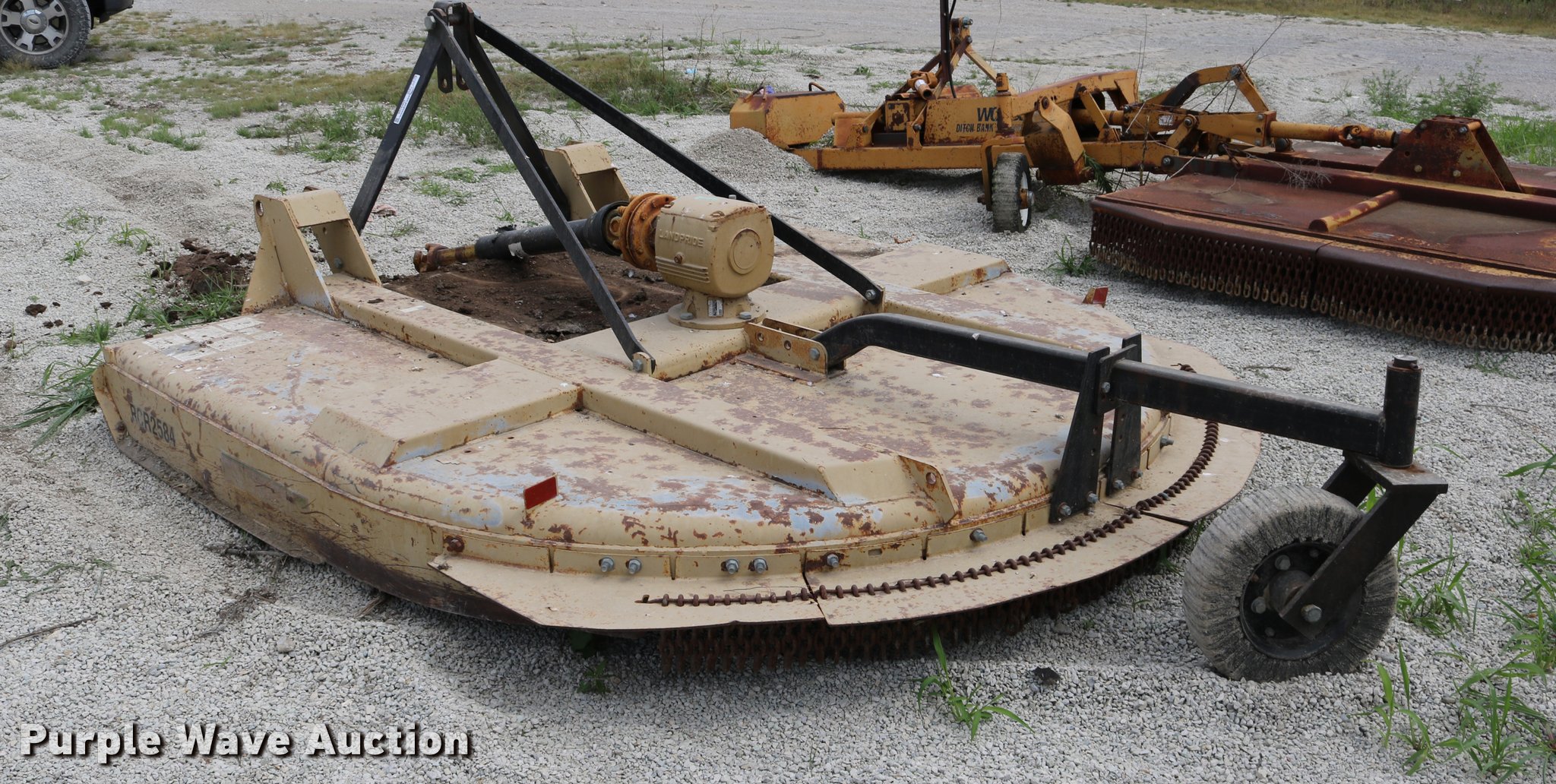 Purple Wave is selling a used Mower, Cutter, Shredder in Kansas. This item is a 1999 Land Pride rotary mower with the following: 7'W, 540 PTO, Three point, 14" gauge wheel, Serial 214749