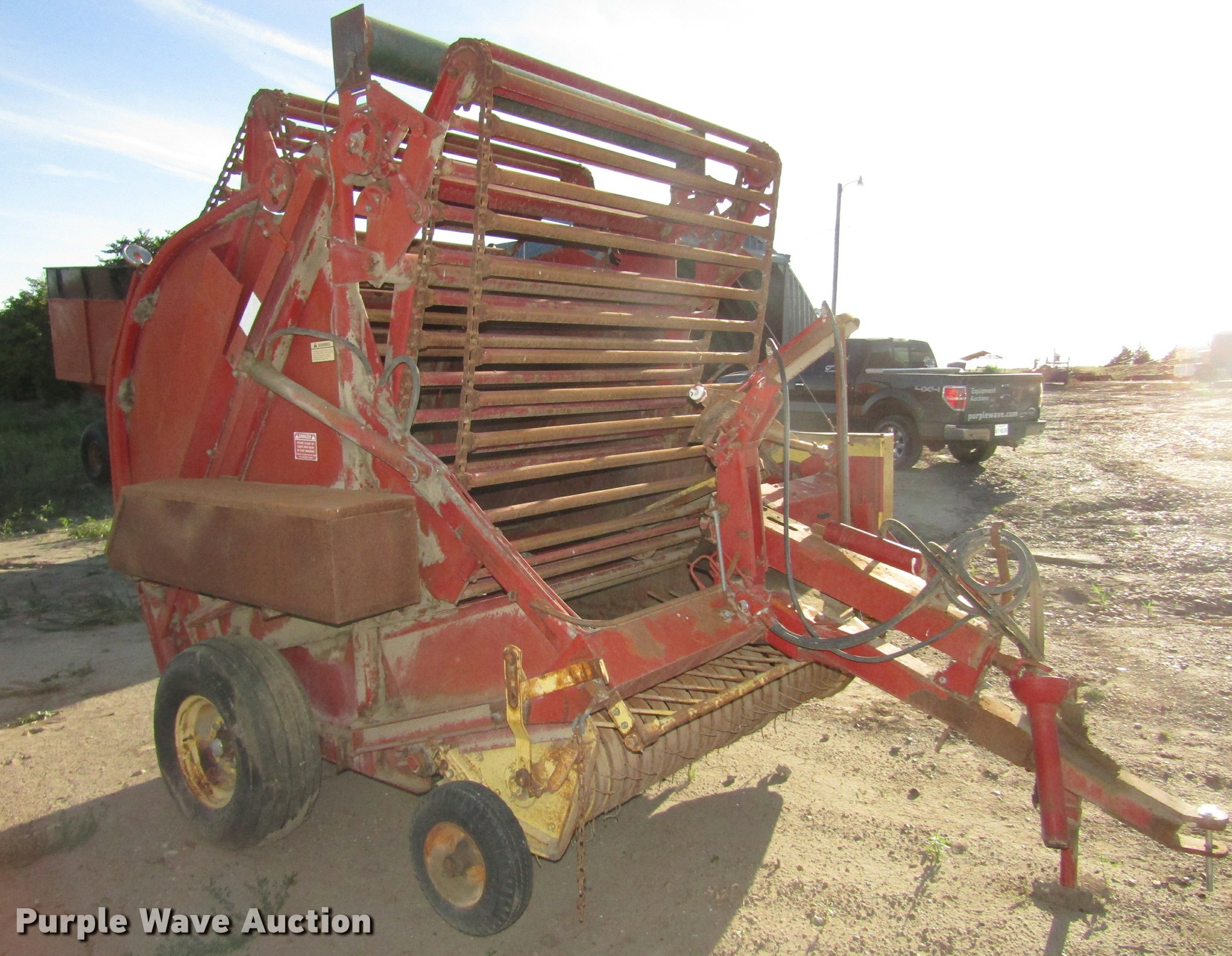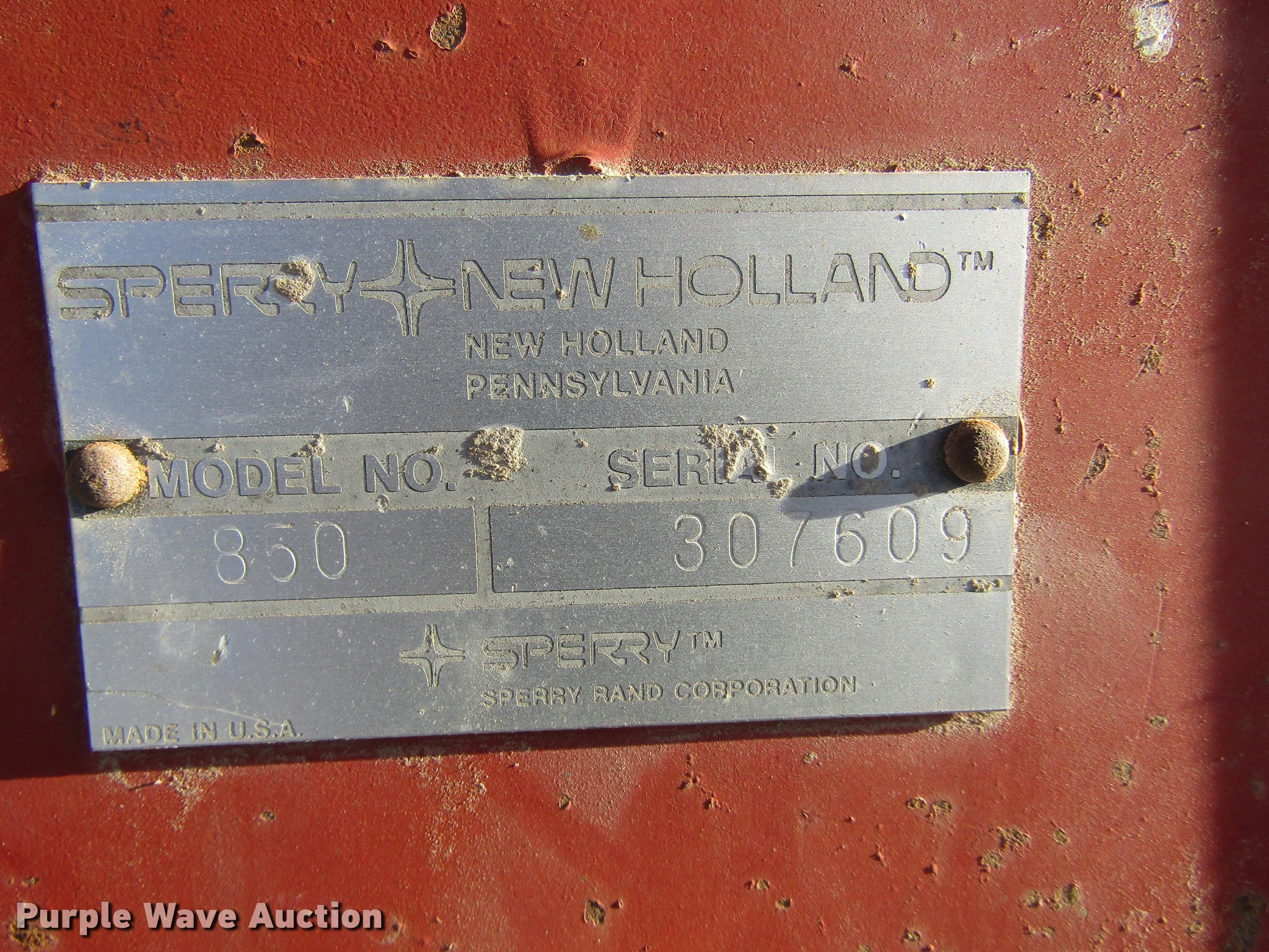Purple Wave is selling a used Round Baler in Nebraska. This item is a New Holland 850 round baler with the following: 5' x 5' bale capacity, 72"W pickup, 4.80-8 gauge wheels, Twine tie, Individual tighteners, 540 PTO, Pin hitch, 11L-14 tires, Serial 307609
