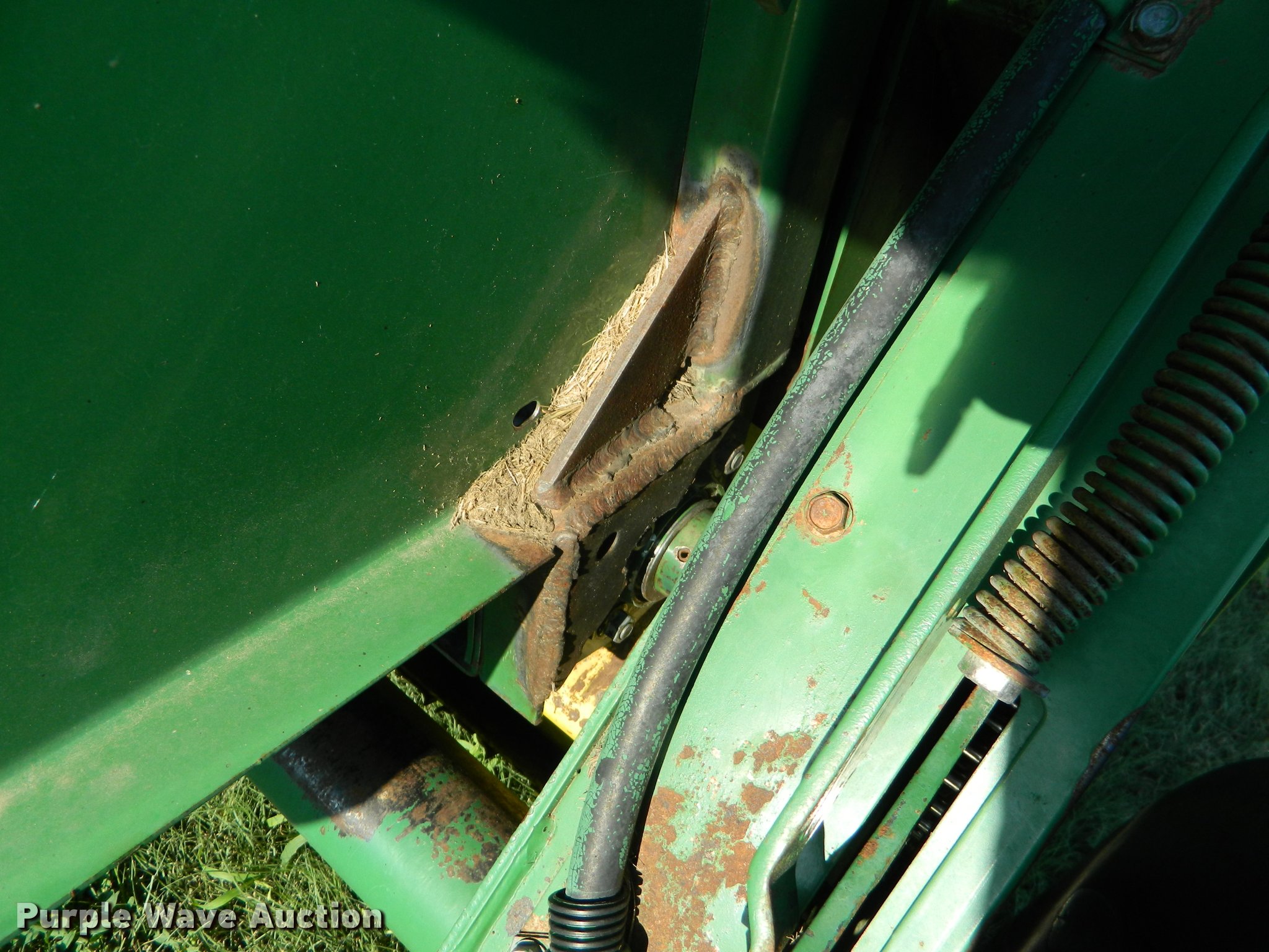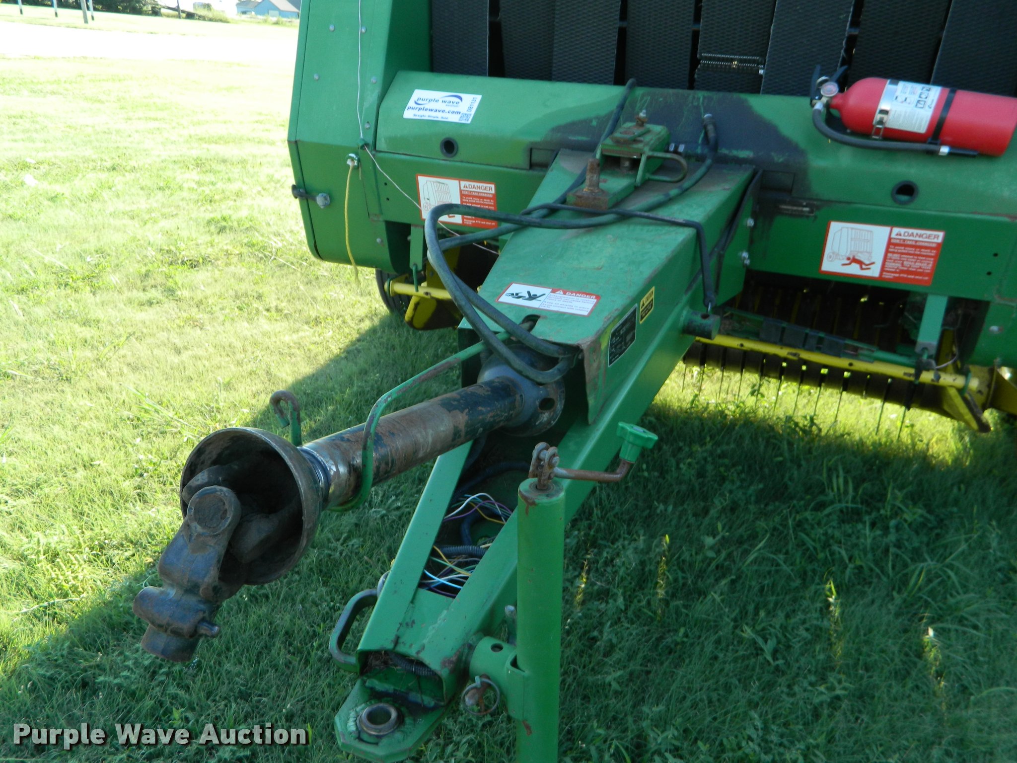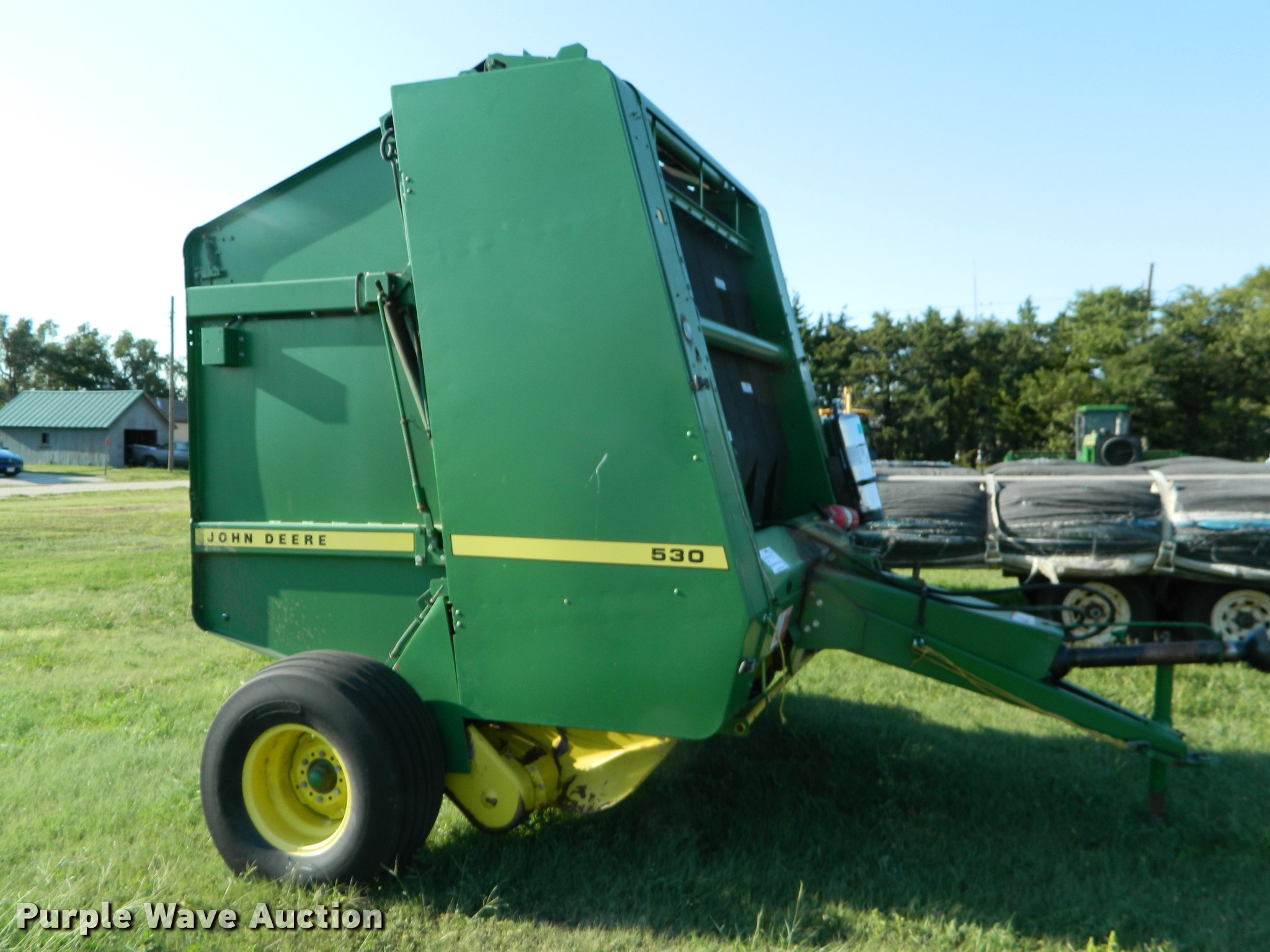Purple Wave is selling a used Round Baler in Kansas. This item is a 1988 John Deere 530 round baler with the following: 5' x 6' bale capacity, 68"W pickup, Hydraulic pickup lift, Gauge wheels, Auto-tie, Twine tie, 540 PTO, Pin hitch, 31x12.50-15 tires, Serial E00530X772292
