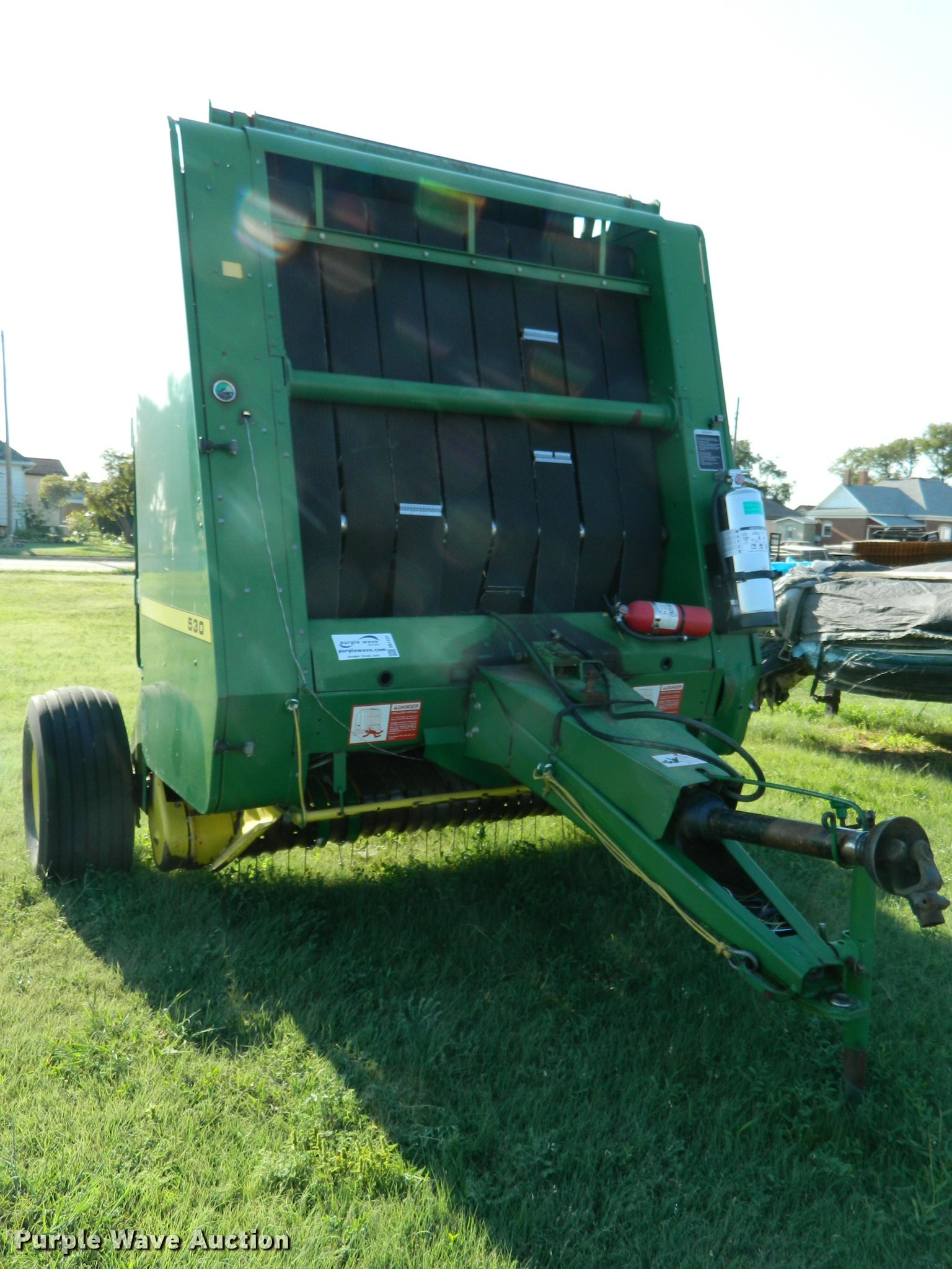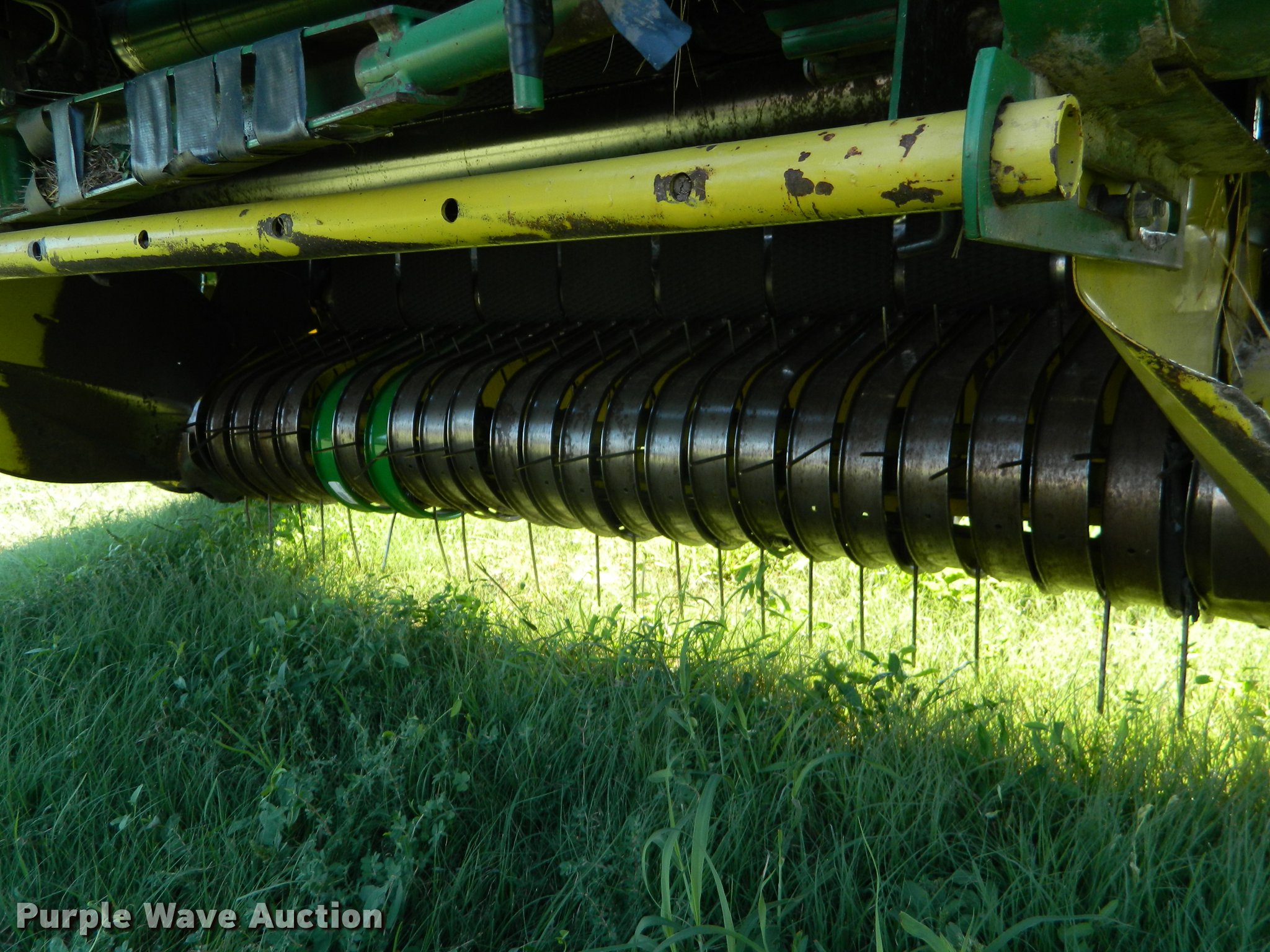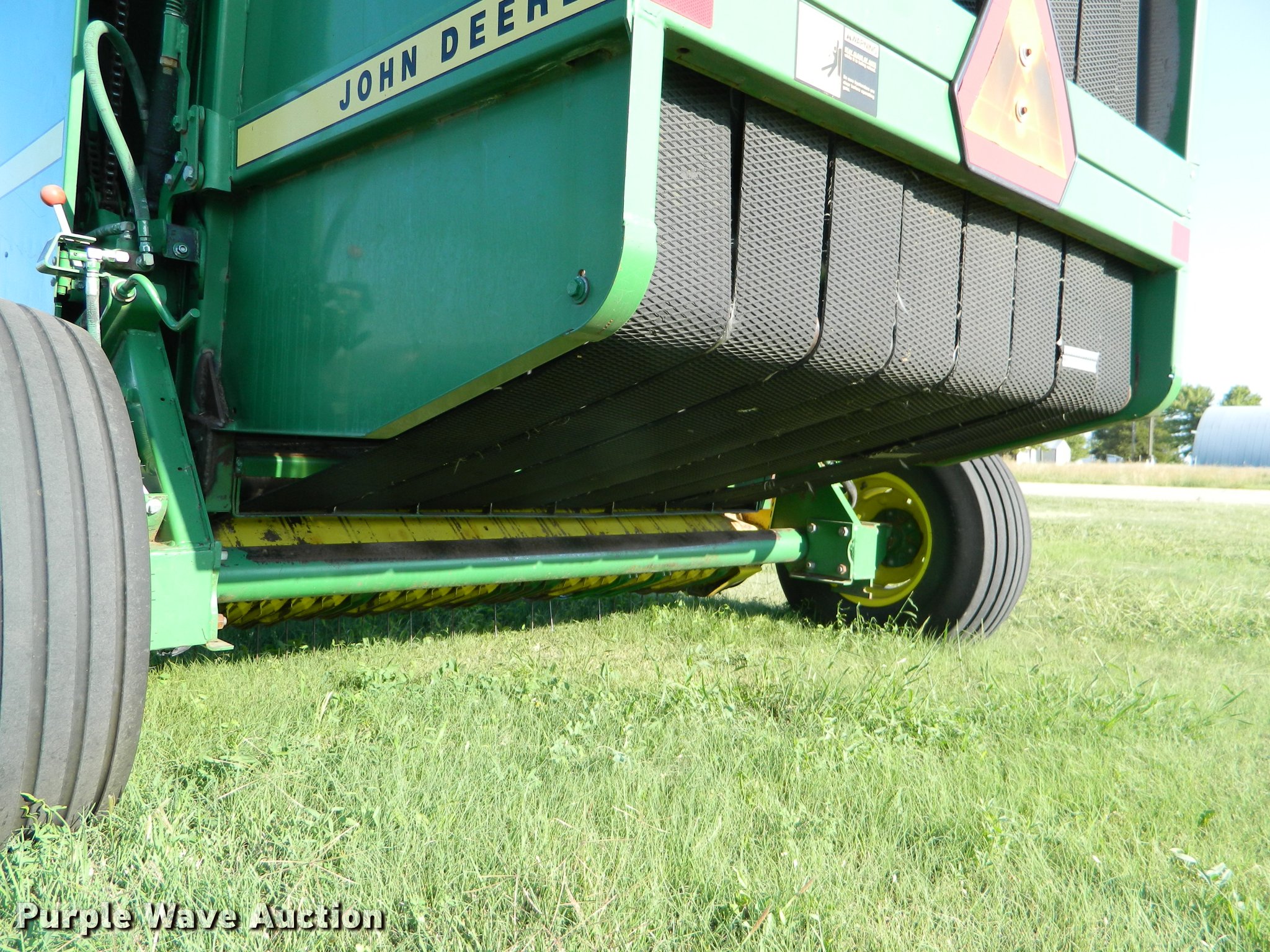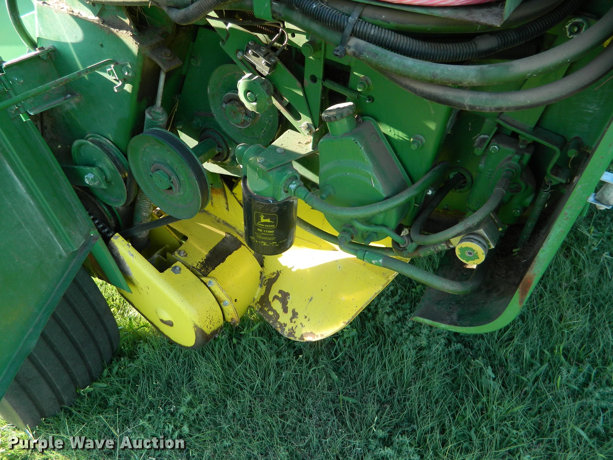 Purple Wave is selling a used Round Baler in Kansas. This item is a 1988 John Deere 530 round baler with the following: 5' x 6' bale capacity, 68"W pickup, Hydraulic pickup lift, Gauge wheels, Auto-tie, Twine tie, 540 PTO, Pin hitch, 31x12.50-15 tires, Serial E00530X772292