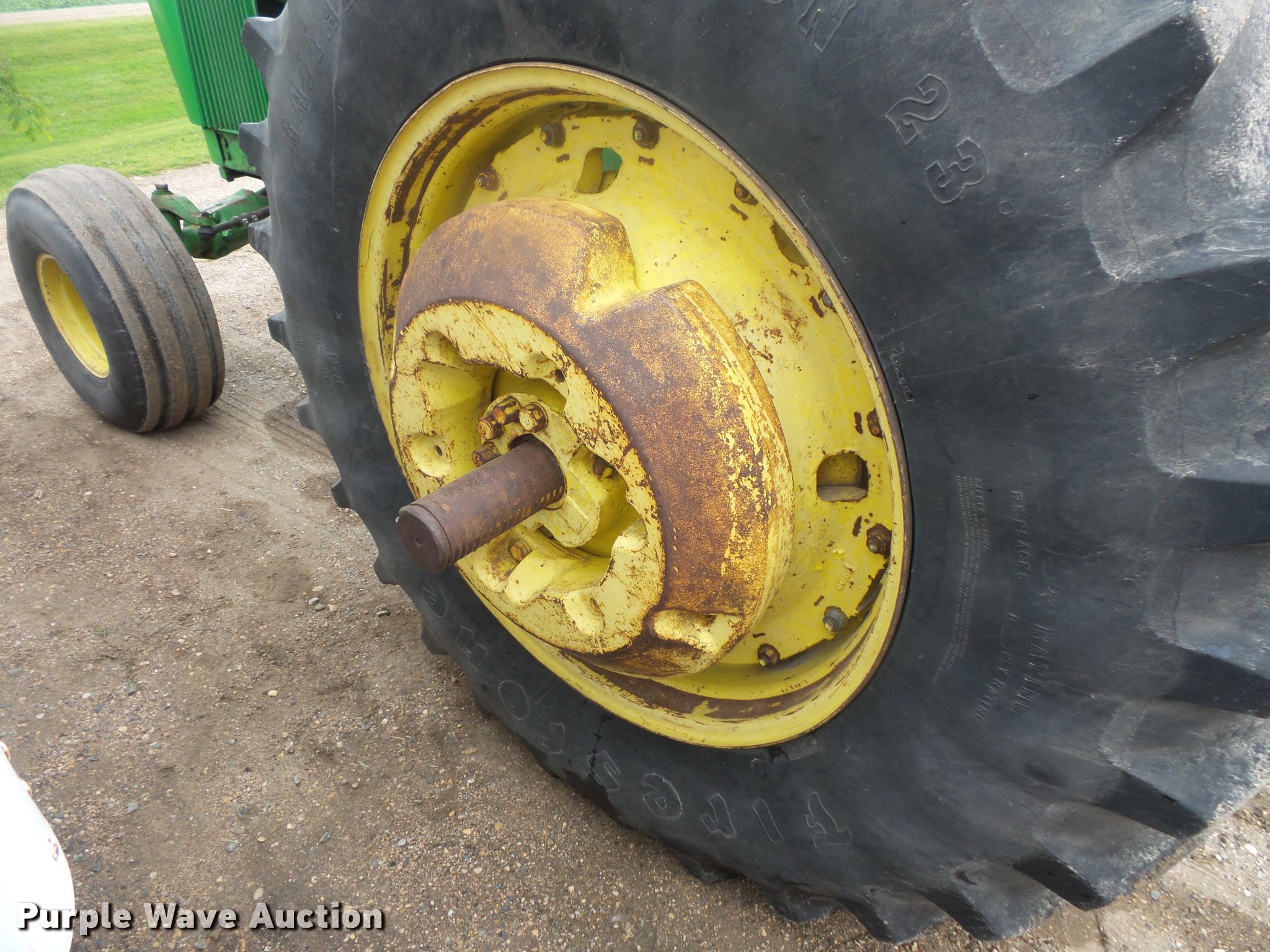 Purple Wave is selling a used Tractor in Minnesota. This item is a 1974 John Deere 6030 tractor with the following: 6,695 hours on meter, John Deere six cylinder turbo diesel engine, Synchro transmission, 8F-2R gears, AC and heat, AM, Suspension seat, Three point, 1000 PTO, Front hydraulic remotes, Wheel weights, 14L-16 front tires, 20.8R38 rear tires, Serial B313R034608R
