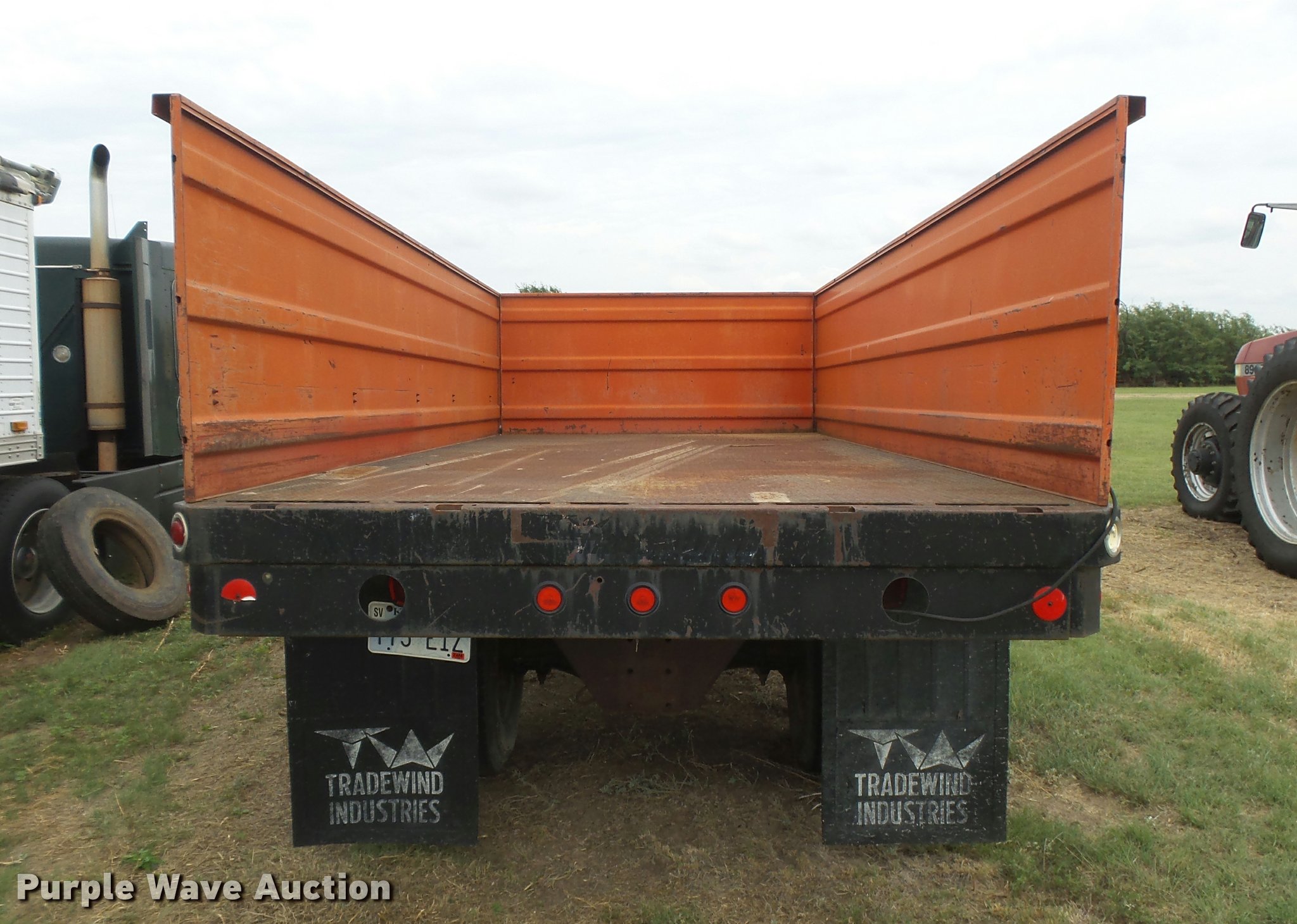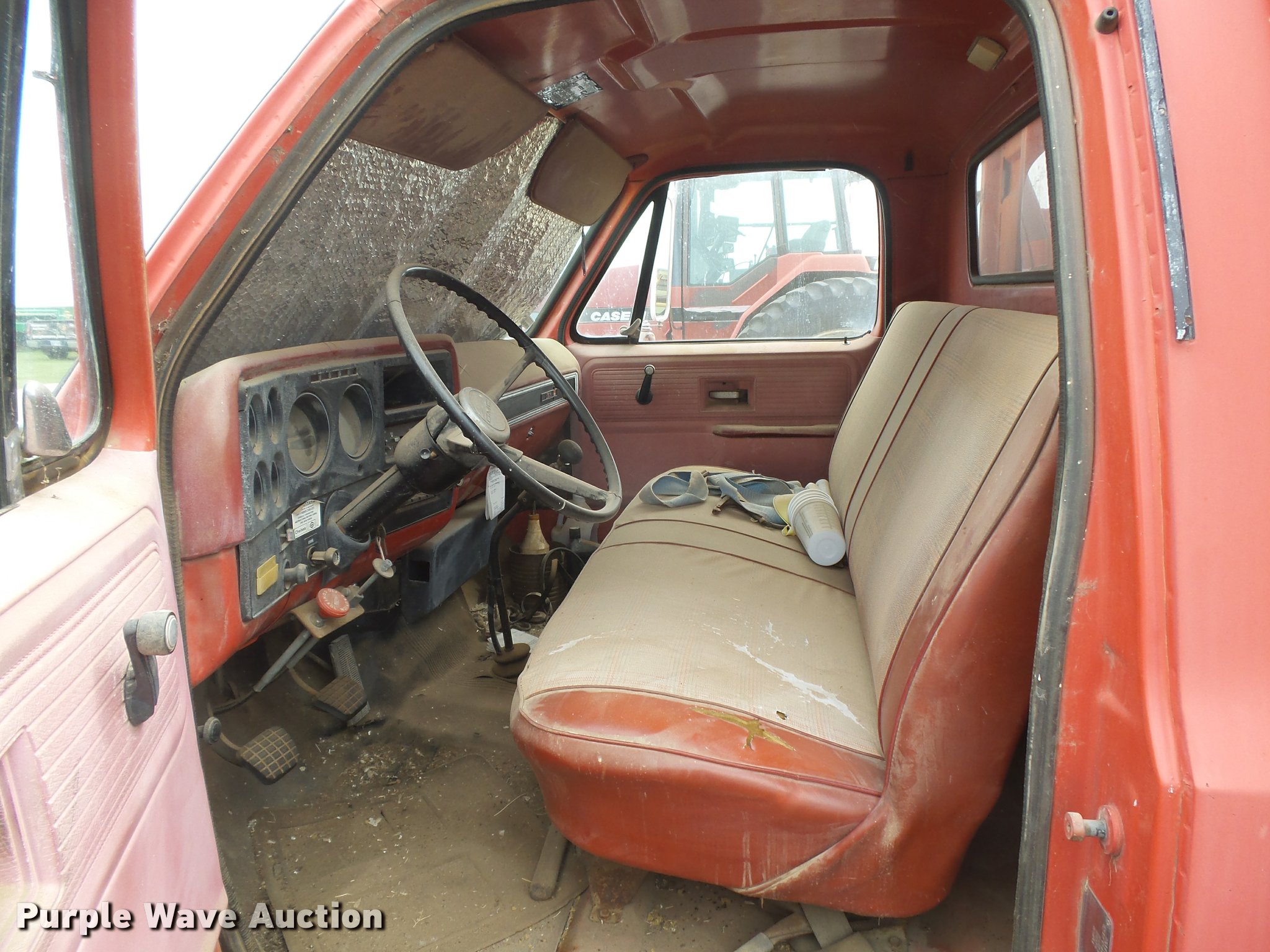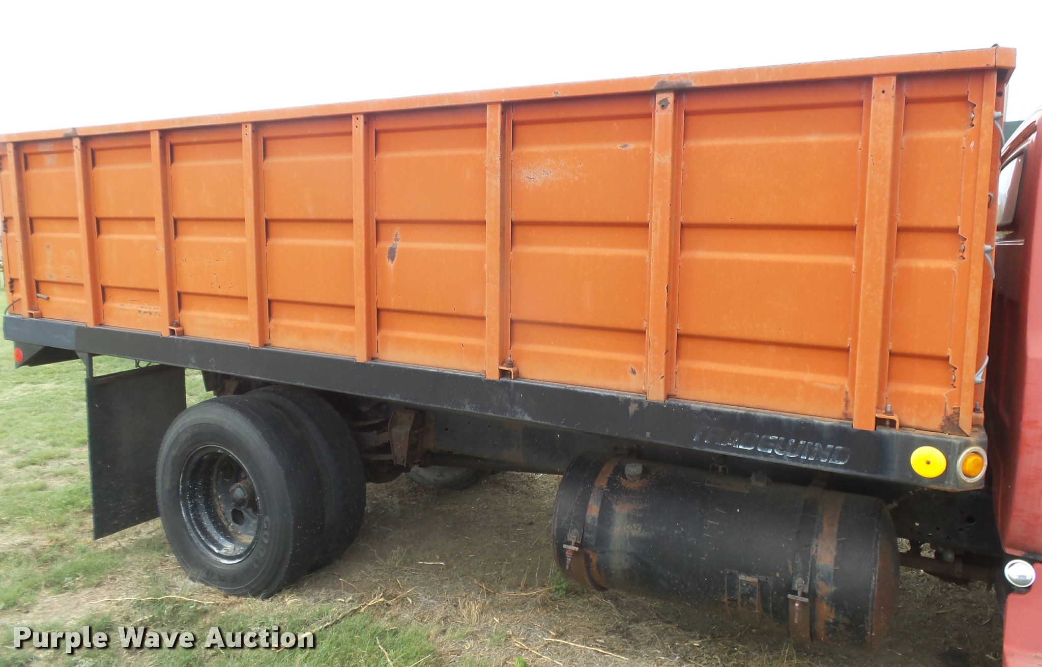 Purple Wave is selling a used Grain Truck in Kansas. This item is a 1978 GMC Sierra 6000 grain truck with the following: 23,570 miles on odometer, Eight cylinder gas engine, Four speed manual transmission, Two speed rear end, Single axle, Heat, AM, Suspension seat, PTO, Tradewind steel grain bed, 16'L x 94"W, 40" side height, Dual ram hoist, Dual fuel tanks, Spring suspension, Hydraulic brakes, 9.00R20 tires, Front left tire will be replaced prior to auction
