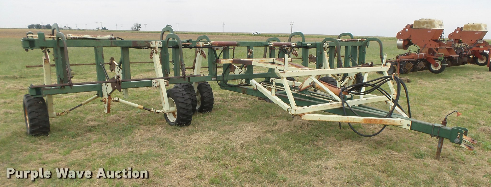 Purple Wave is selling a used Tillage Other in Kansas. This item is a Flex King RD40 rod weeder with the following: 40'W, Hydraulic lift and fold, Ground drive, Bare bar, Shear pin drives, Pin hitch, 9.5L-15 tires, Serial 3991