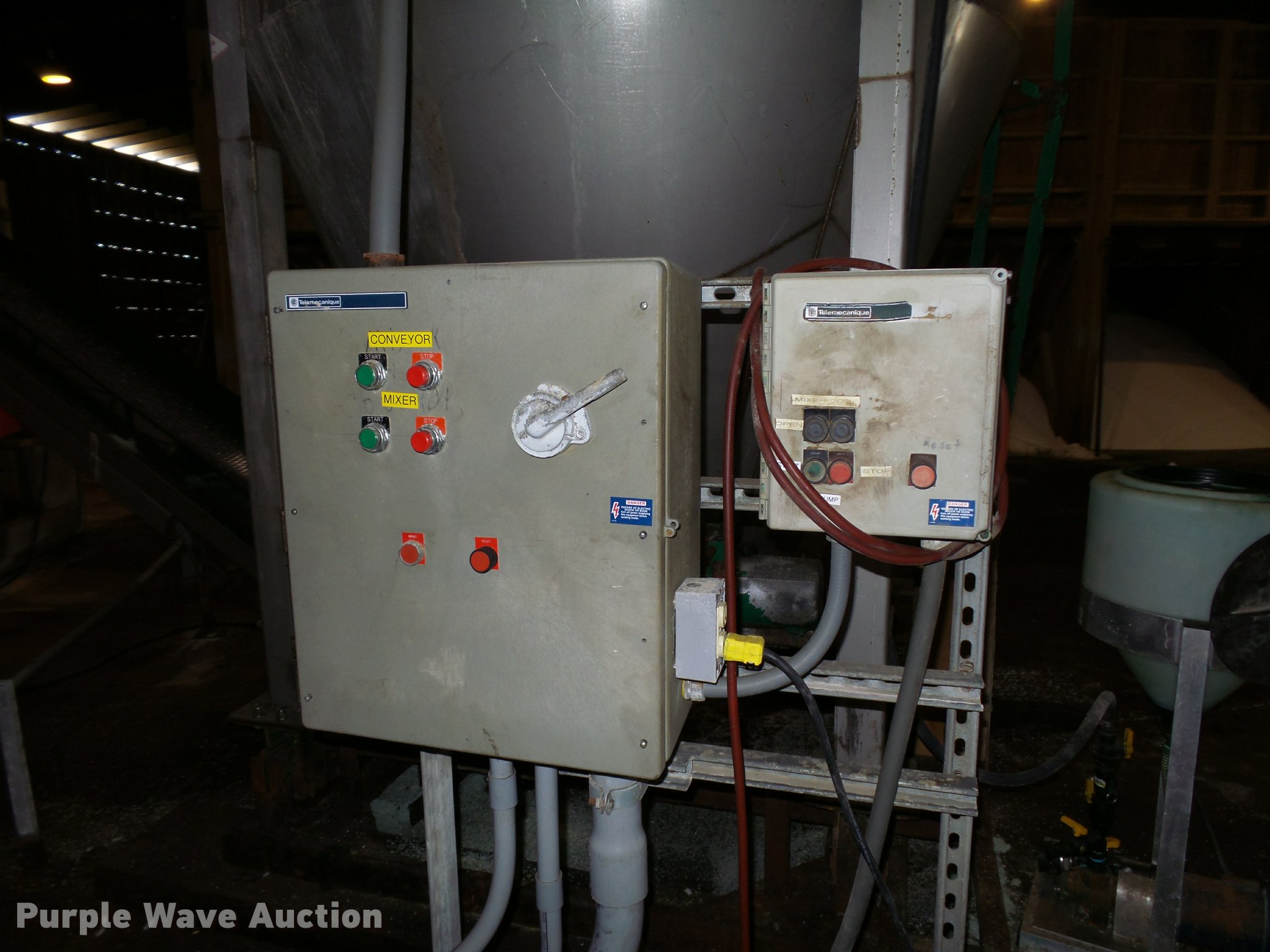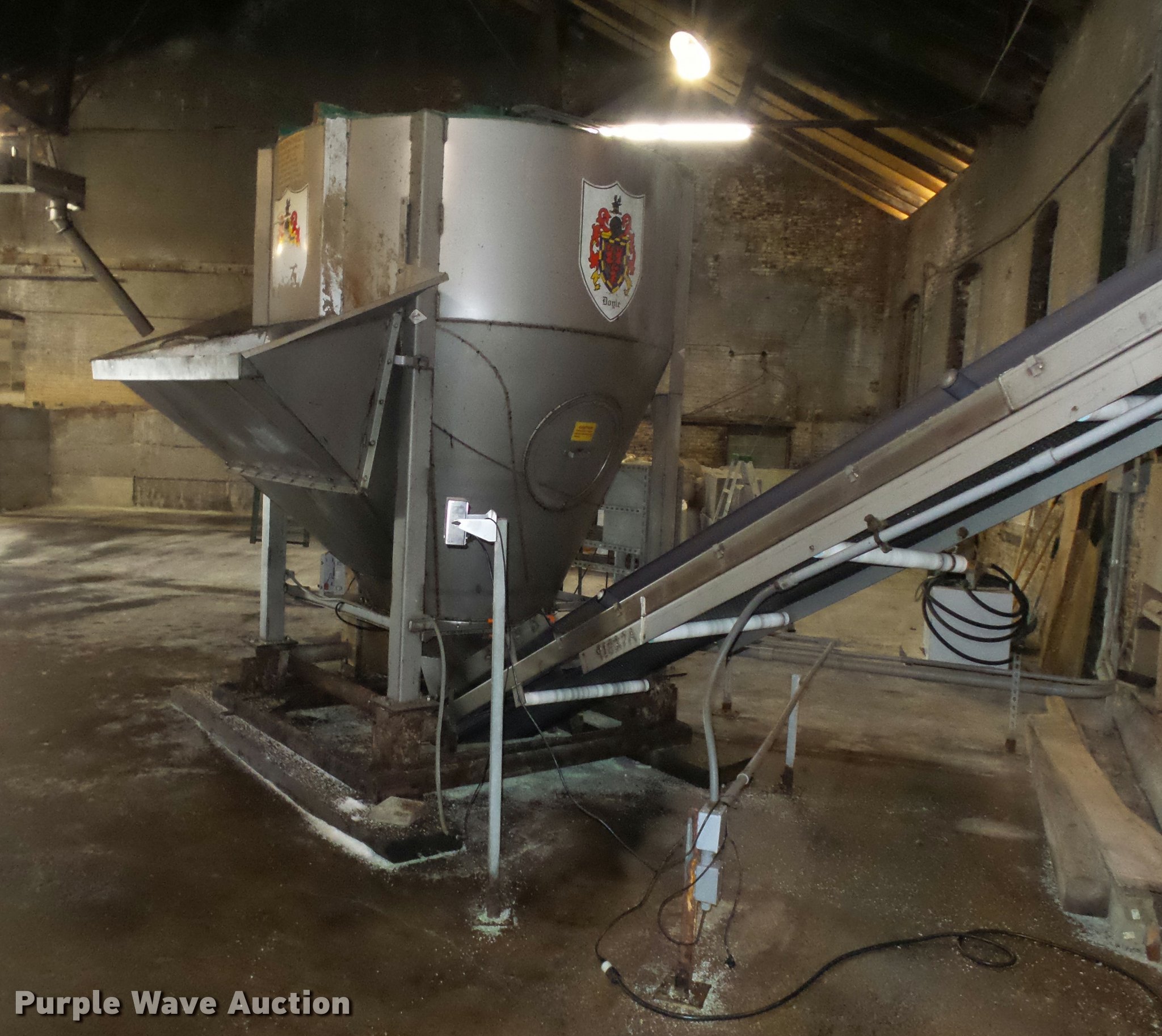 Purple Wave is selling a used Other Grain or Fertilizer Handling in Nebraska. This item is a Doyle vertical fertilizer mixer with the following: Six ton capacity, Hydraulic bottom discharge, Leeson 50 HP electric motor, 1,740 RPM, 30' x 24"W conveyor, 80" x 28" intake hopper, 17 gallon cone inductor impregnator, Leeson variable speed controller, Leeson 1.5 HP electric motor, Rice Lake IQ Plus 355 weight system, Additional parts, Screen, Rollers, Pulley cover, Conveyor covers, Unit is still in use