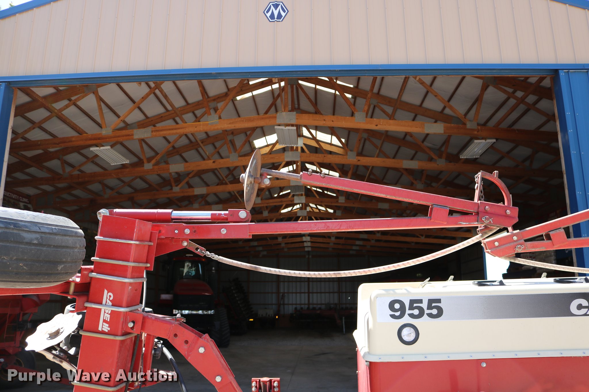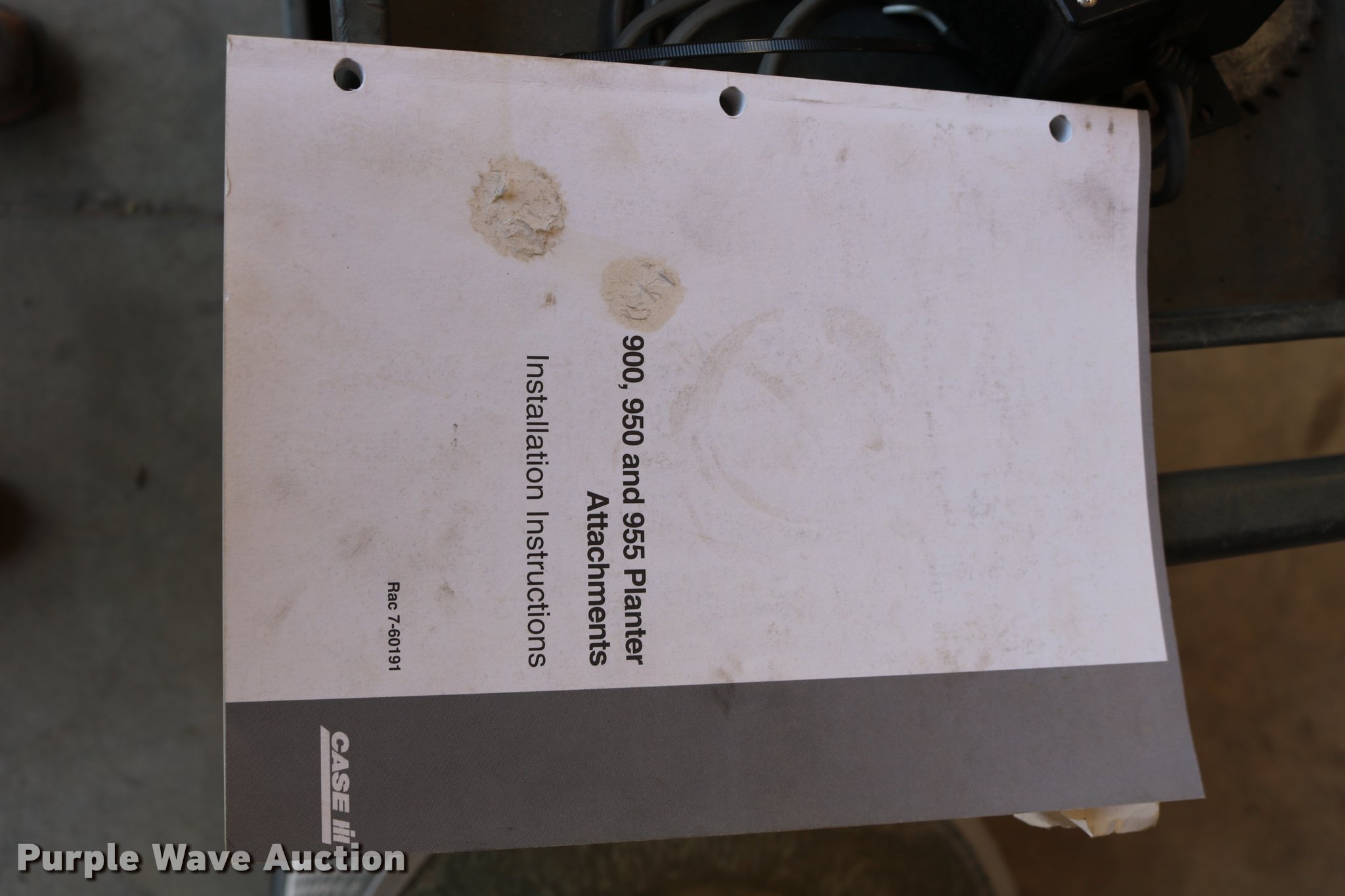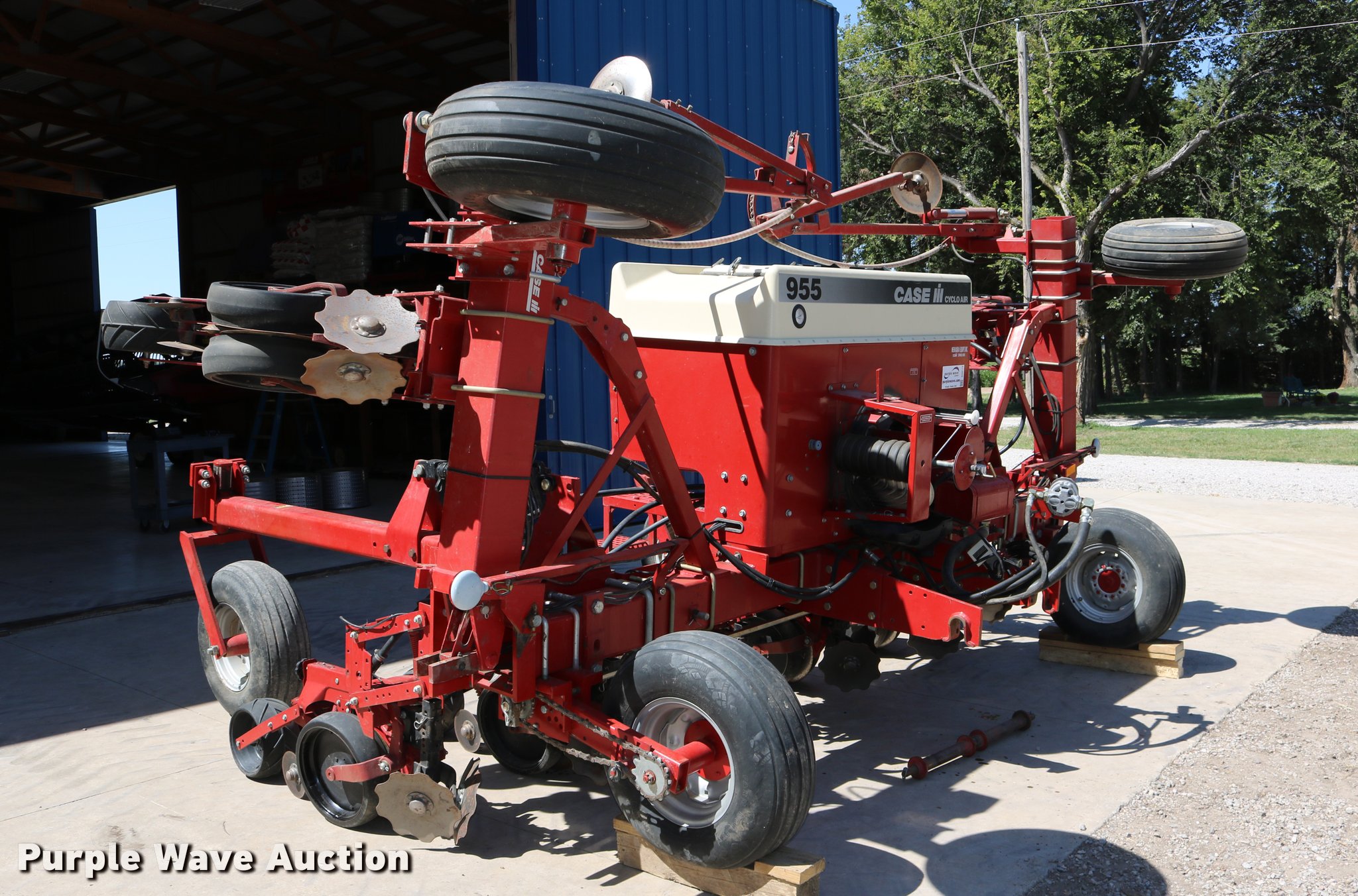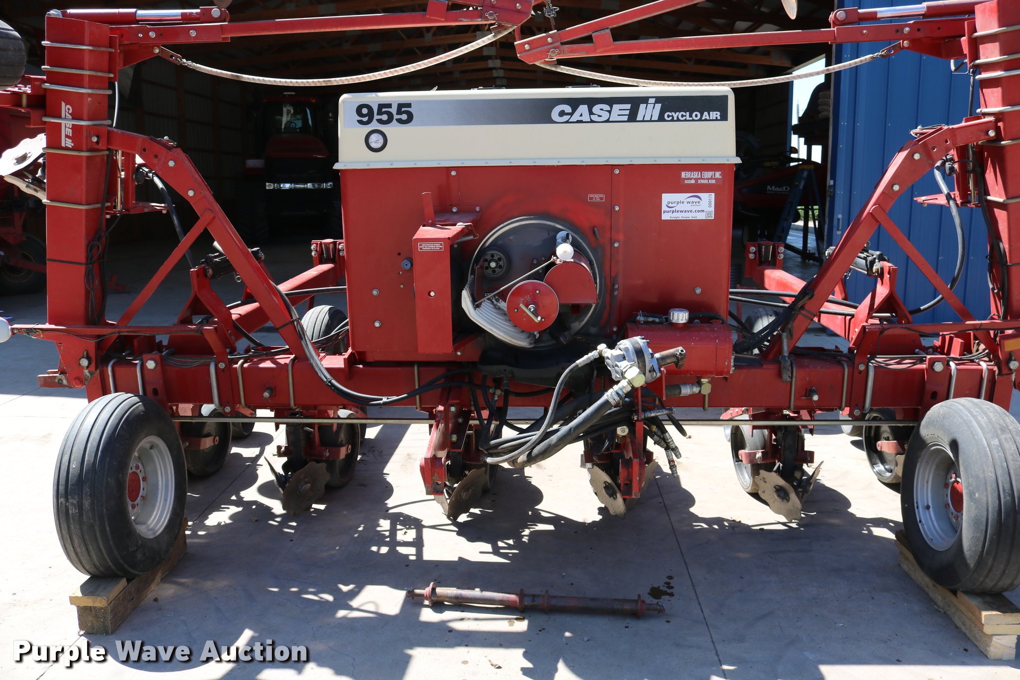 Purple Wave is selling a used Planter in Kansas. This item is a Case IH 955 Cyclo Air no-till planter with the following: Eight row units, 30" row spacing, Marker arms, Hydraulic wing fold, Bulk fill system, 15 bushel capacity, Air delivery, Ground meter drive, Corn, soybean, and milo seed meter, Row clenaers, Double disk openers, Double gauge wheels, Double rubber closing system, Case IH Early Riser monitor, Serial 1164-17842, Two point, (2) 9.5L-14 transport tires, (4) 9.5L-14 drive/oustide tires, Gasket missing on corn drum, Serial JAG1010369