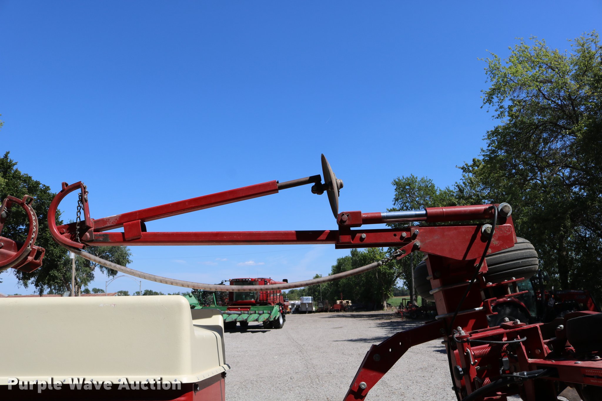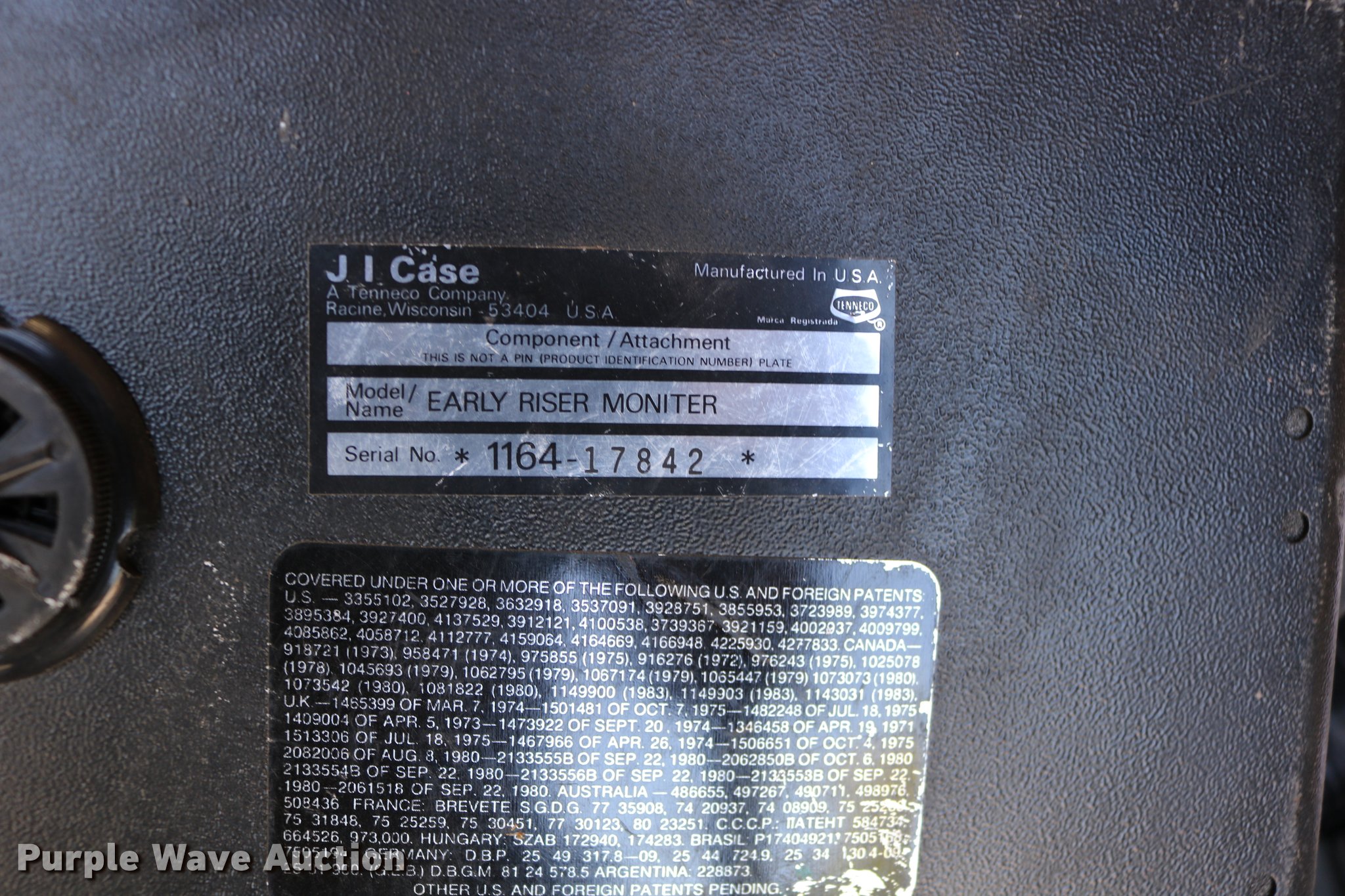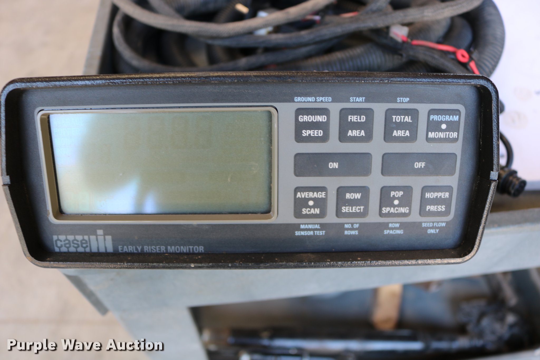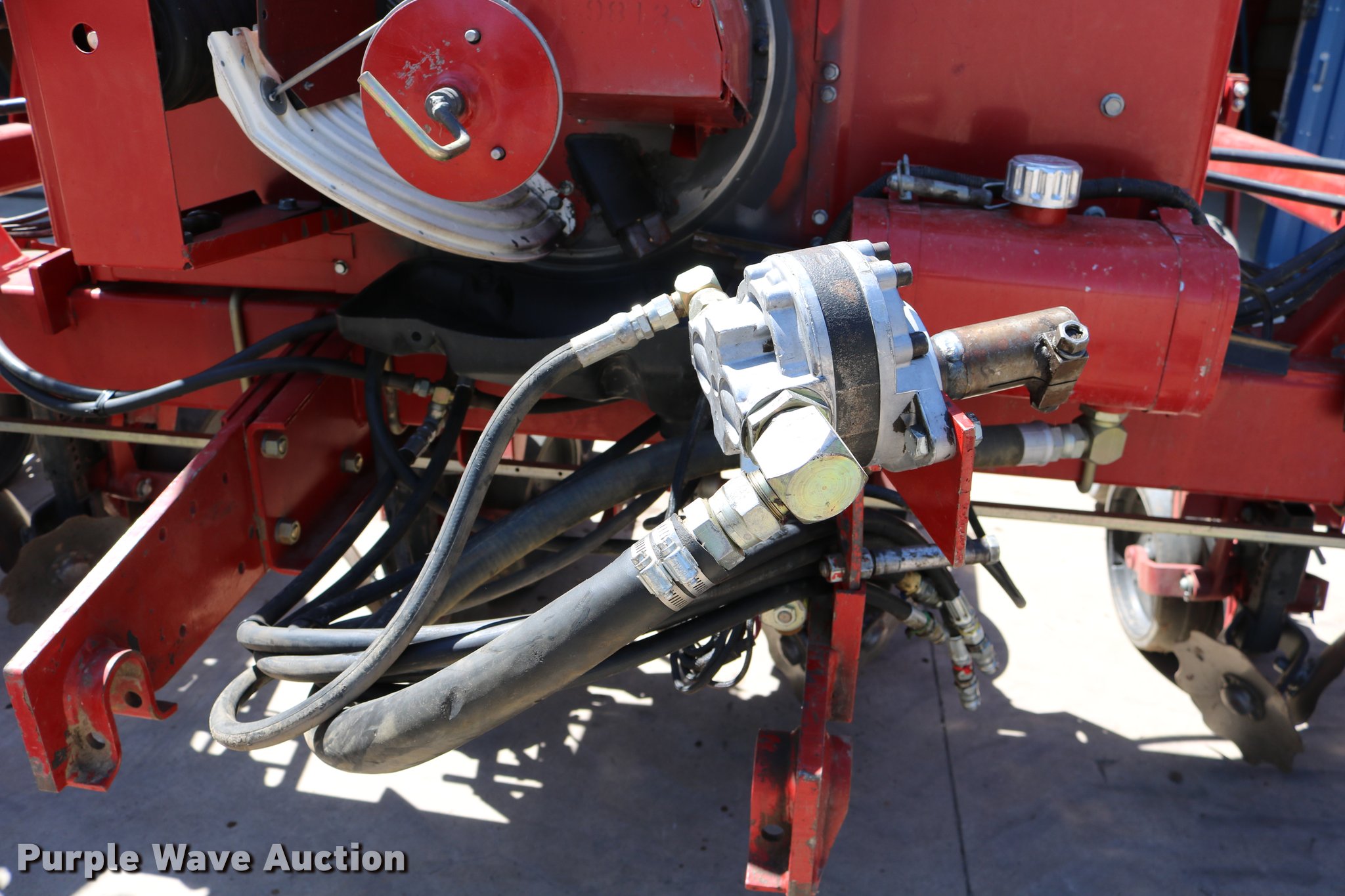 Purple Wave is selling a used Planter in Kansas. This item is a Case IH 955 Cyclo Air no-till planter with the following: Eight row units, 30" row spacing, Marker arms, Hydraulic wing fold, Bulk fill system, 15 bushel capacity, Air delivery, Ground meter drive, Corn, soybean, and milo seed meter, Row clenaers, Double disk openers, Double gauge wheels, Double rubber closing system, Case IH Early Riser monitor, Serial 1164-17842, Two point, (2) 9.5L-14 transport tires, (4) 9.5L-14 drive/oustide tires, Gasket missing on corn drum, Serial JAG1010369