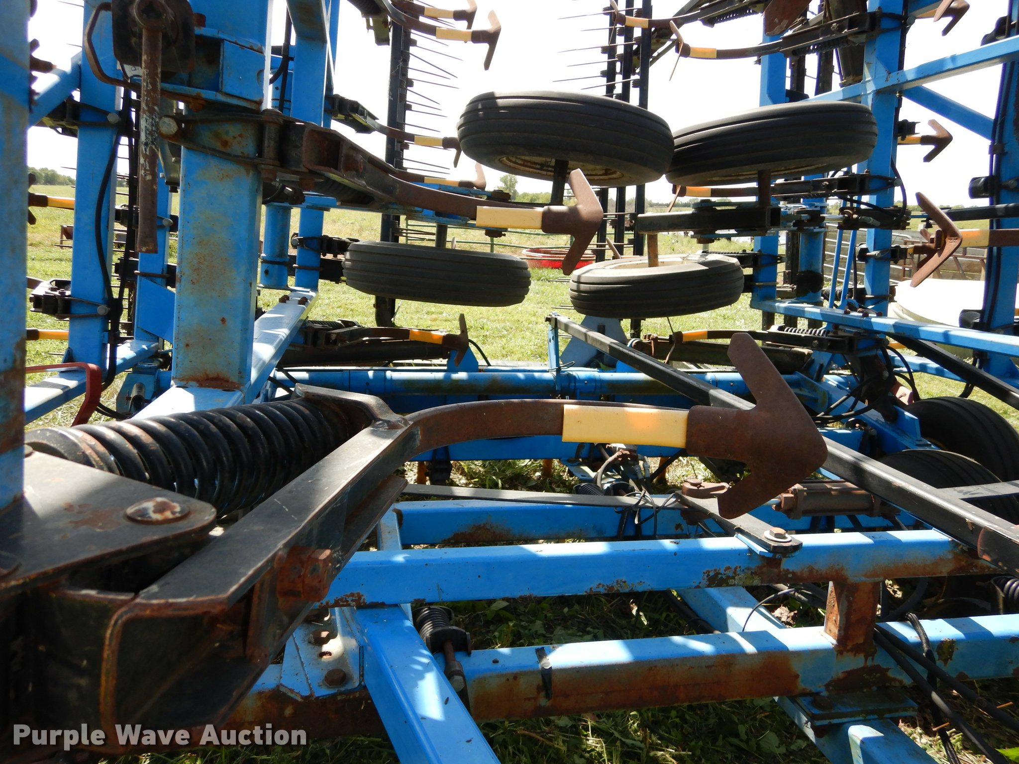 Purple Wave is selling a used Field Cultivator or Sweep Plow in Kansas. This item is a DMI Tigermate TMDF cultivator with the following: 48'W, 10" shovel spacing, Rear tines, Pin hitch, (8) 7.60-15 wing tires, (4) 7.60-15 drive tires, Worn, Springs missing, Wiring harness needs replaced, Shovels worn, Serial 422774