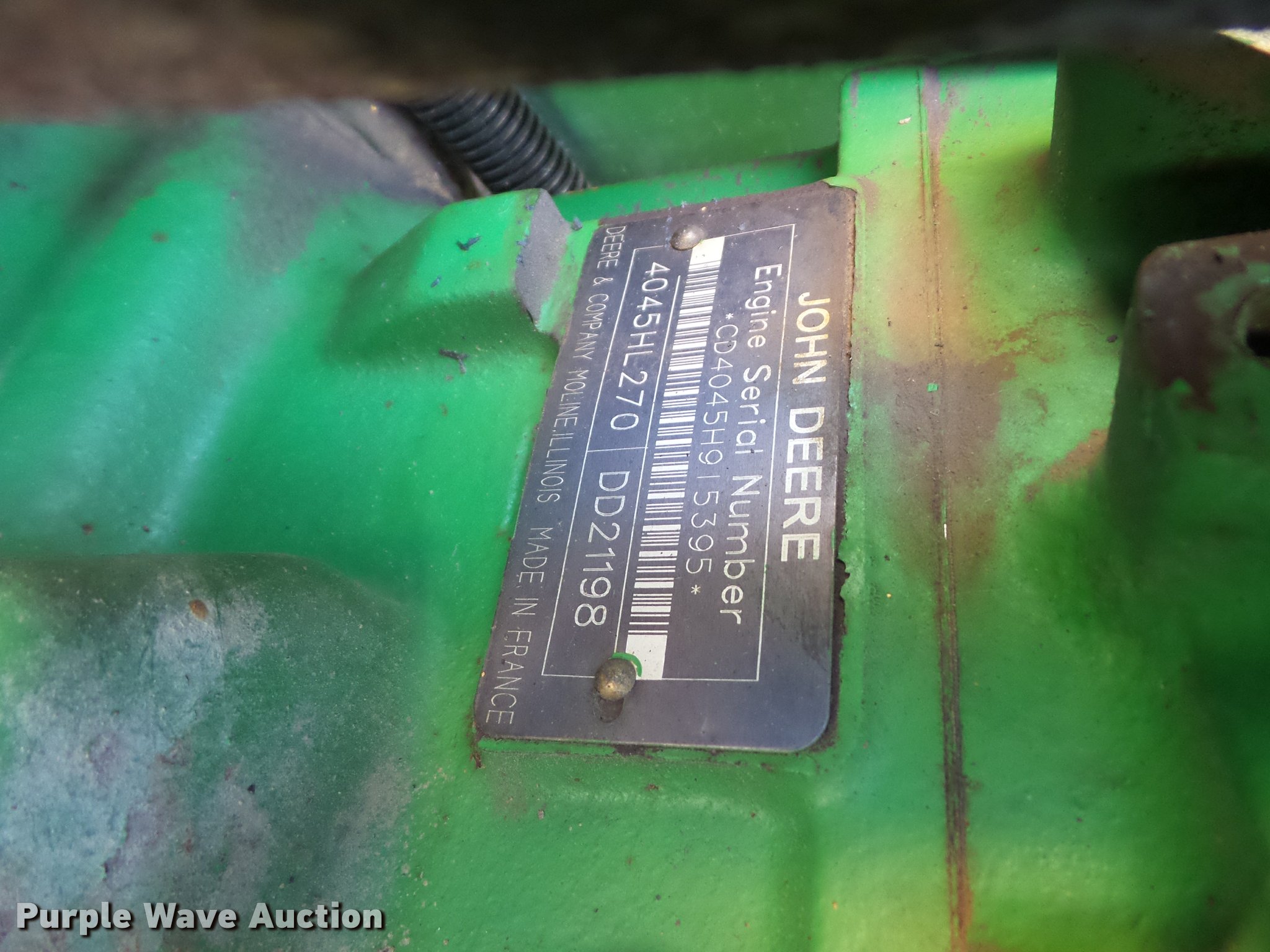 - John Deere 4045HL270 four cylinder turbo diesel engine