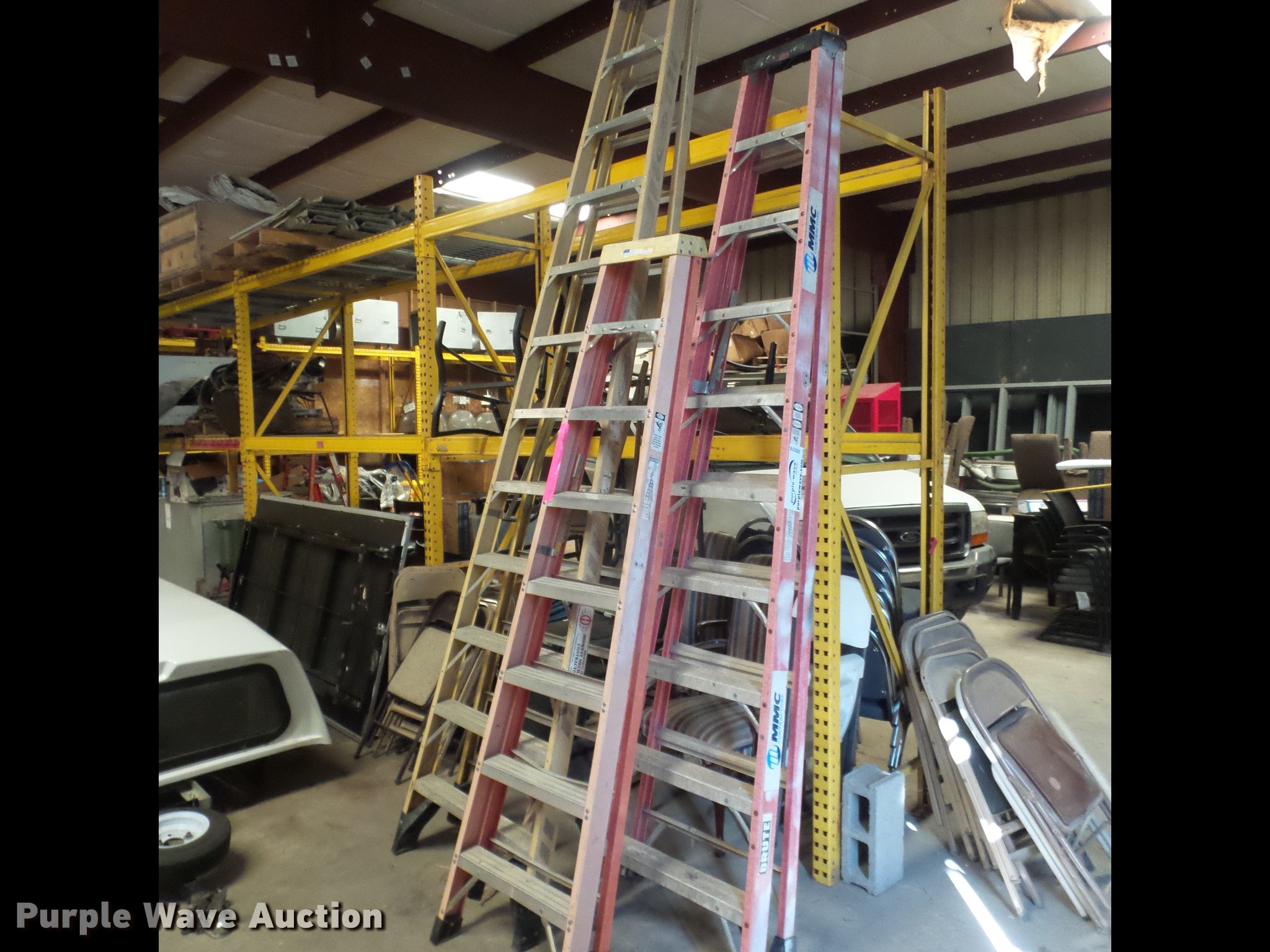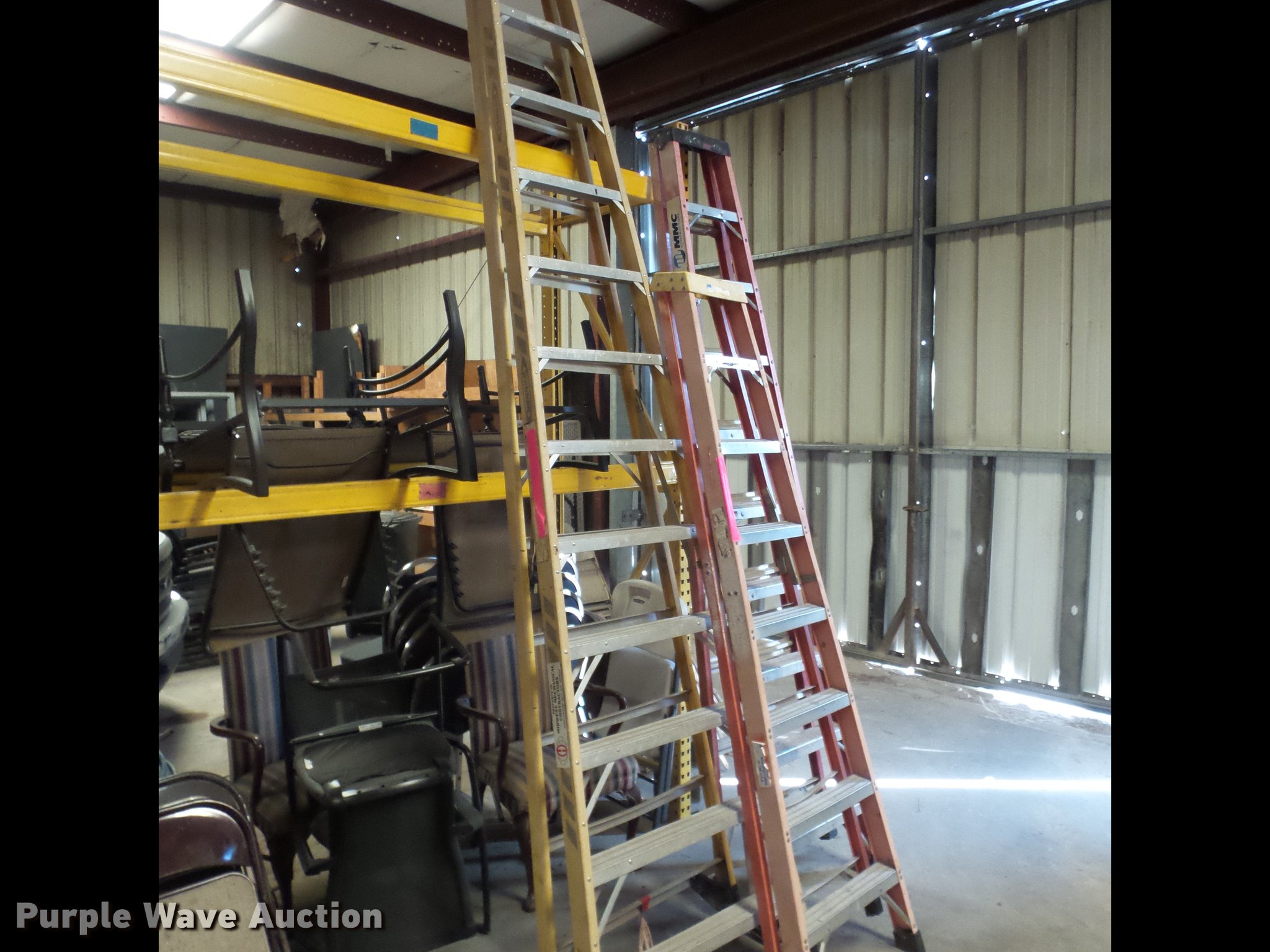 Purple Wave is selling a used Tools in Missouri. This item is a (3) step ladders with the following: 8', 10', 12'