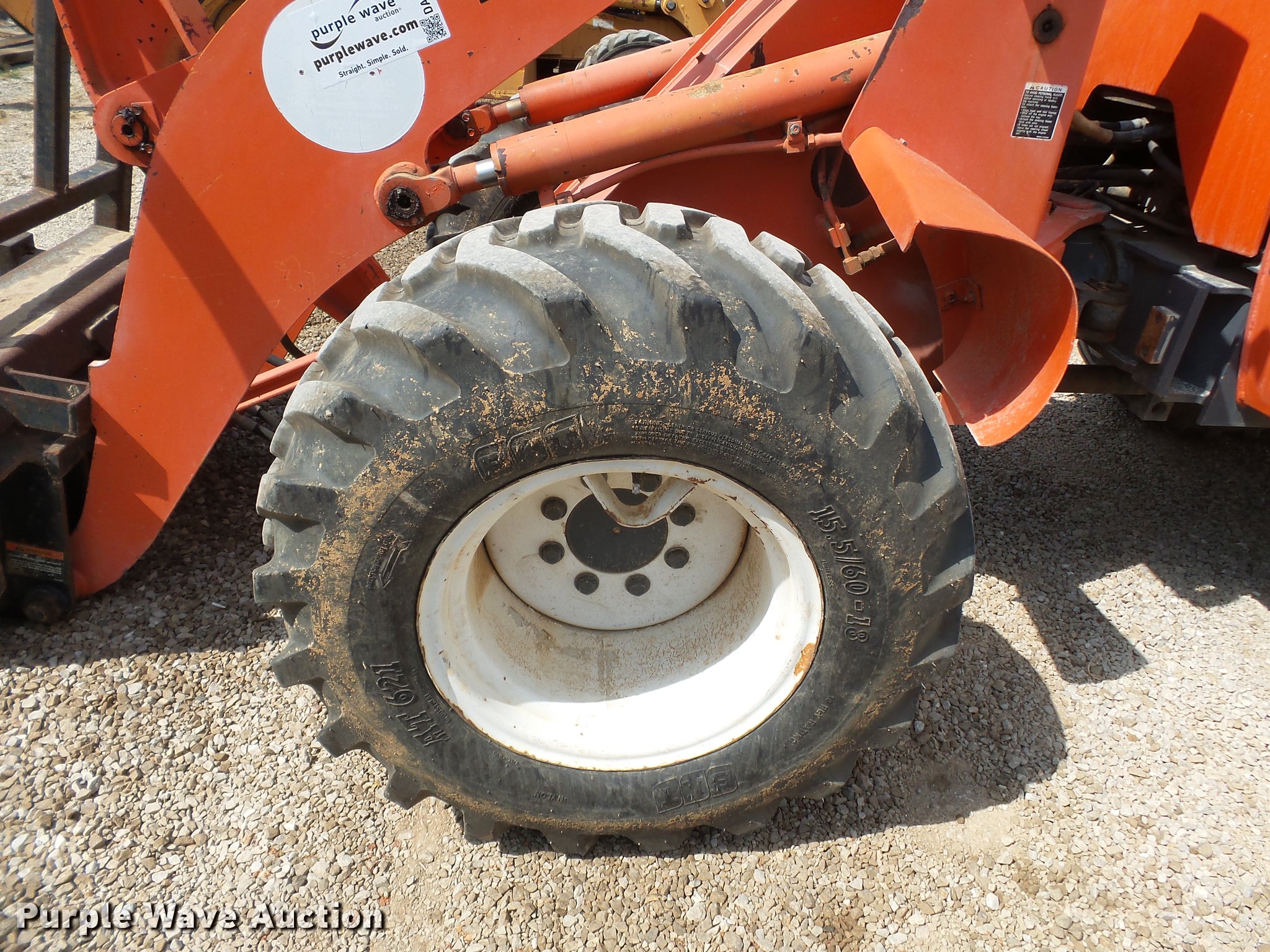 Purple Wave is selling a used Wheel Loader in Missouri. This item is a Kubota R520 wheel loader with the following: 2,378 hours on meter, Kubota V2203 four cylinder diesel engine, 44 HP, Shuttle shift transmission, 1F-1R gears, ROPS, Suspension seat, Joystick bucket controls, 48"L x 4"W pallet forks, Hydraulic quick coupler, 15.5/60-18 tires, Possible starter issues, Serial 10227