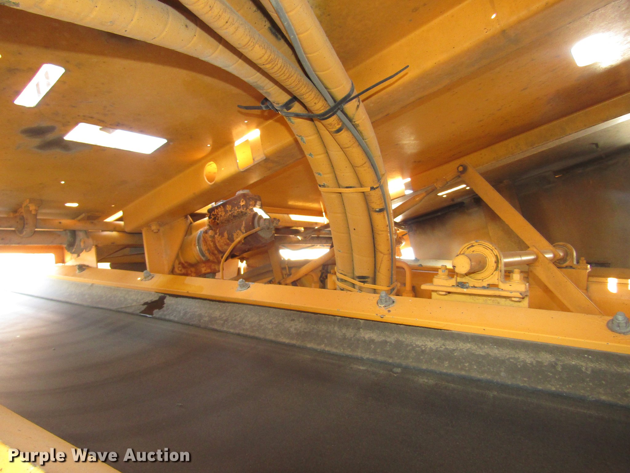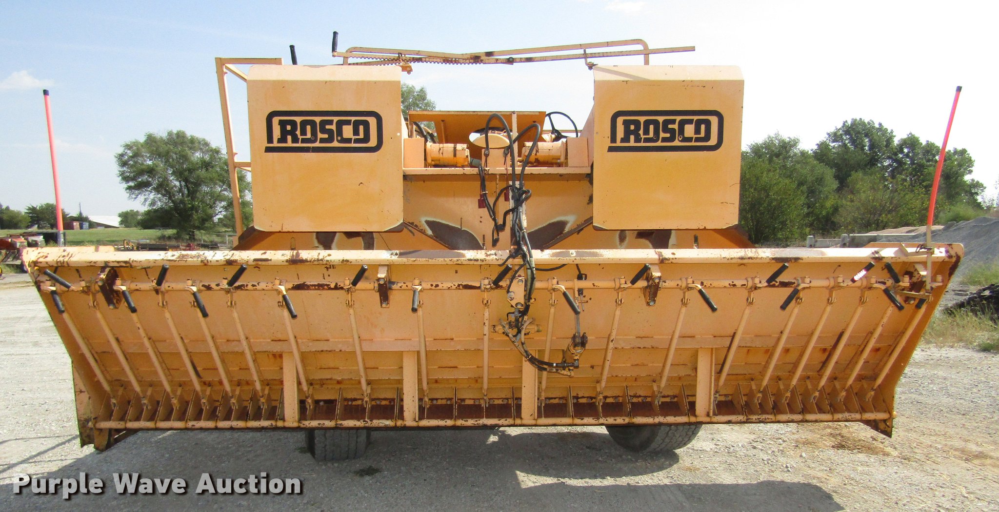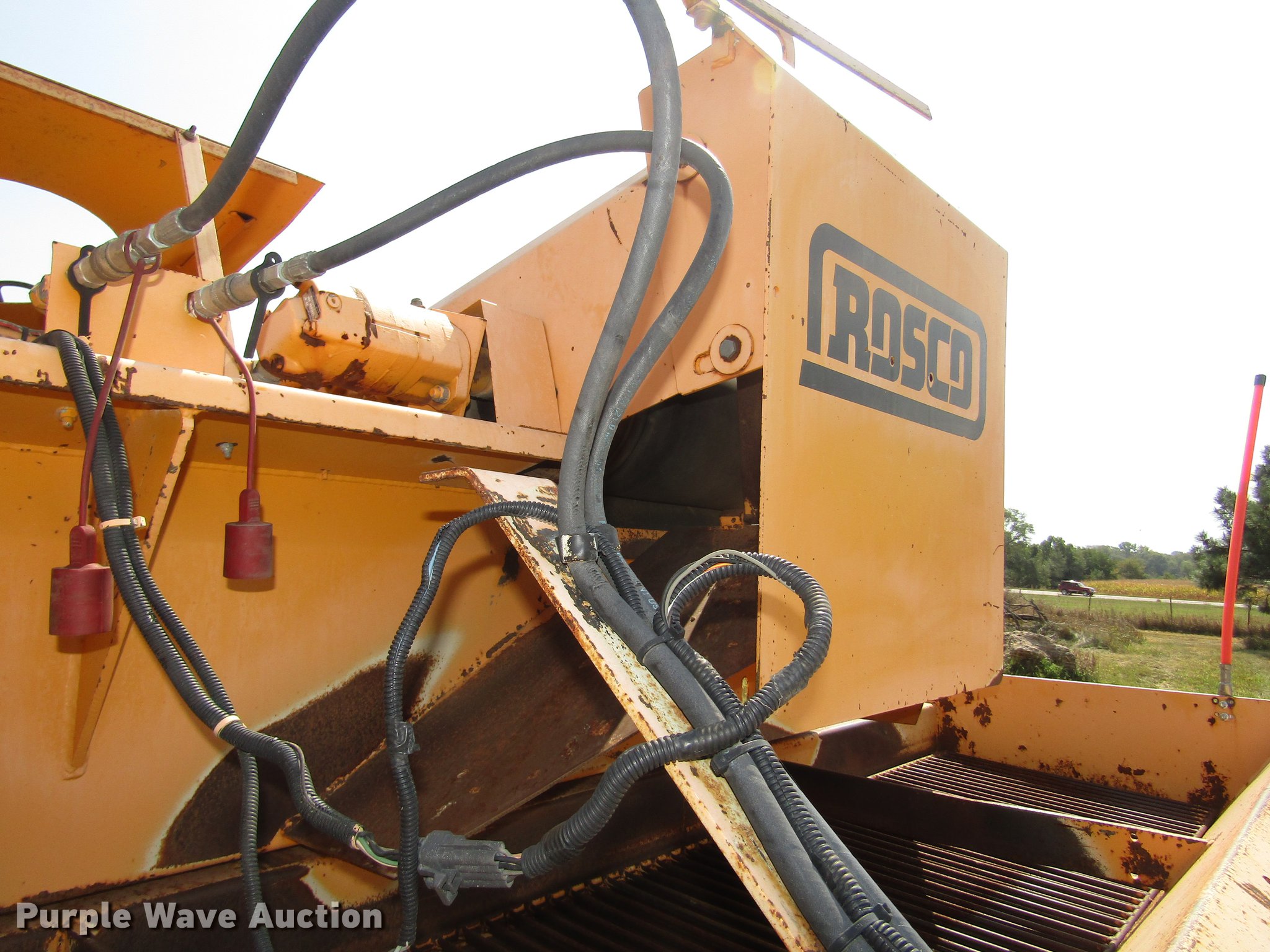 Purple Wave is selling a used Chip Spreader in Nebraska. This item is a 1998 Rosco Flaherty SPR-H-H chip spreader with the following: 1,625 hours on meter, Hours may vary, unit is still in use, Cummins six cylinder turbo diesel engine, Hydrostatic transmission, Dual operator stations, Adjustable steering column, Adjustable steering wheel, Vandal cover, Safety rail, Speed control, Backup alarm, 13.5'W front hopper, Rod reject screen, Adjustable cut off gates, (2) conveyor belts, Independent controls, 9'3" I.D. receiving hopper, Hydraulic rear hitch, 385/65R22.5 tires, Approximately 15,200 lbs. base operating weight, Serial 35838