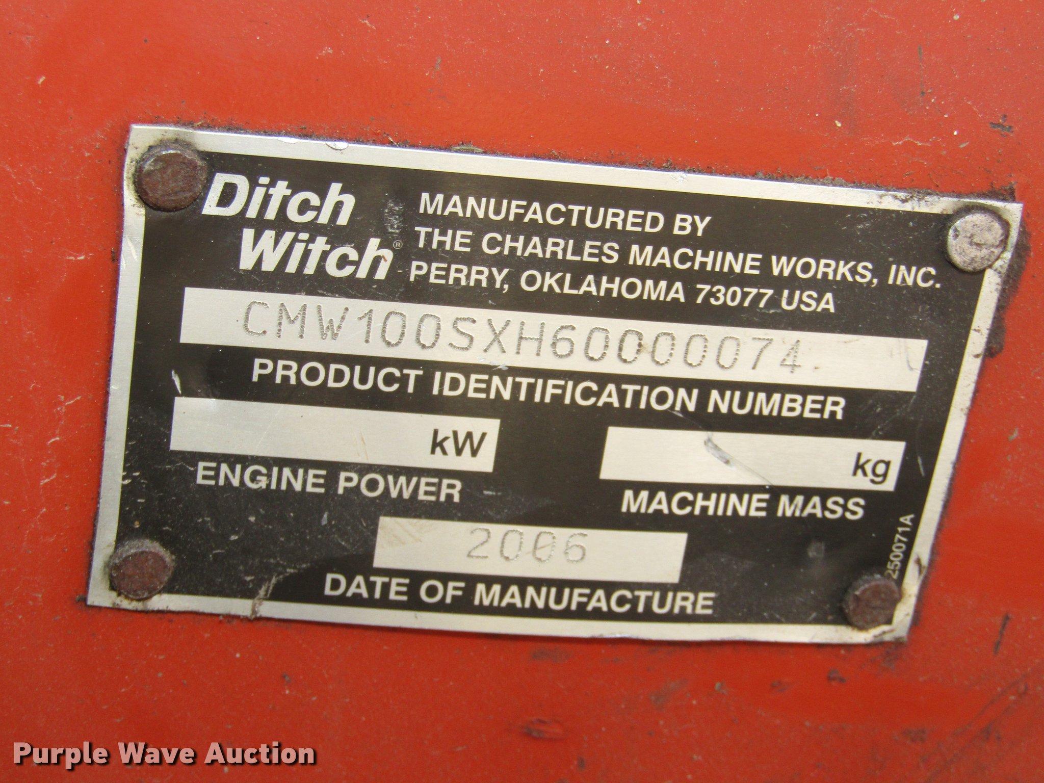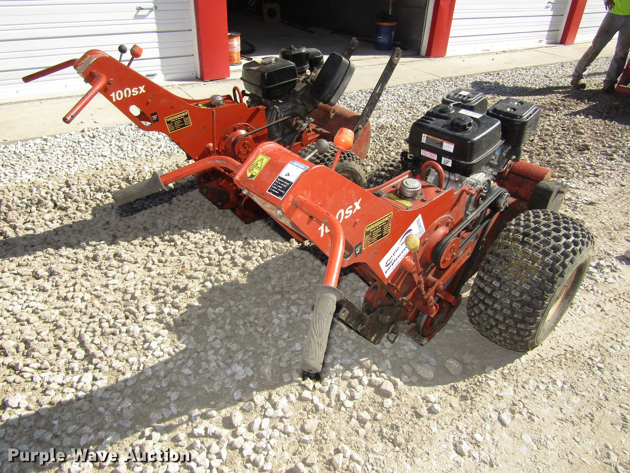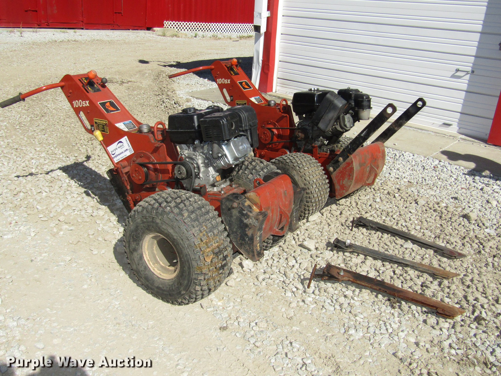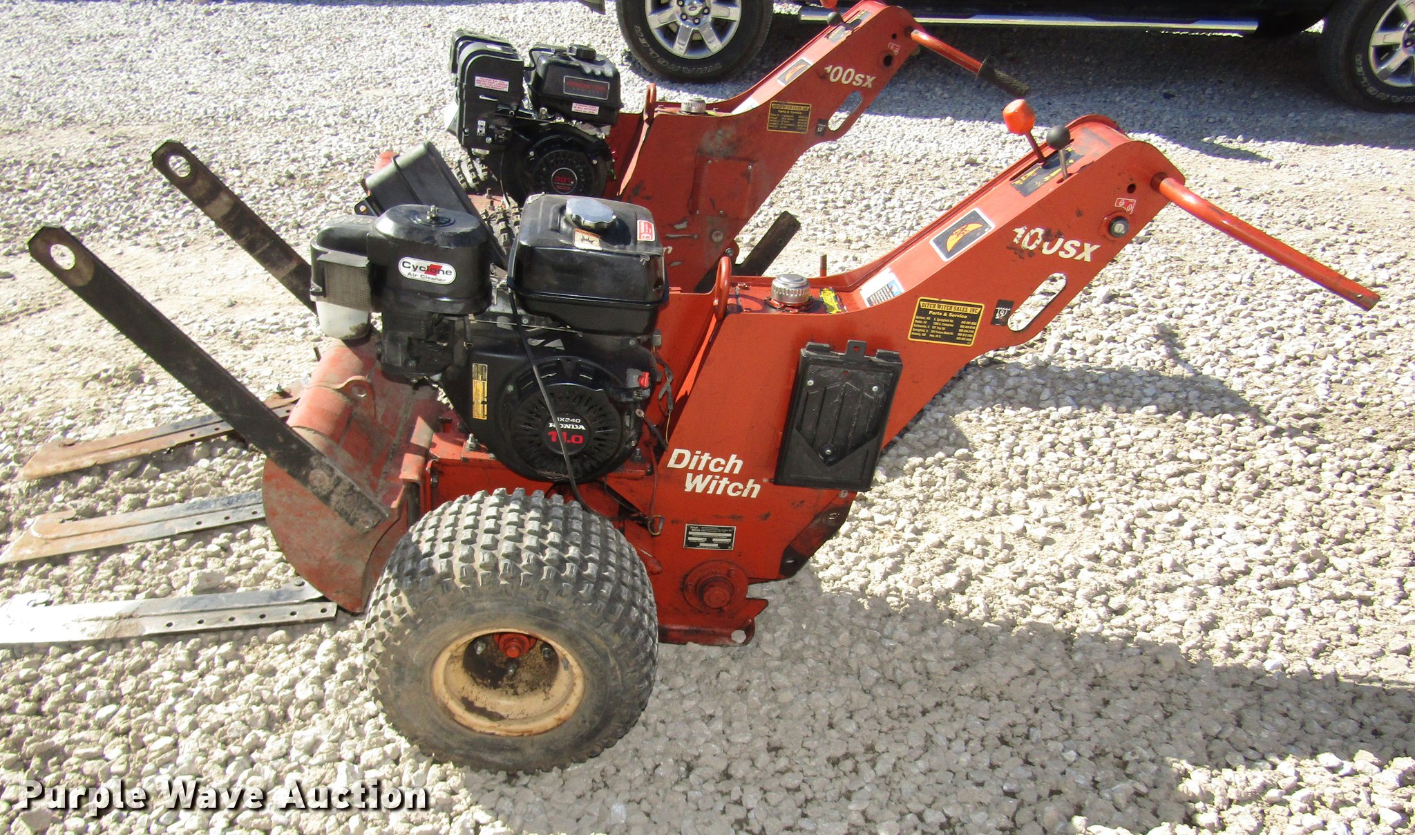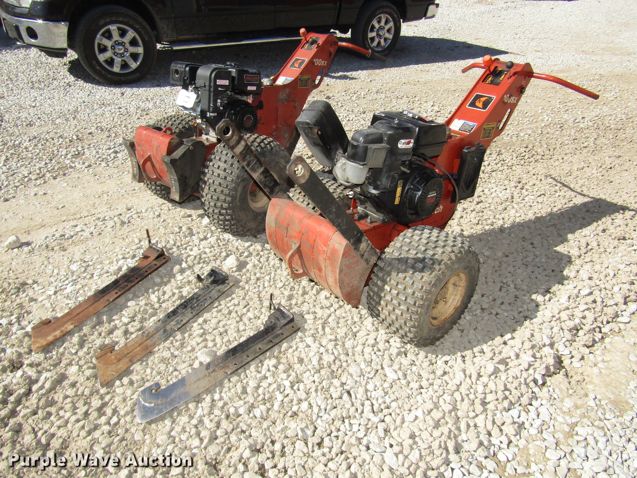 Purple Wave is selling a used Cable Plow in Nebraska. This item is a (2) 2006 Ditch Witch 100SX cable plows with the following: Predator 301cc gas engine, 22 x 11.00-8 tires, Honda GX340 gas engine, 11 HP, AT18 x 11-8 tires, Cable brackets, Belt guards missing, (3) feed blades, 12" usable depth, Lifting eyes, Trailer not included, Serial CMW100SXH60000074, CMW100SXJ60000097